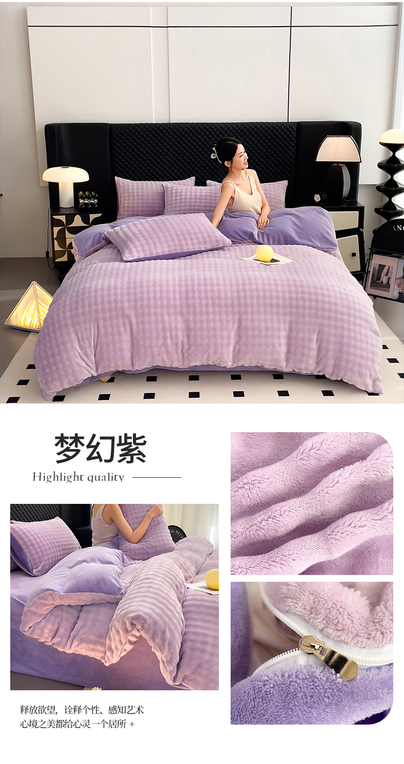 当前位置: 91家纺网 > 商品网购 > 床品套件 > 四件套 > 牛奶绒四件套 > 言熙居家纺 2025新款加厚高克重兔兔绒牛奶绒四件套 荧浅紫