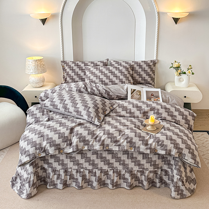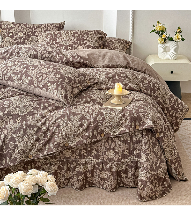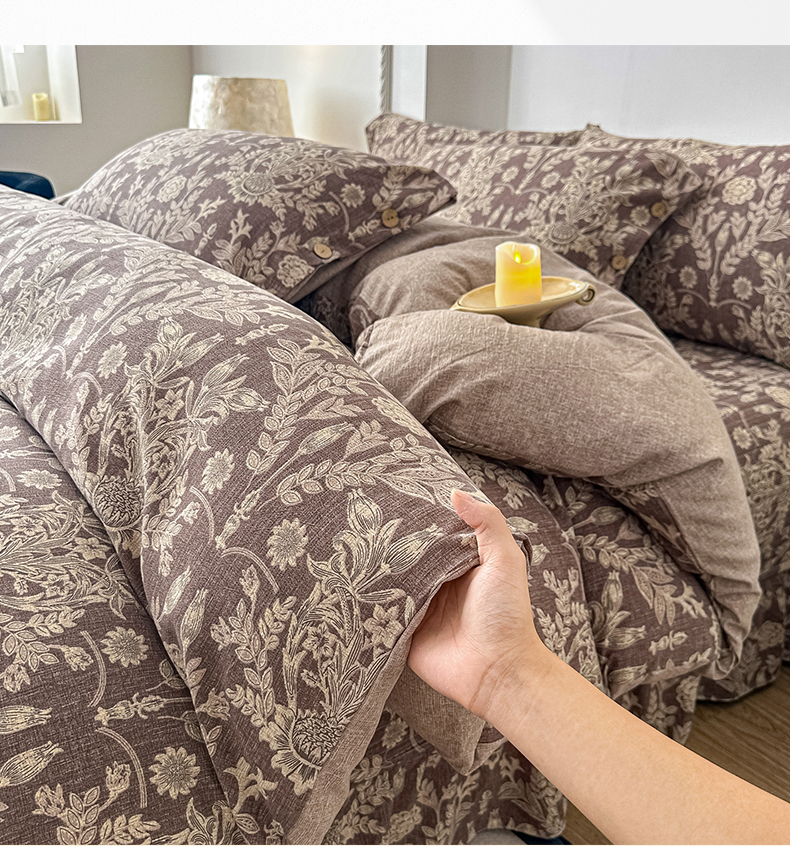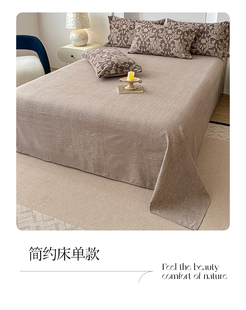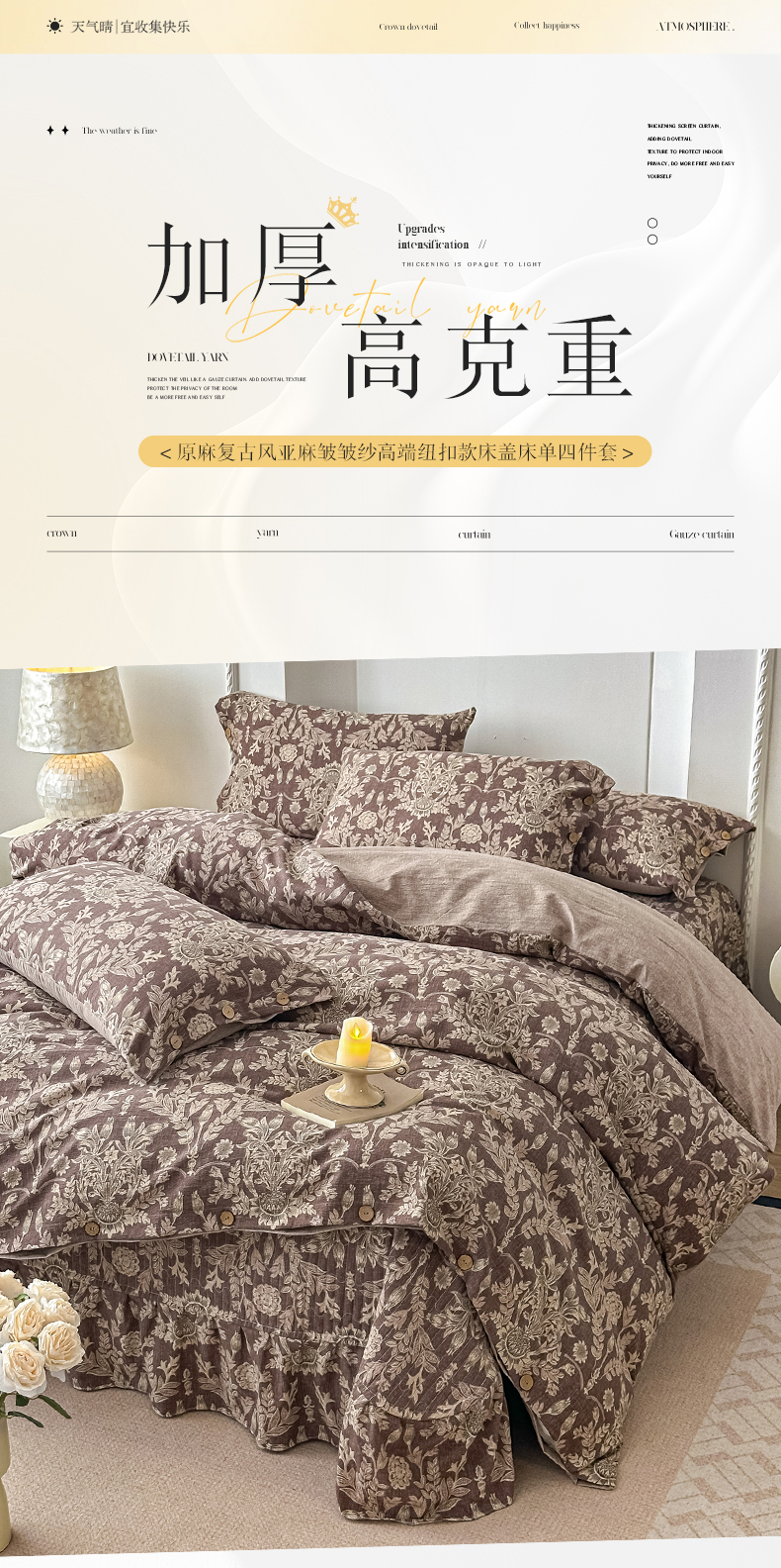 (总)富米莱(原臻工厂) 2025秋冬新品加厚高克重原麻复古风亚麻高端纽扣款床盖床单四件套