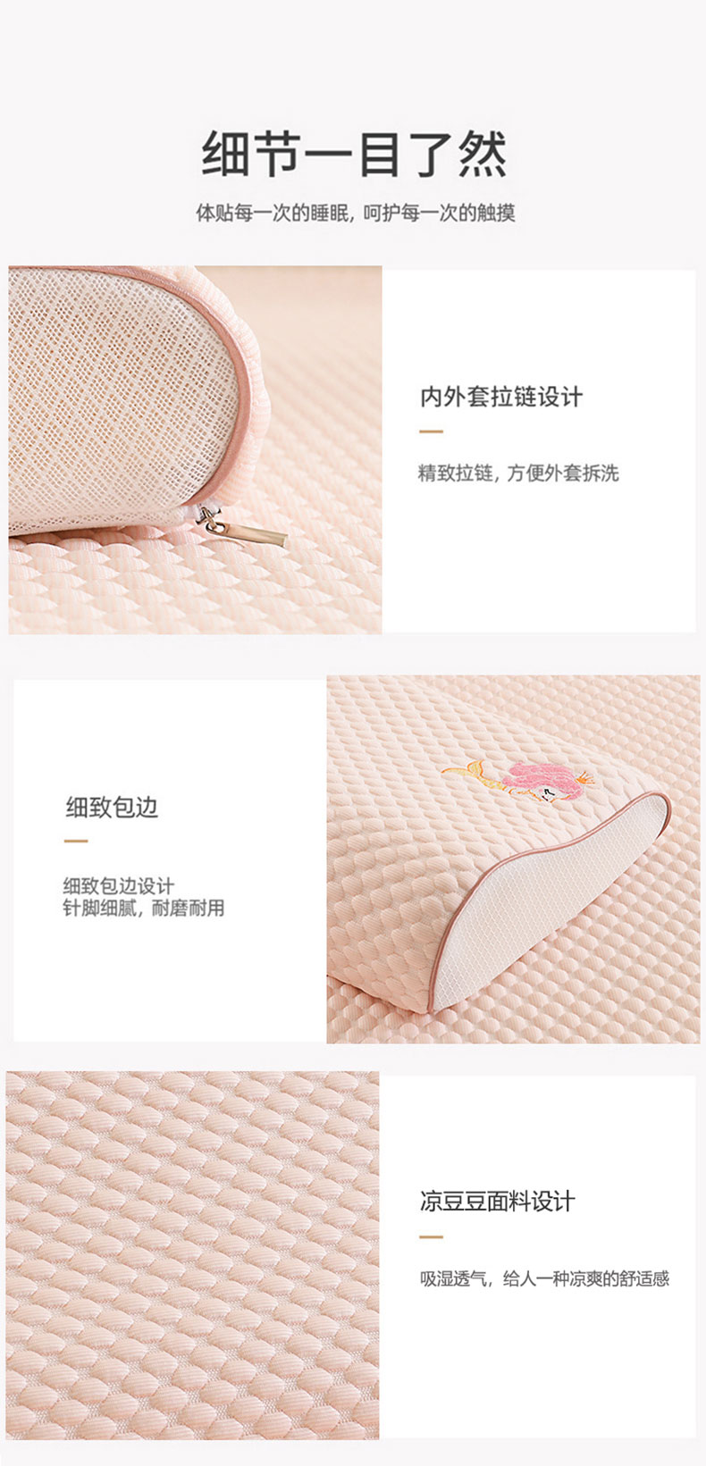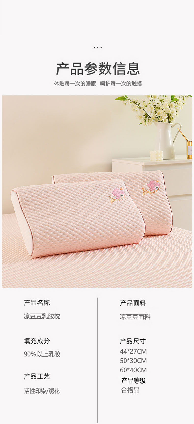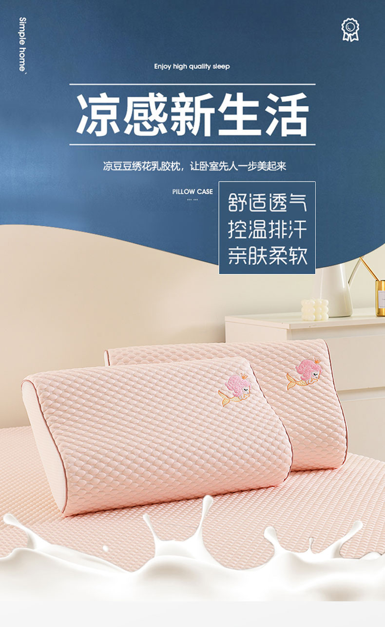商品名称:(总)四川牛皮席 2025春夏新款凉豆豆绣花乳胶枕 枕头枕芯