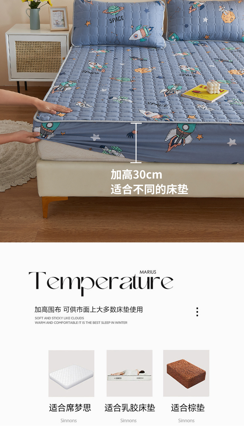 富馨莱 2025新款纯棉夹棉单件床笠 太空漫步