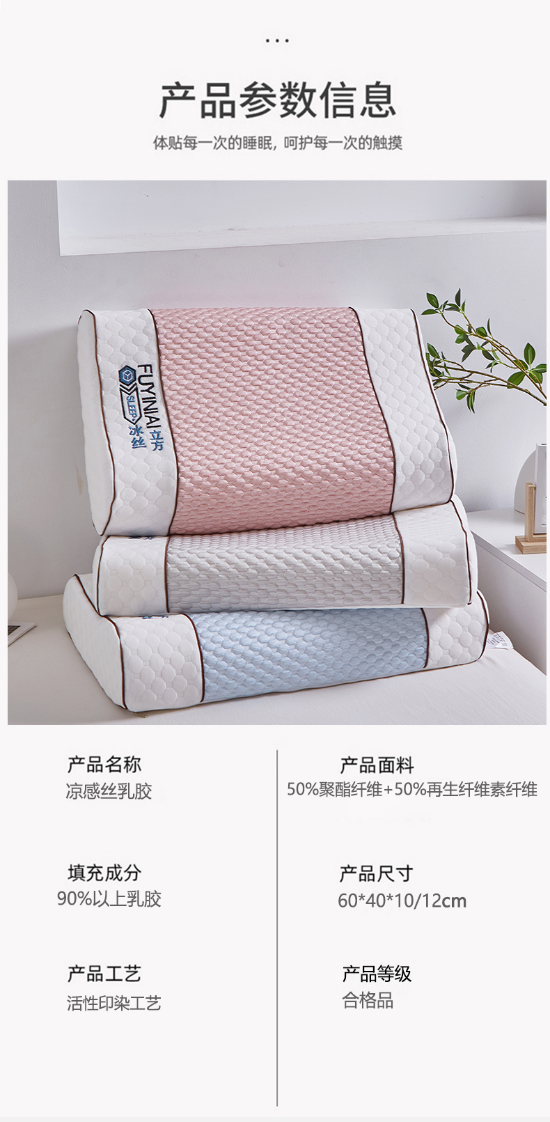 (总)四川牛皮席 2025新款冰感乳胶枕,冰感乳胶枕 粉 60x40x10/12cm,冰感乳胶枕 灰 60x40x10/12cm,冰感乳胶枕 蓝 60x40x10/12cm,冰感乳胶枕 绿 60x40x10/12cm