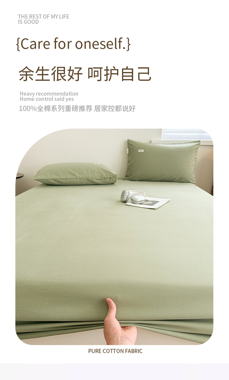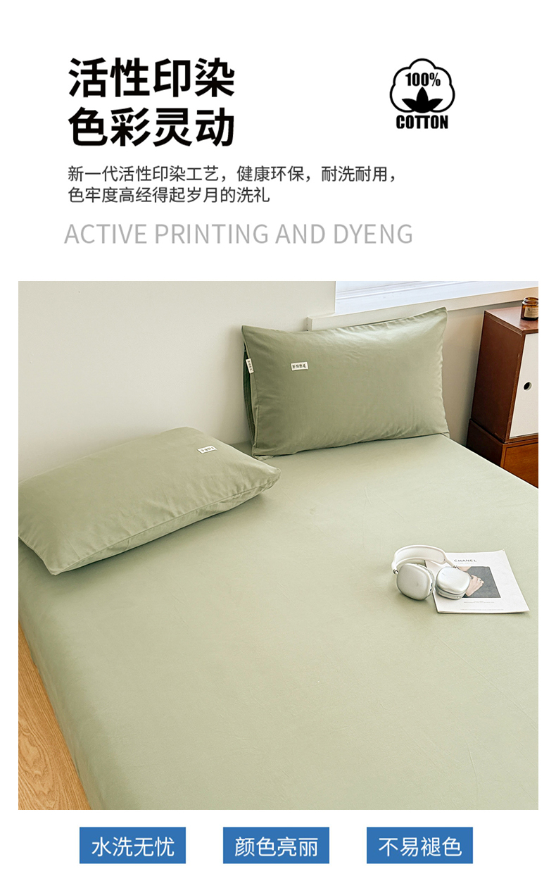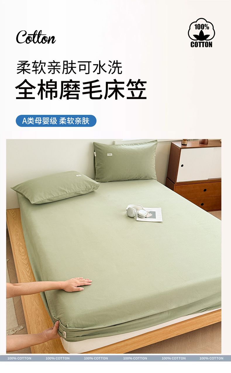 • 91家纺网 家纺一手货源 找家纺 眠博士 2025新款A类纯色全棉磨毛大床床笠三件套 磨毛床笠-陶瓷草绿