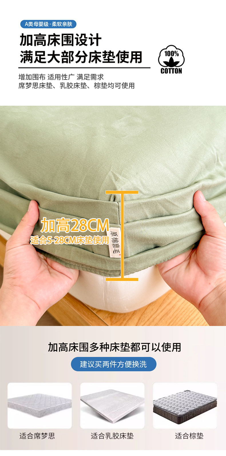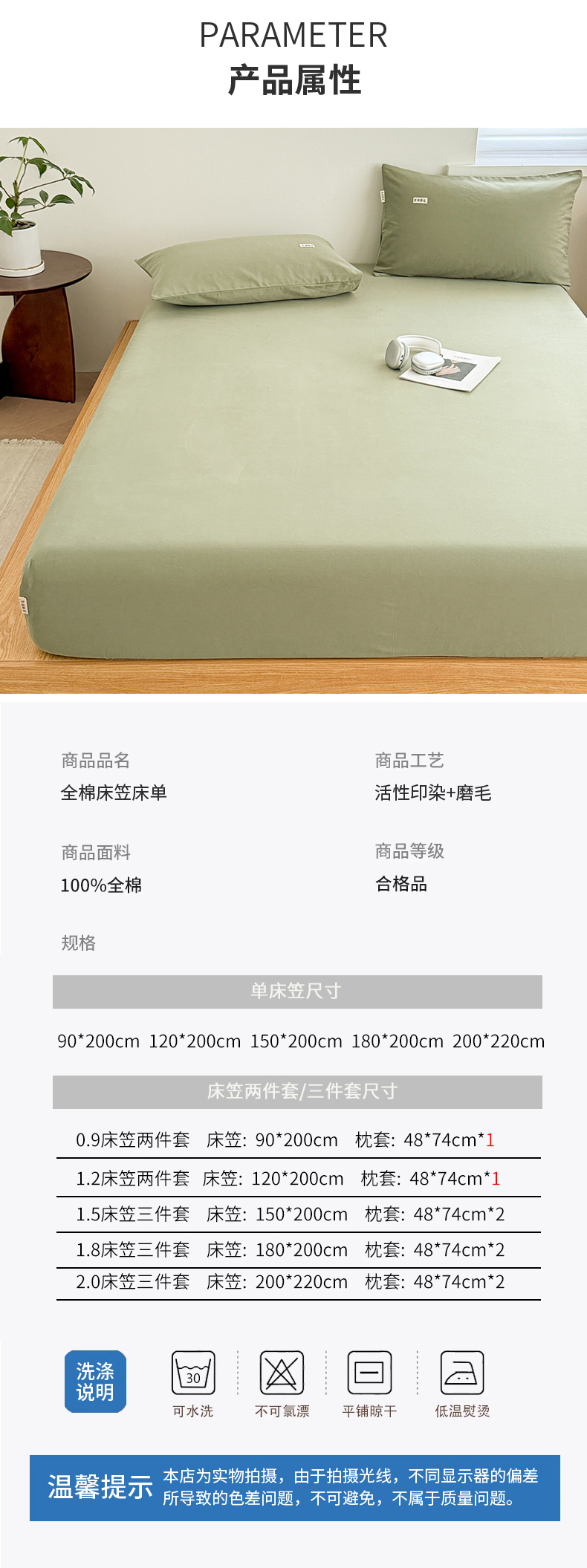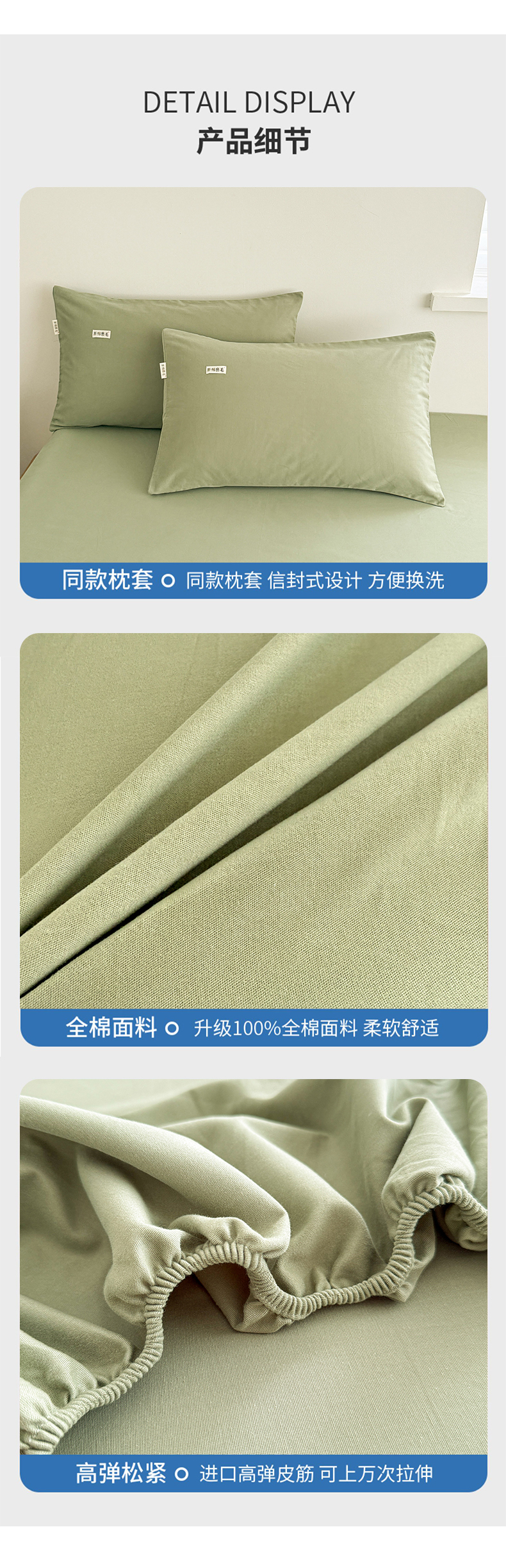 • 91家纺网 家纺一手货源 找家纺 眠博士 2025新款A类纯色全棉磨毛大床床笠三件套 磨毛床笠-陶瓷草绿