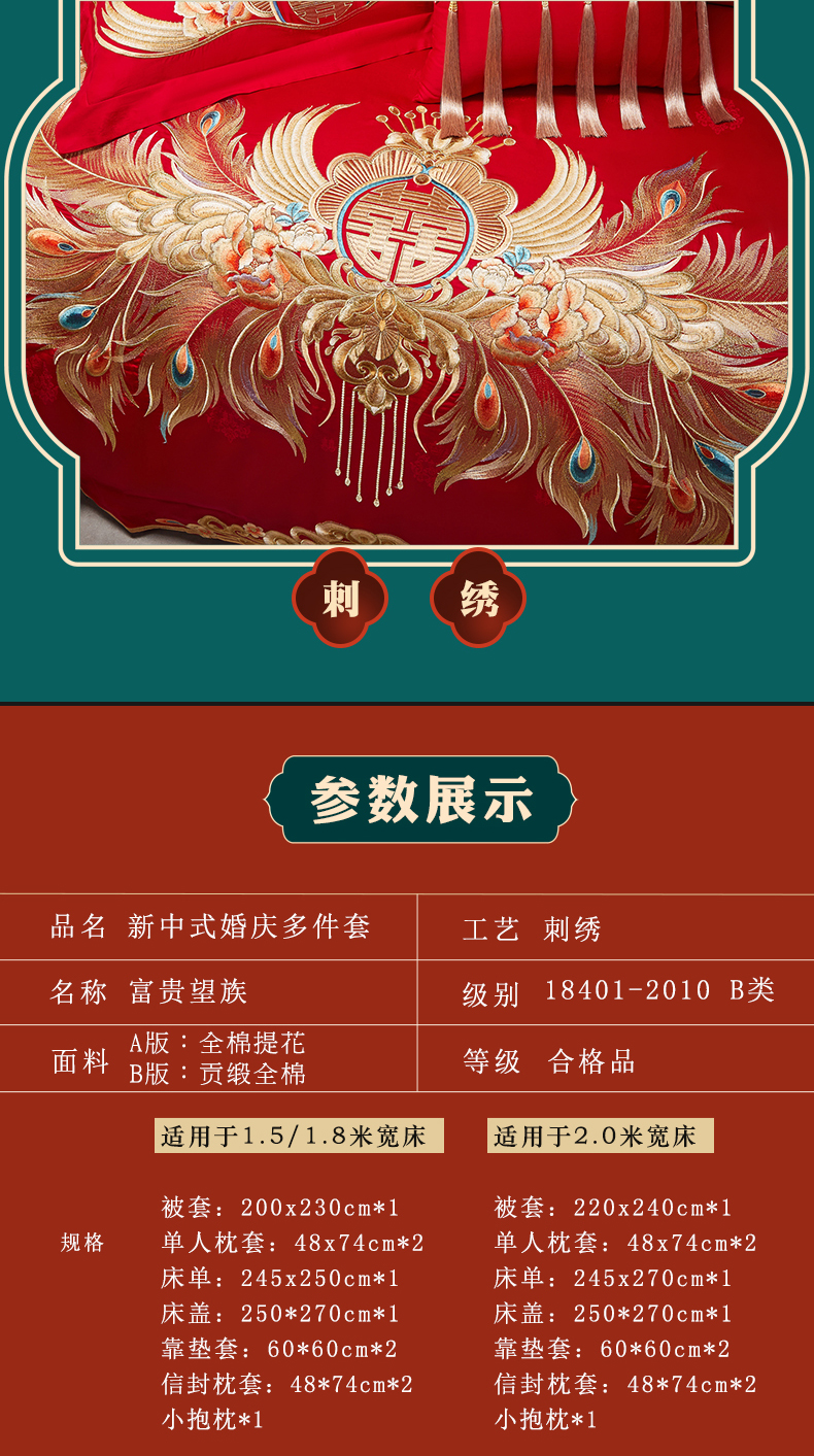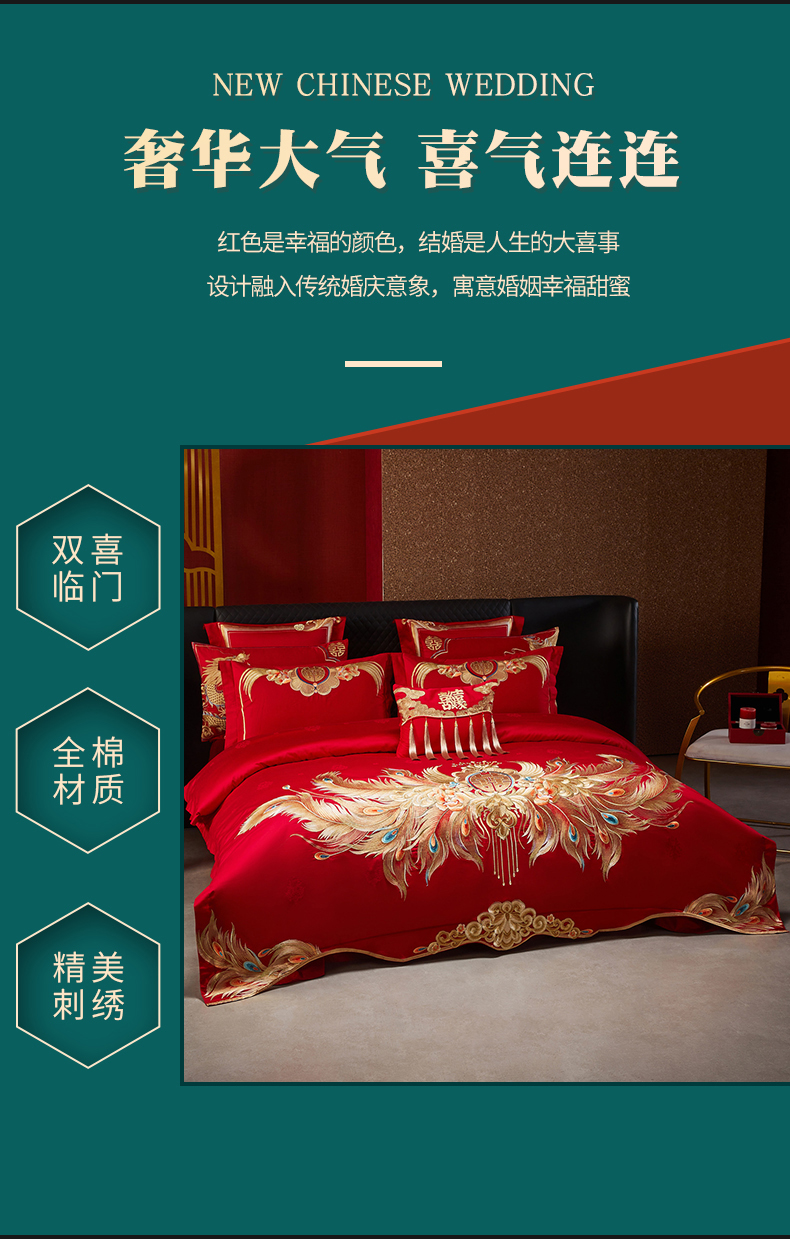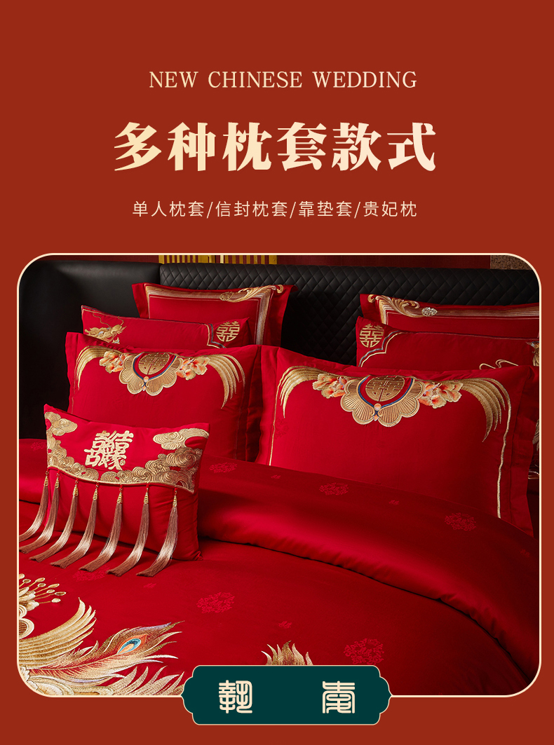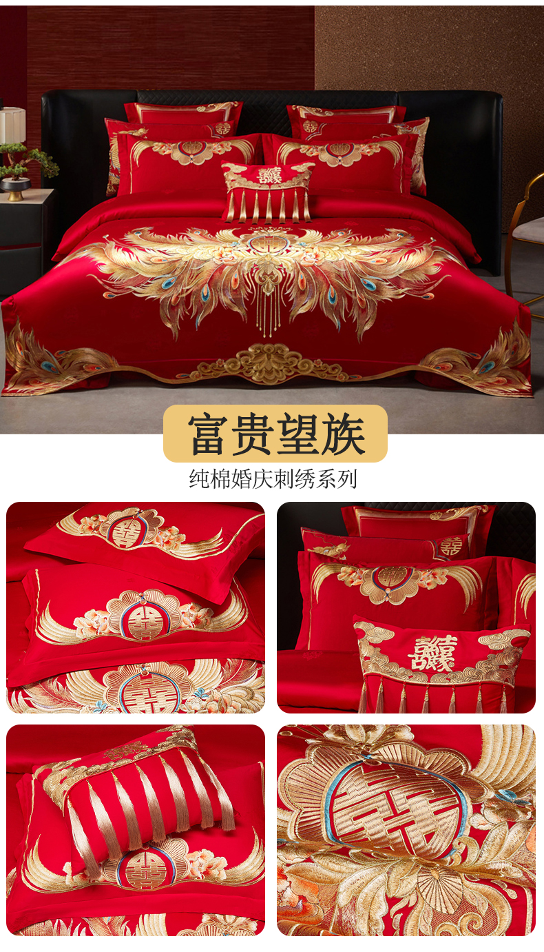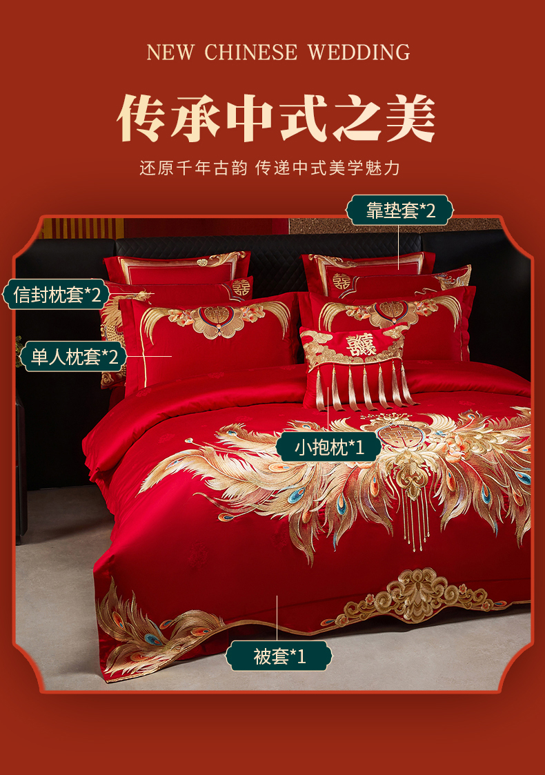 当前位置: 91家纺网 > 商品网购 > 床品套件 > 四件套 > 婚庆四件套 > 宏羽纺家纺 2025新款高支高密全棉提花新中式婚庆多件套 高支高密富贵望族