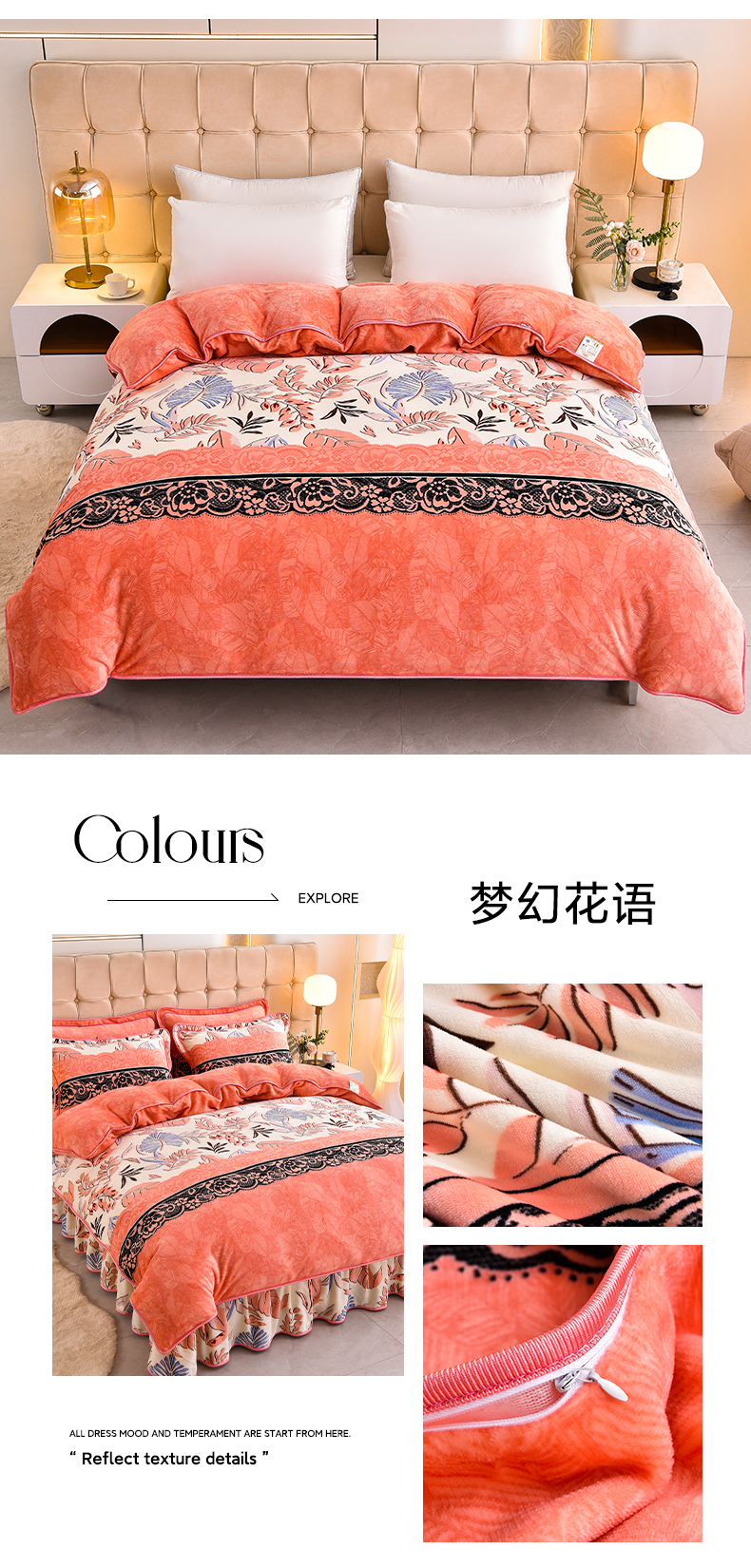 • 91家纺网 家纺一手货源 找家纺 博兰蒂 2025新款床裙款高克重牛奶绒印花单被套 浪漫之星