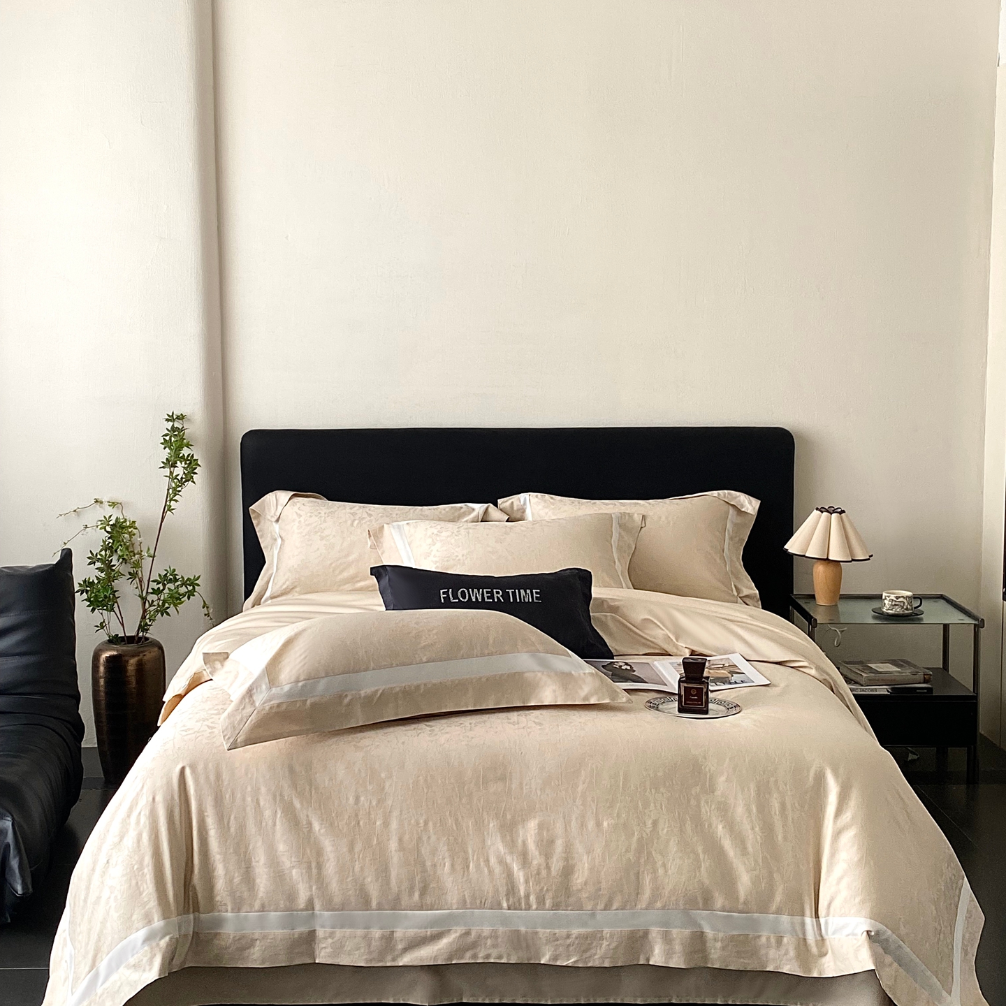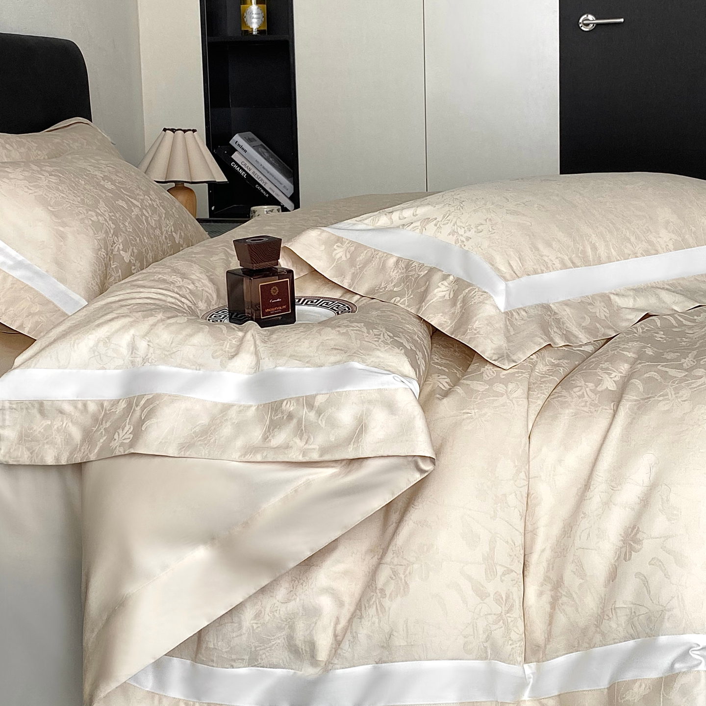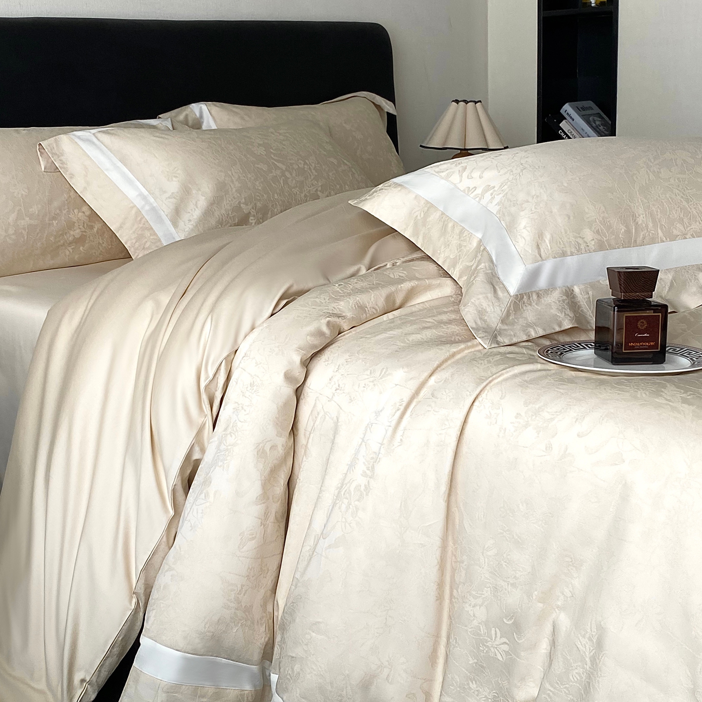 (总)花时间 2024新款轻奢设计师款原创系列类长绒棉宽边提花四件套-静谧花蜜,花蜜,静谧
