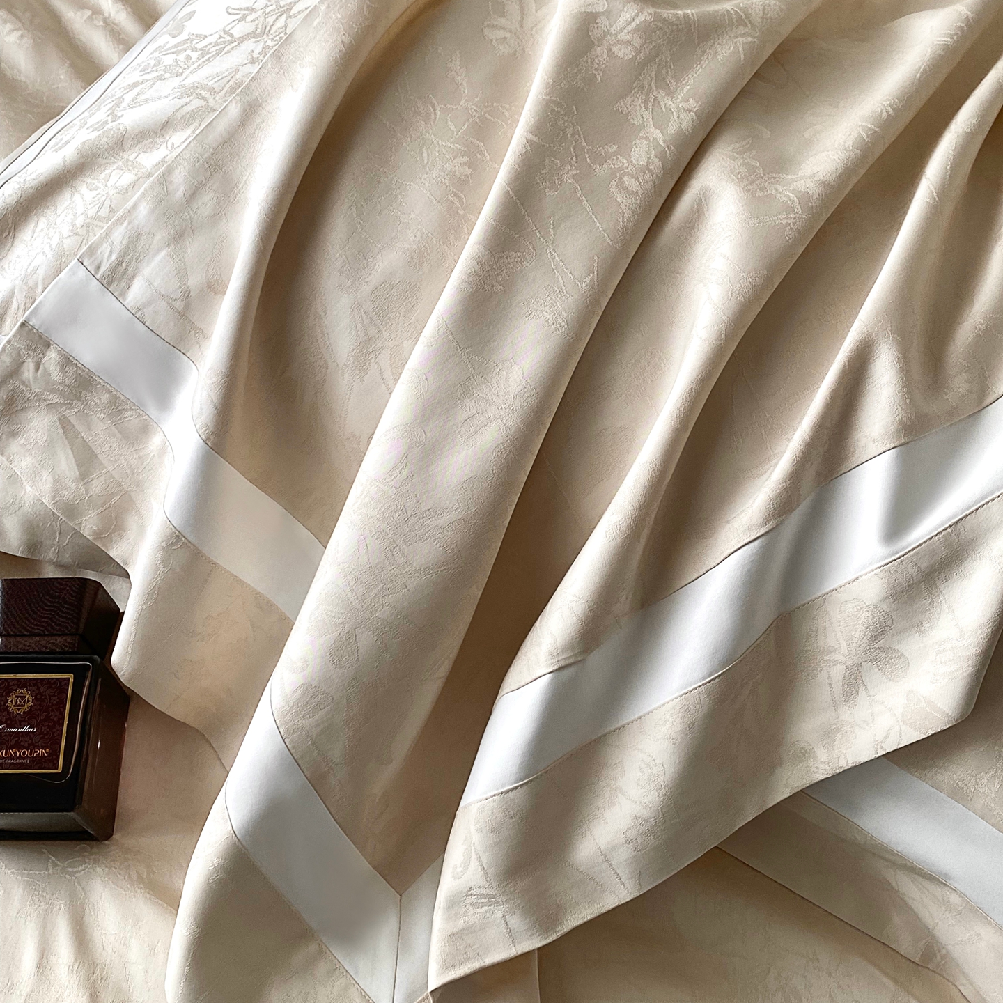 (总)花时间 2025秋冬新款简约贡缎提花四件套 繁悦系列,繁悦-皓月白,繁悦-奶霜色