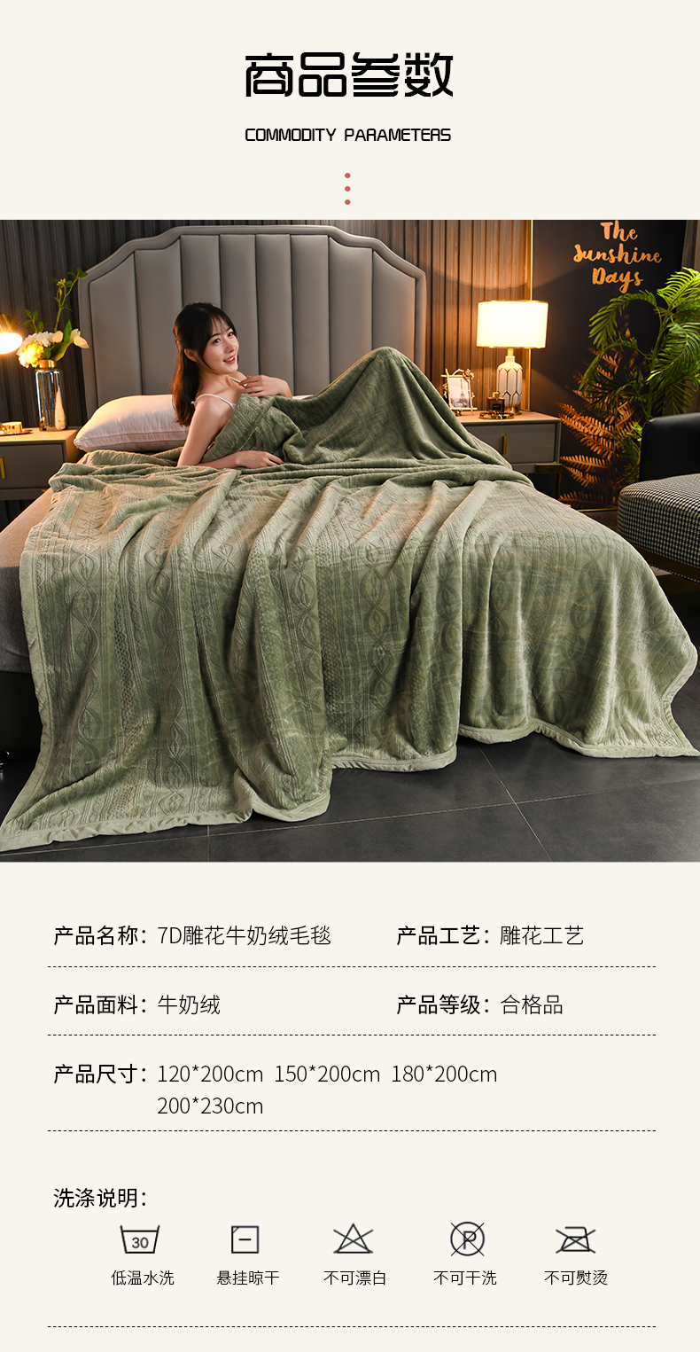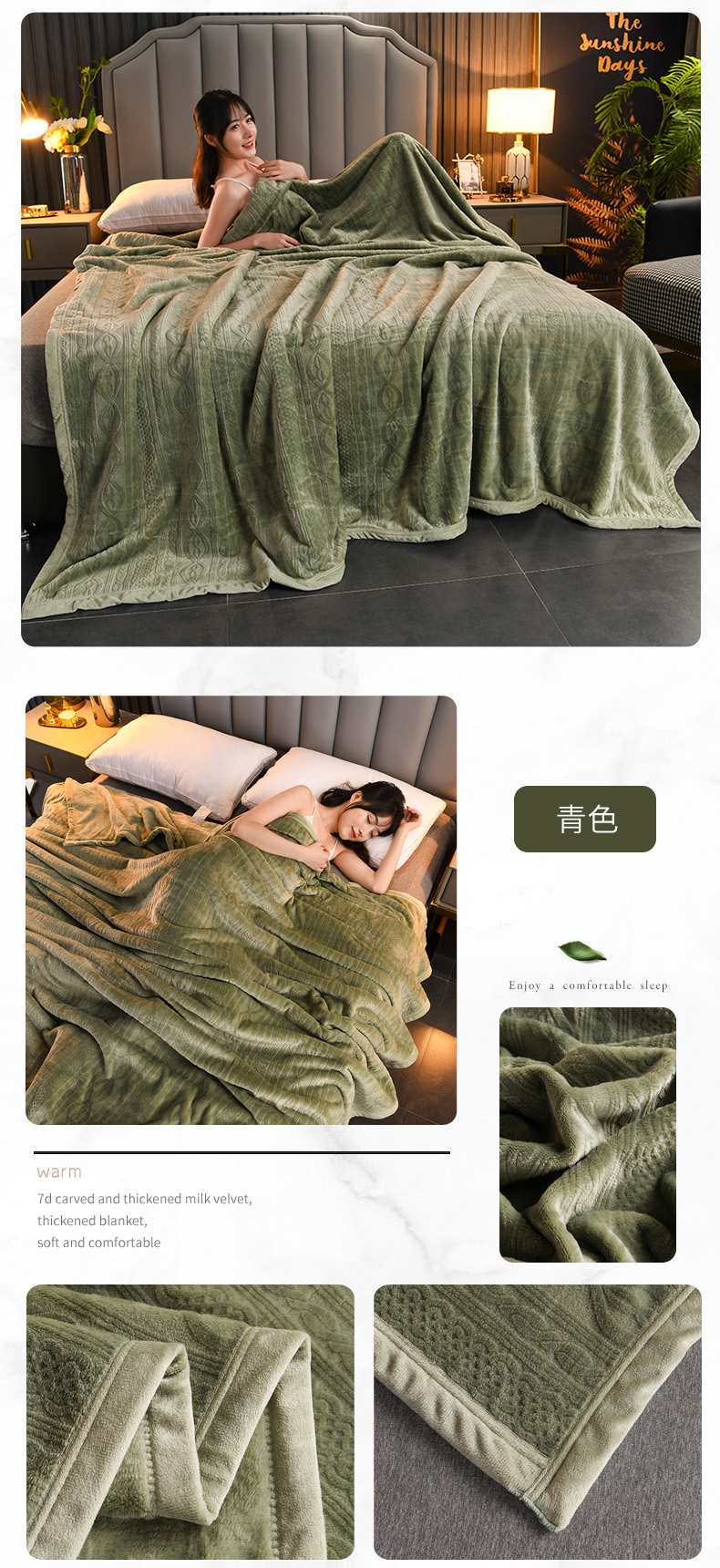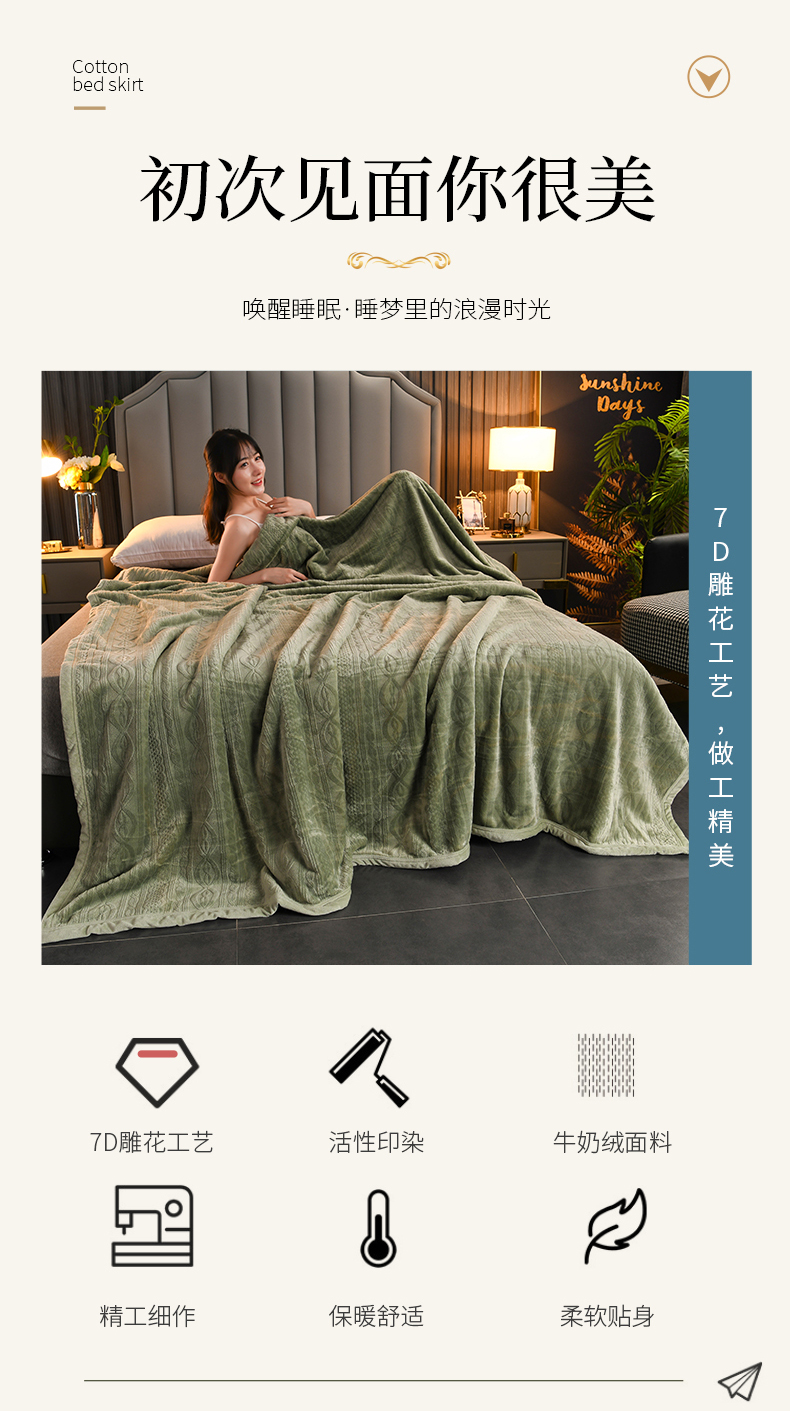 商品名称:小牛席业 2025新款7D雕花牛奶绒毛毯 青色