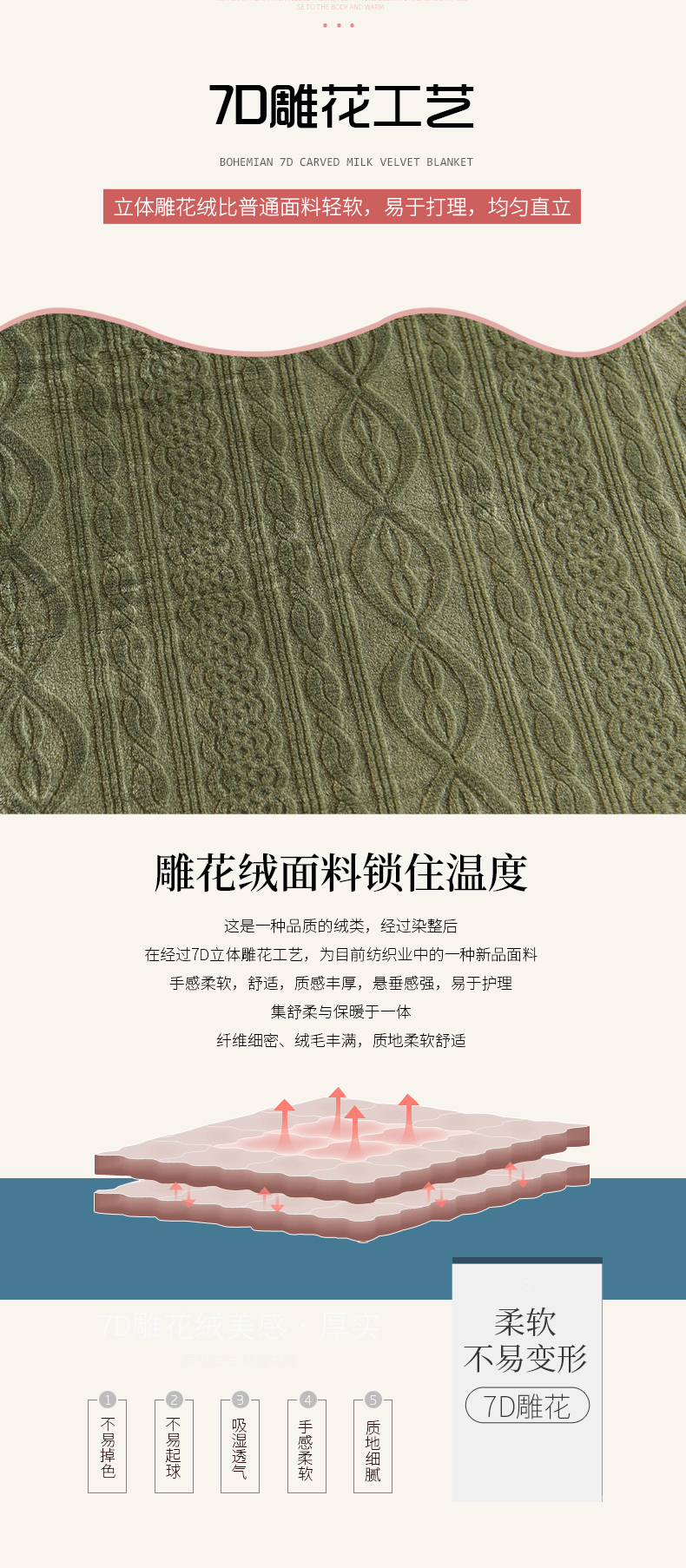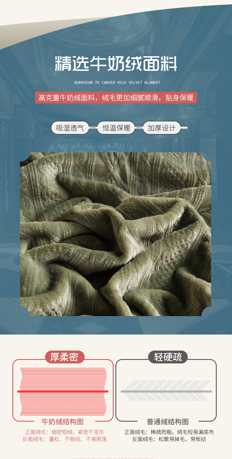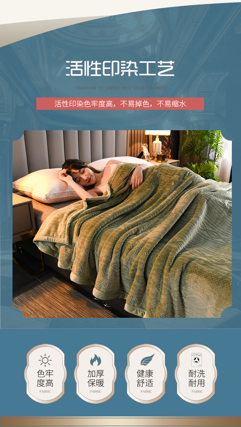 商品名称:小牛席业 2025新款7D雕花牛奶绒毛毯 青色