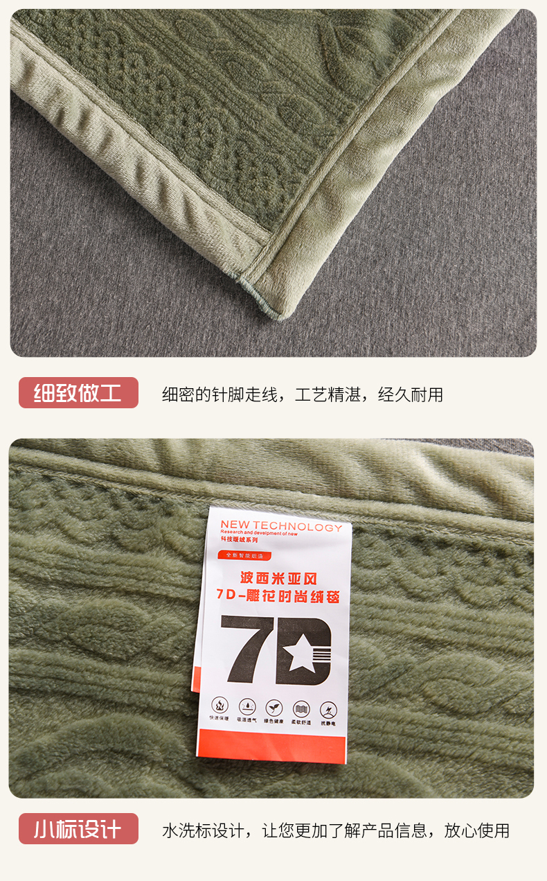 小牛席业 2025新款7D雕花牛奶绒毛毯 青色