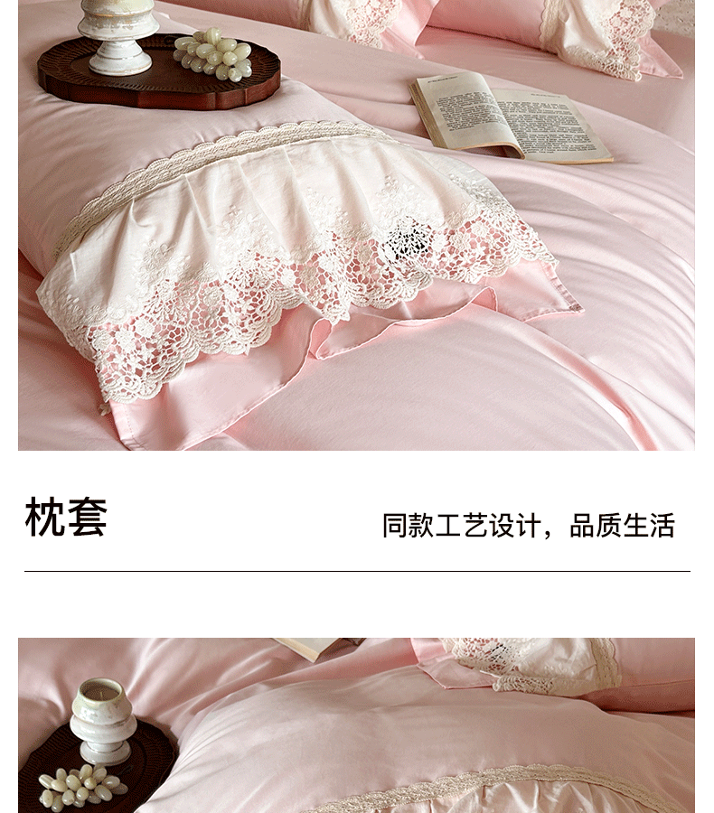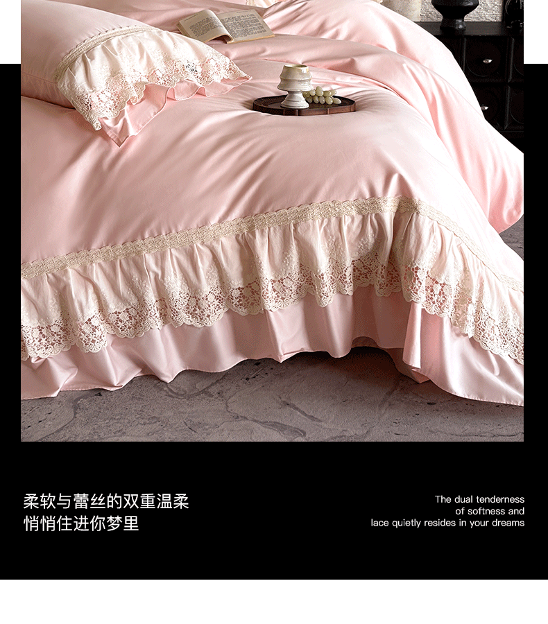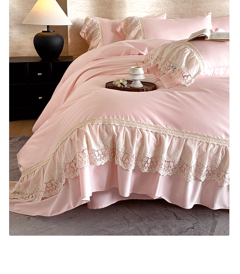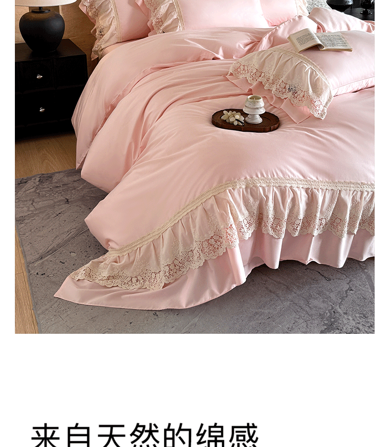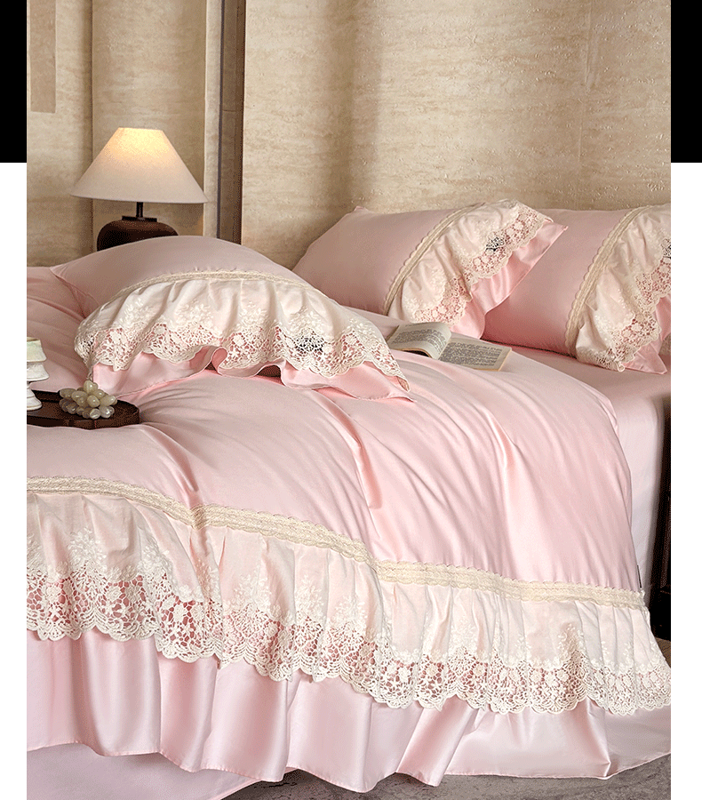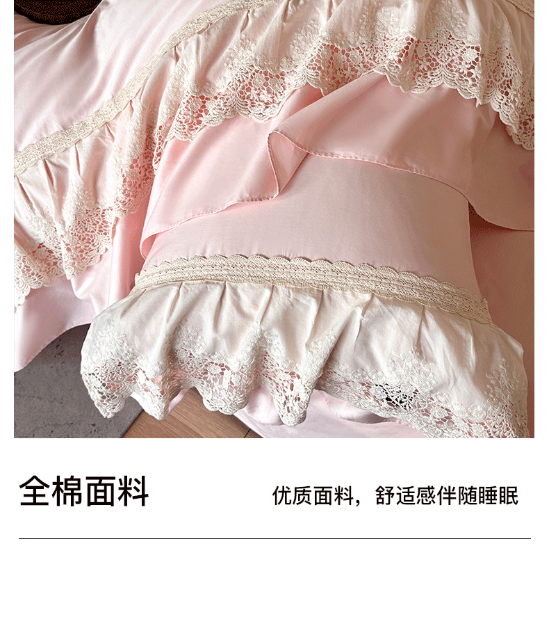 商品名称:卡姿家纺 2025秋冬60支长绒棉法式蕾丝花边四件套-凯瑟琳 凯瑟琳-粉