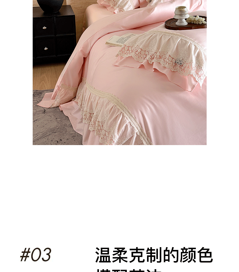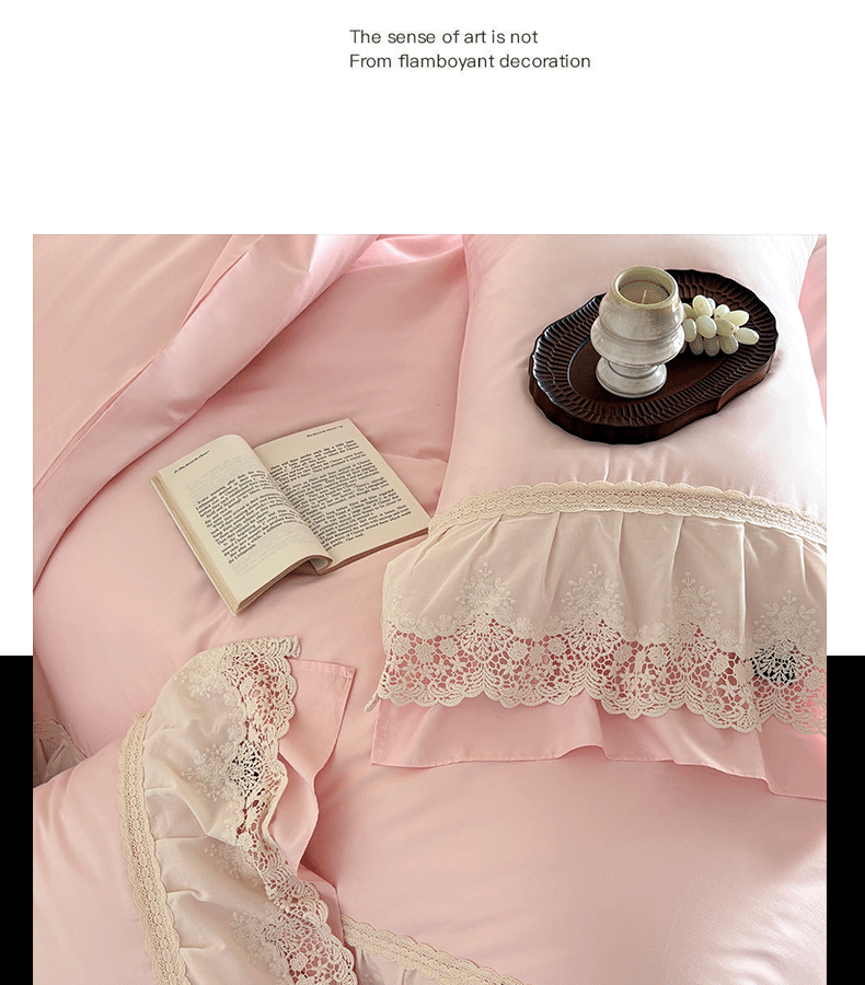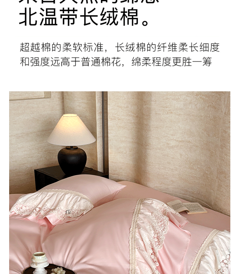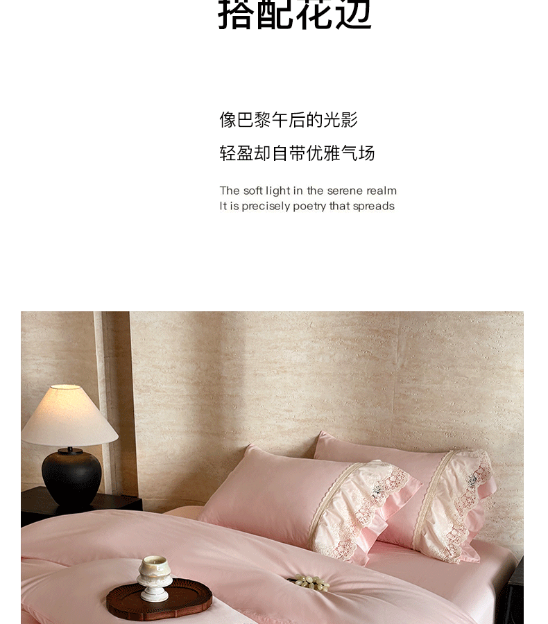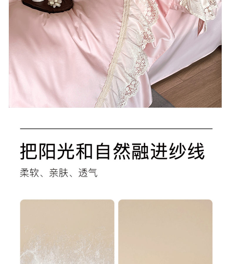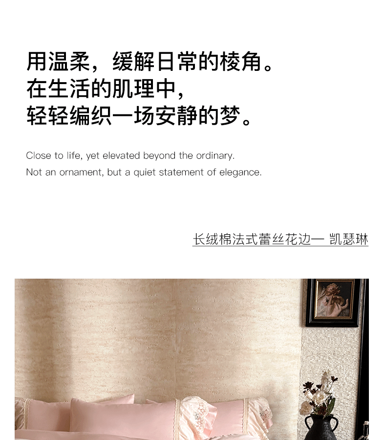 商品名称:卡姿家纺 2025秋冬60支长绒棉法式蕾丝花边四件套-凯瑟琳 凯瑟琳-粉