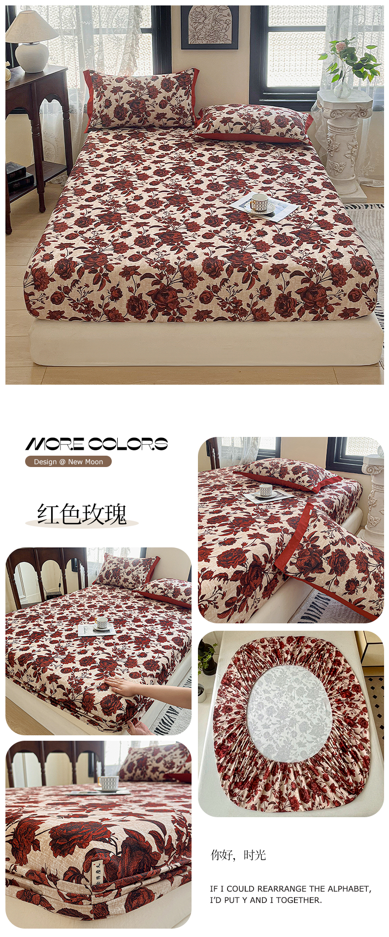 (总)慕梵家居2025新款100%全棉磨毛床笠纯棉磨毛床罩,繁花藤叙,红色玫瑰,暮秋鎏金,石榴花红,石榴花灰,硕果累累,甜梦茶语