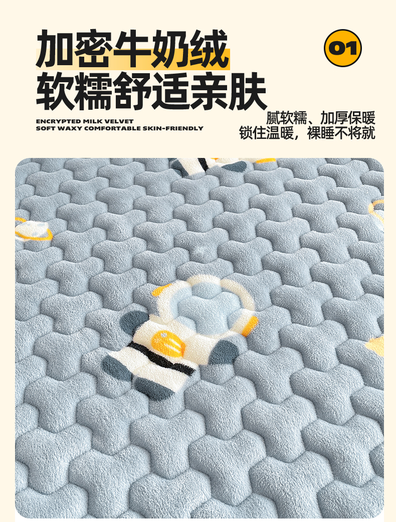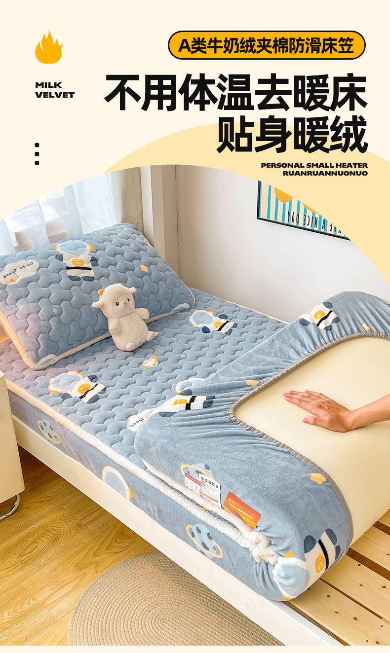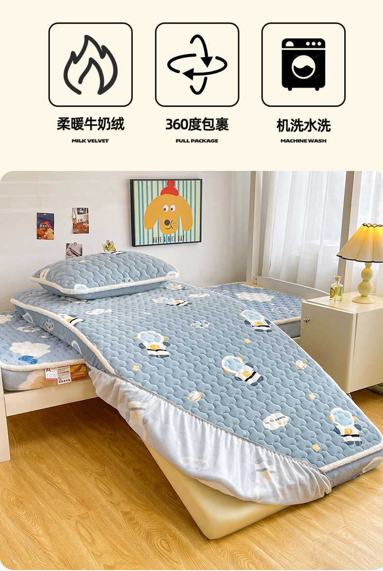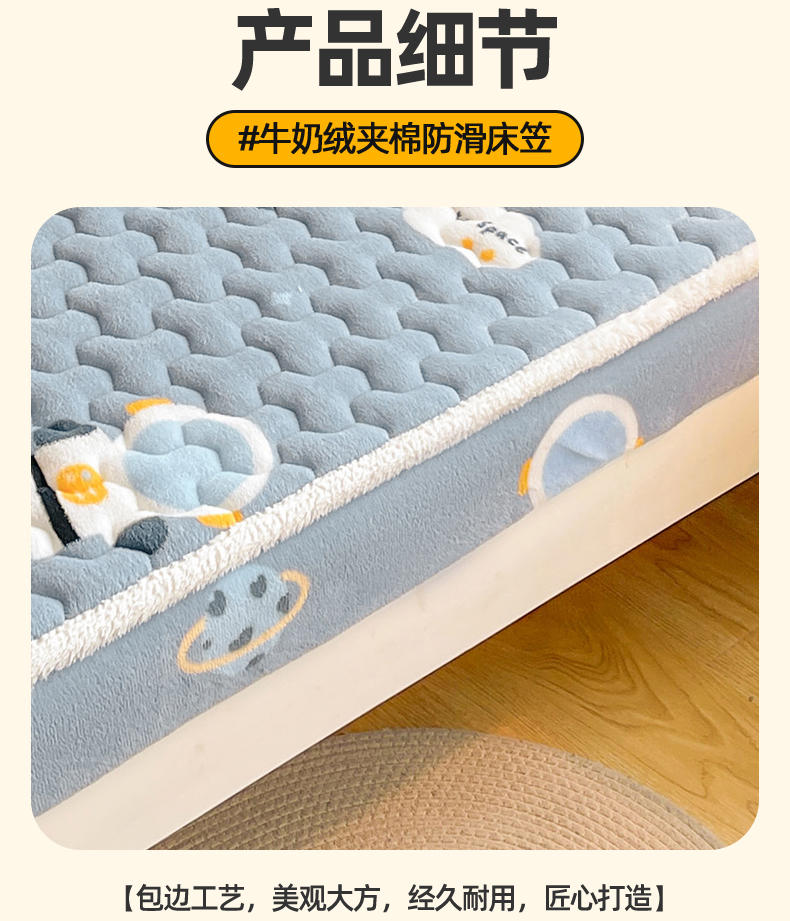 • 91家纺网 家纺一手货源 找家纺 雯豆家纺 2025新款学生上下铺加厚牛奶绒夹棉床笠宿舍大学生床垫保护套 牛奶绒夹棉床笠-小小太空人