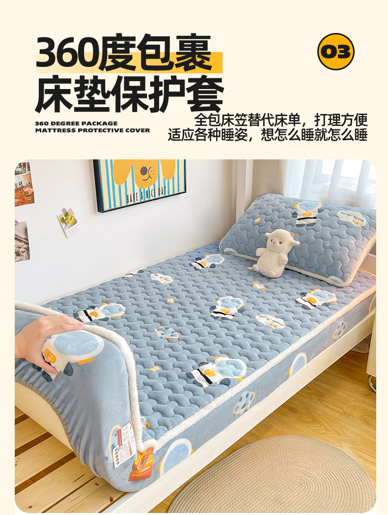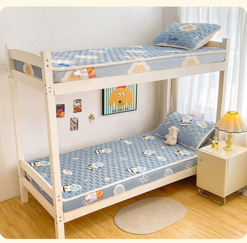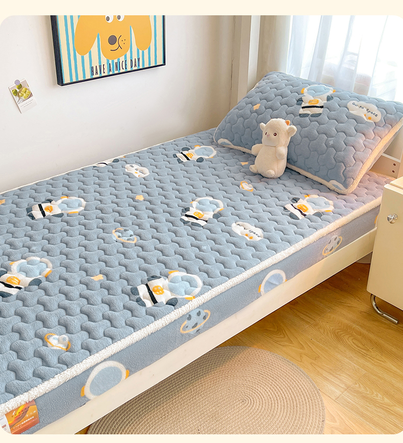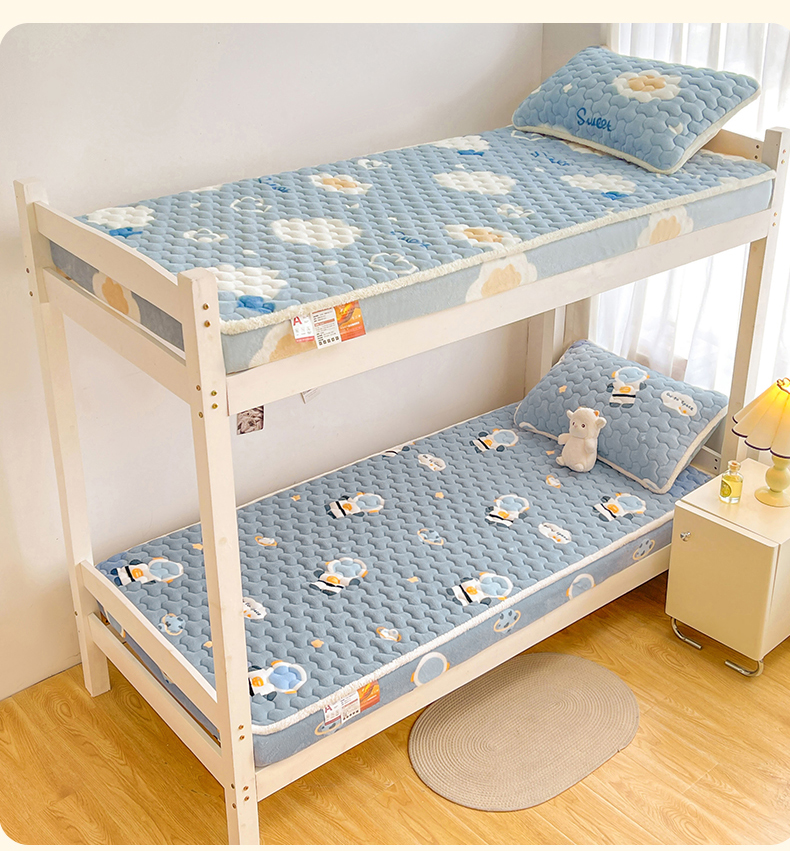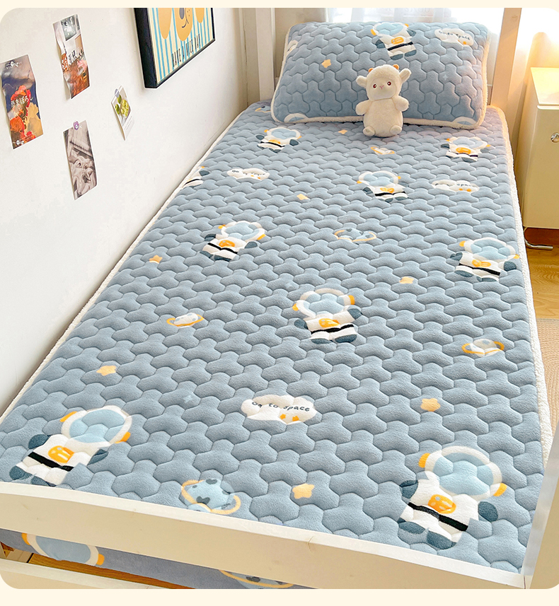 雯豆家纺 2025新款学生上下铺加厚牛奶绒夹棉床笠宿舍大学生床垫保护套 牛奶绒夹棉床笠-小小太空人
