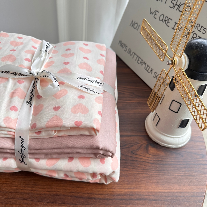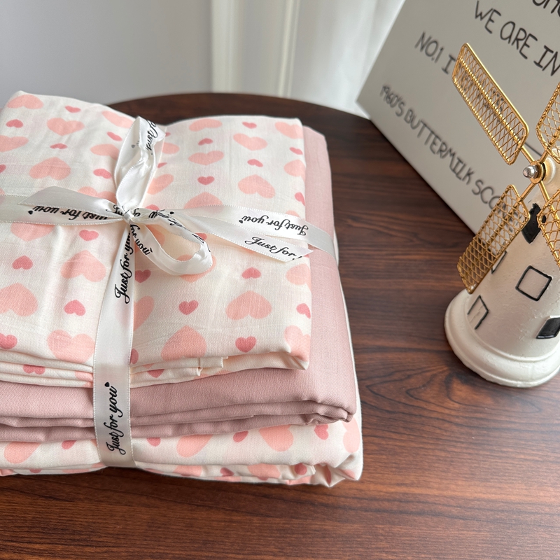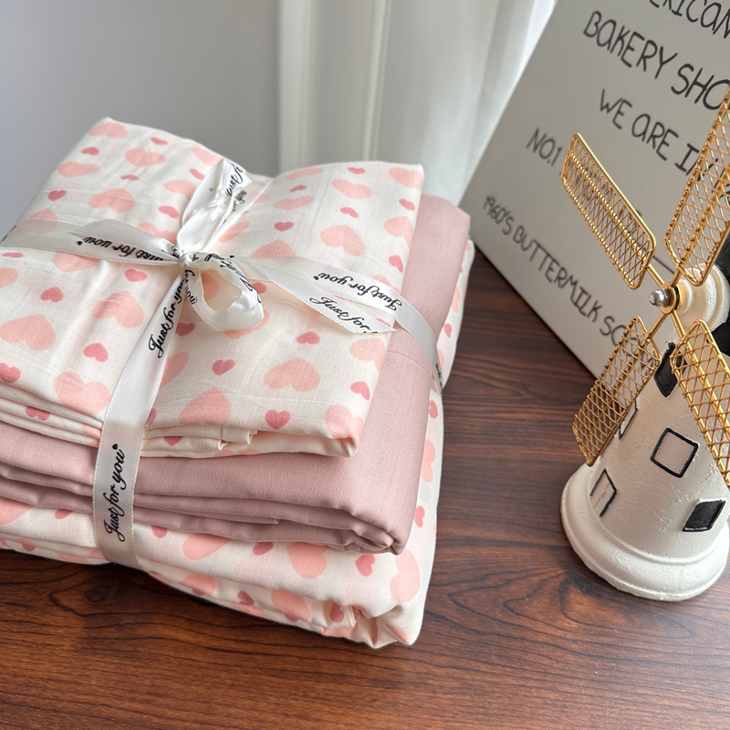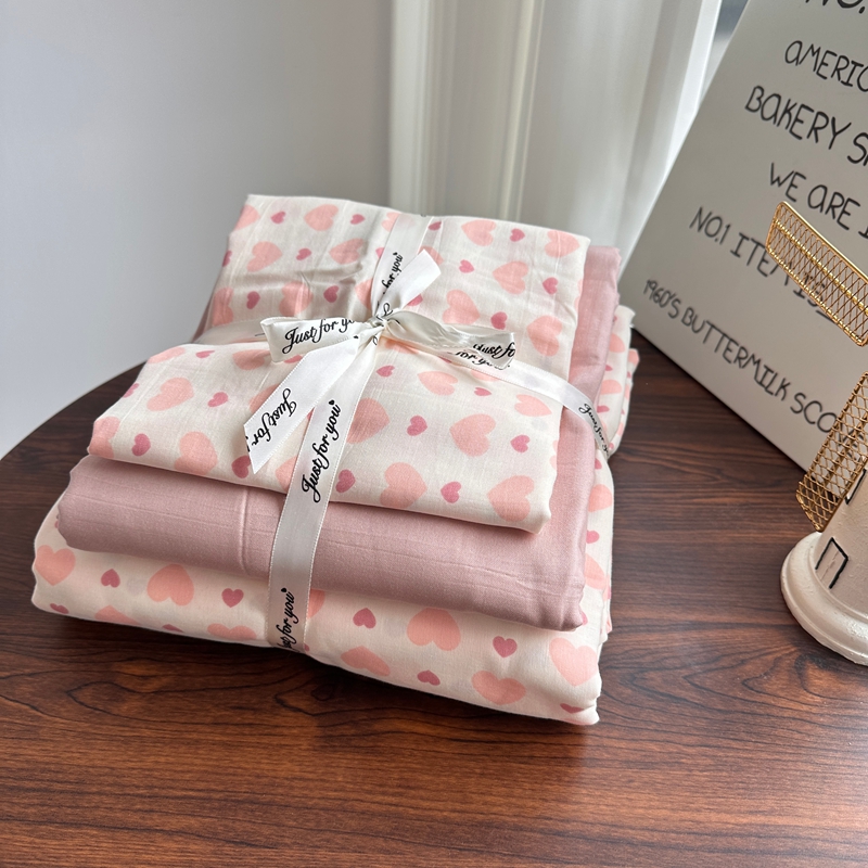 当前位置: 91家纺网 > 商品网购 > 床品套件 > 四件套 > 双层纱四件套 > 爱思佳 2024新款A类母婴全棉双层纱印花四件套直播热卖系列-系列一 小粉心
