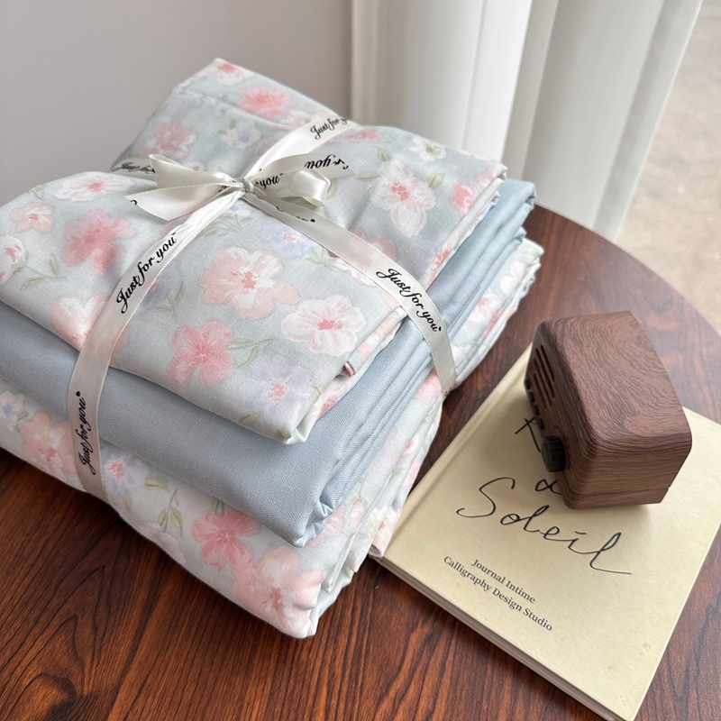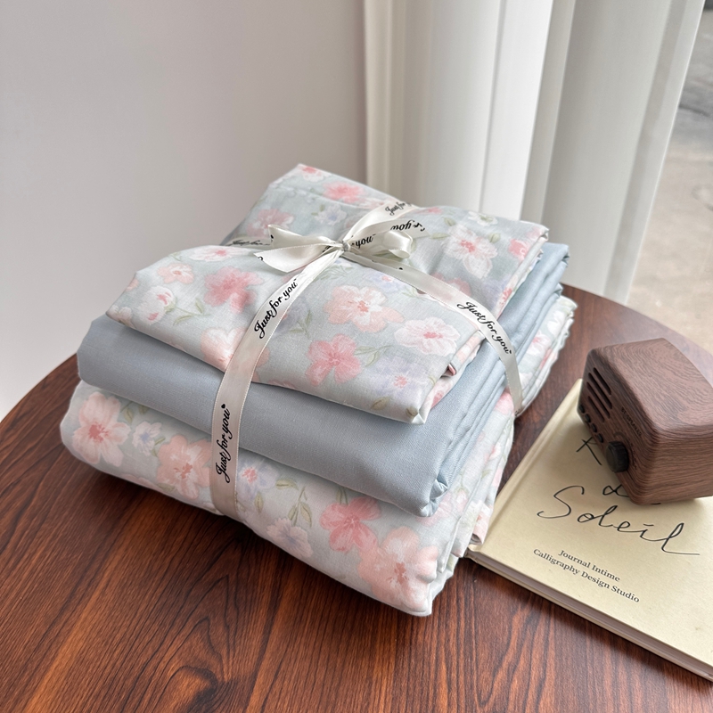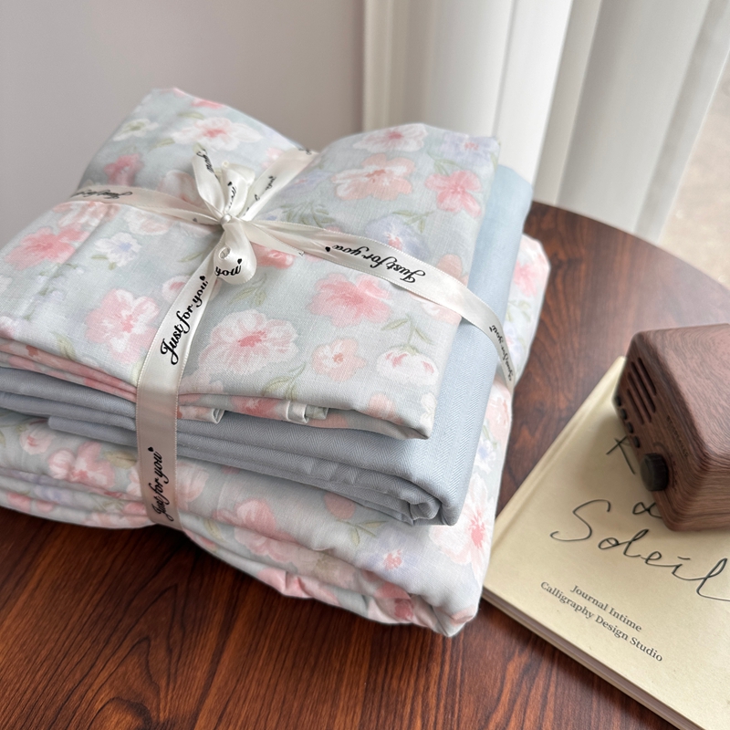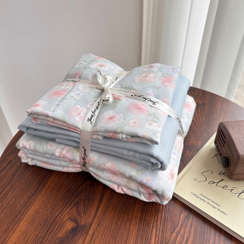 当前位置: 91家纺网 > 商品网购 > 床品套件 > 四件套 > 双层纱四件套 > 爱思佳 2024新款A类母婴全棉双层纱印花四件套直播热卖系列三 叠拍图 清浅