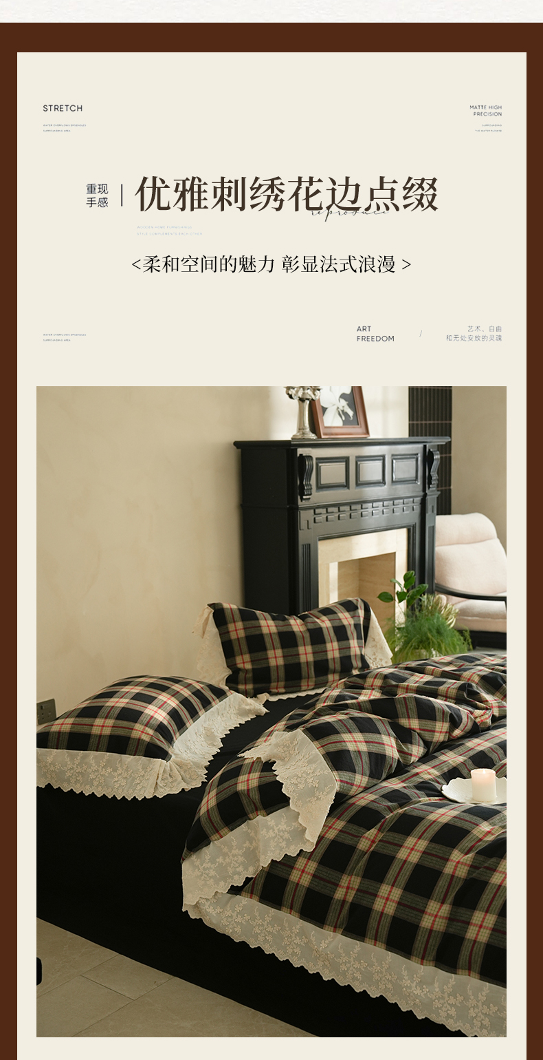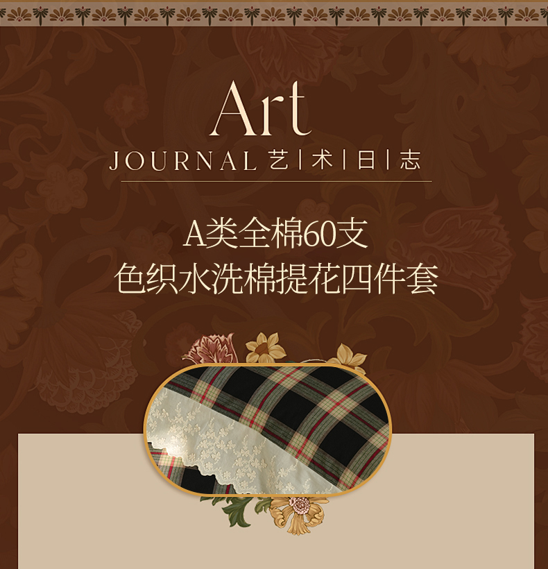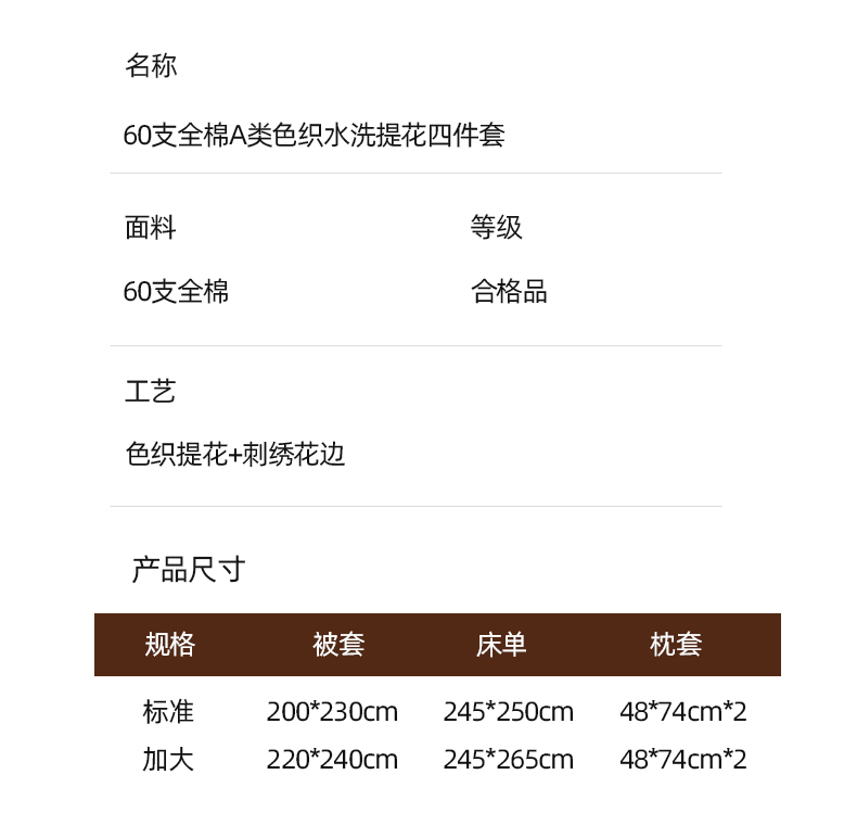 商品名称:(总)寐居家纺 2025新款A类60支韩式复古风全棉水洗色织提花四件套