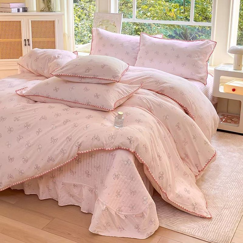梦可莱家居 2025新款木棉床盖四件套 粉蝴蝶结