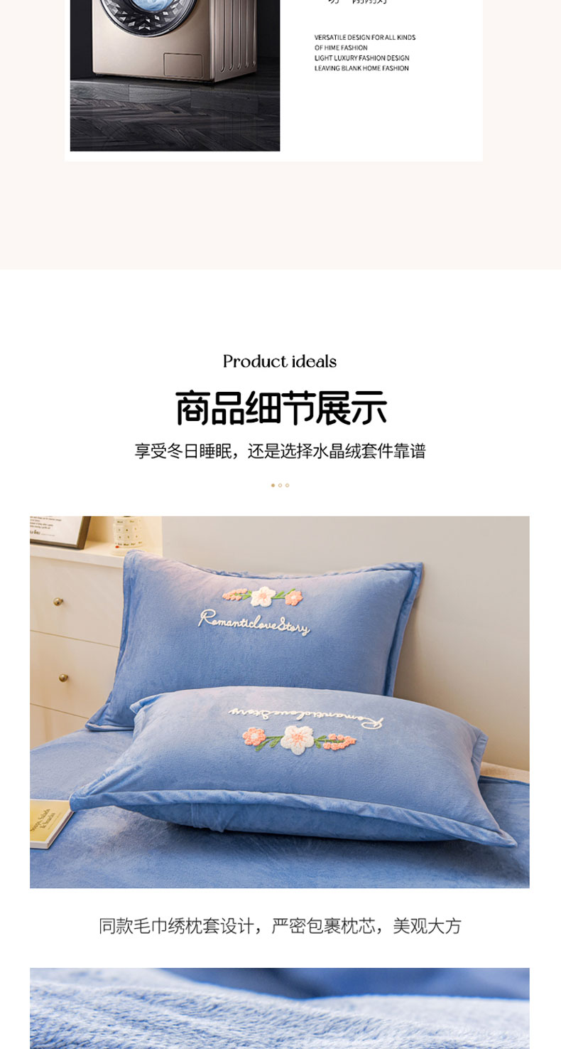 商品名称:提花大世界 2025新款宝宝绒绣花款牛奶绒婴儿绒保暖四件套 花辰月夕-水绿