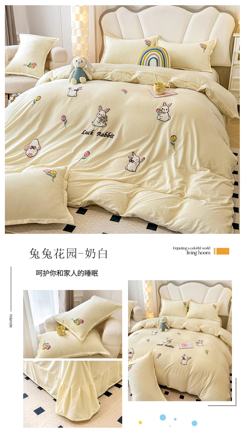 商品名称:提花大世界 2025新款宝宝绒绣花款牛奶绒婴儿绒保暖四件套 兔兔花园-水绿