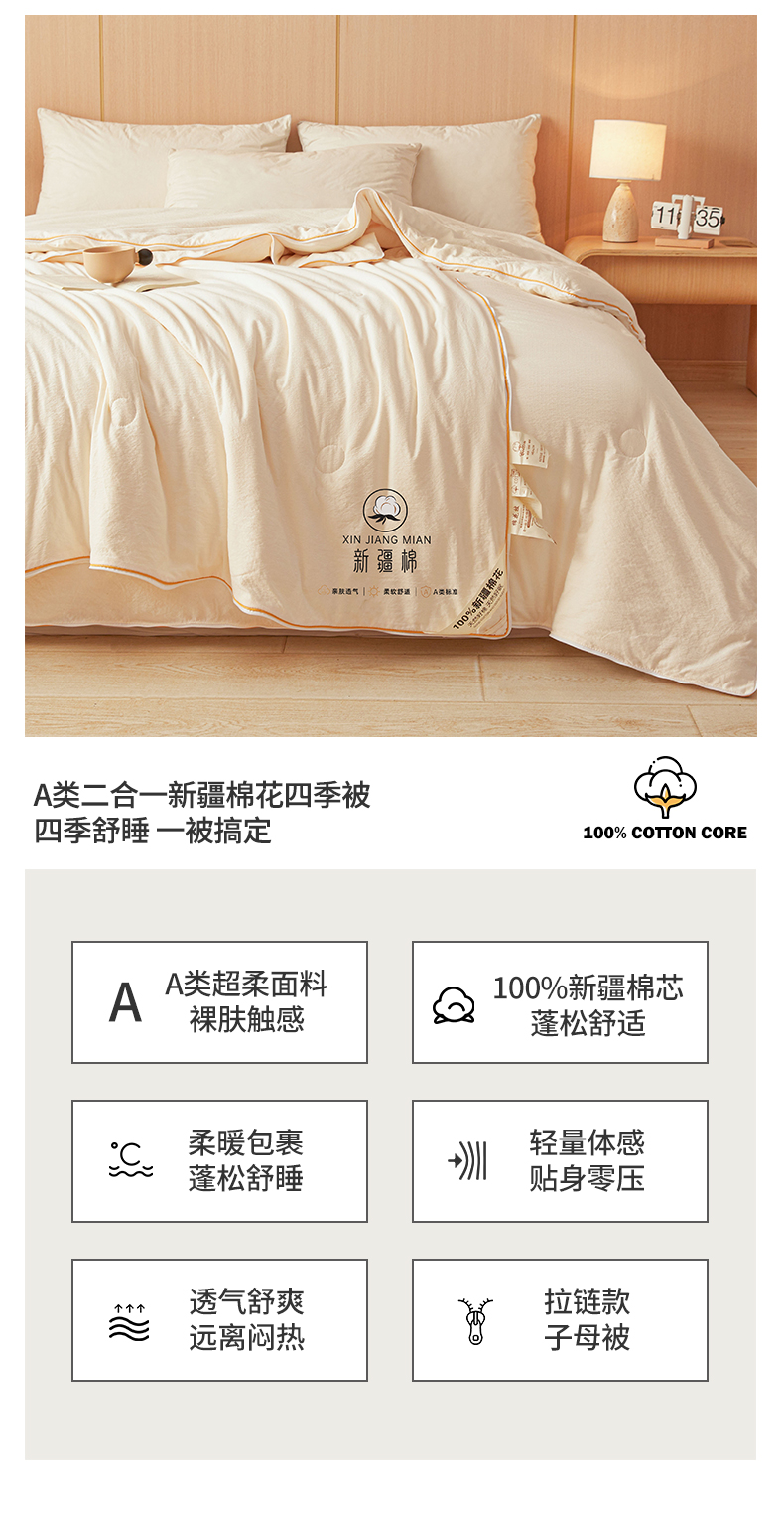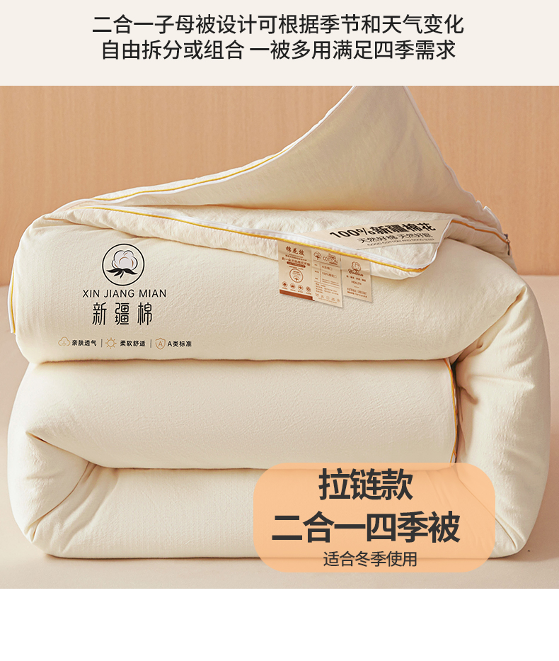 (总)逸居家纺 2025新款A类水洗棉立体边新疆棉花被子母被,新疆棉花子母被 纯净蓝,新疆棉花子母被 皓石灰,新疆棉花子母被 奶昔白,新疆棉花子母被 青雅绿,新疆棉花子母被 温柔粉