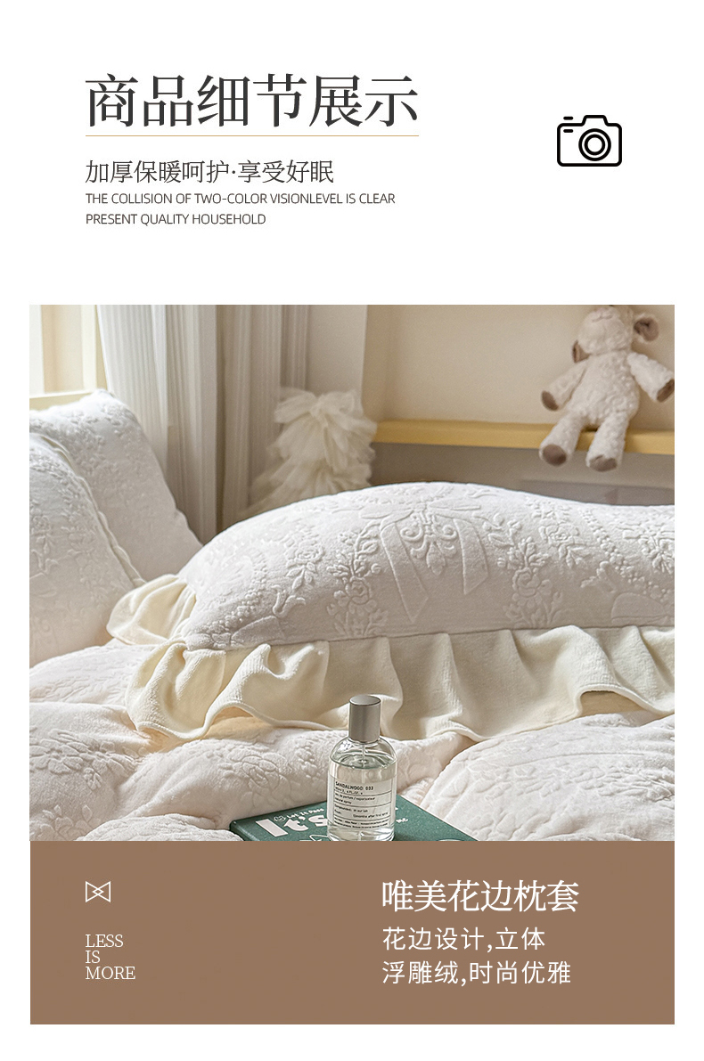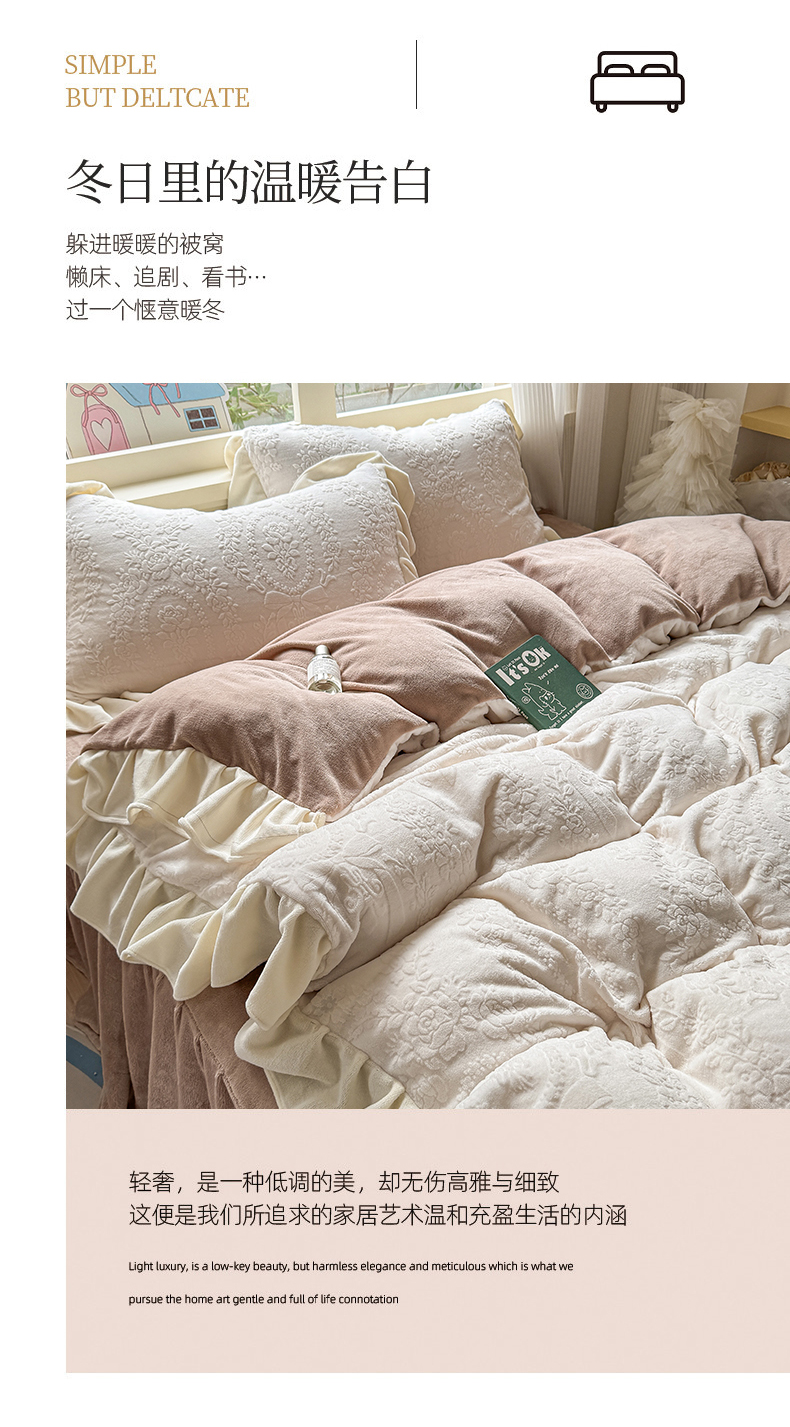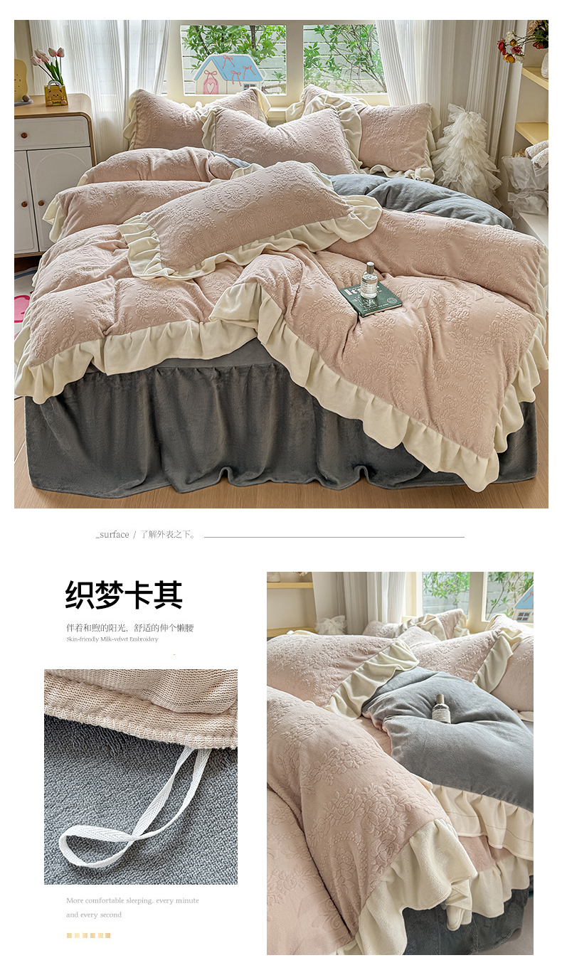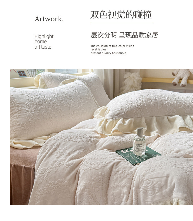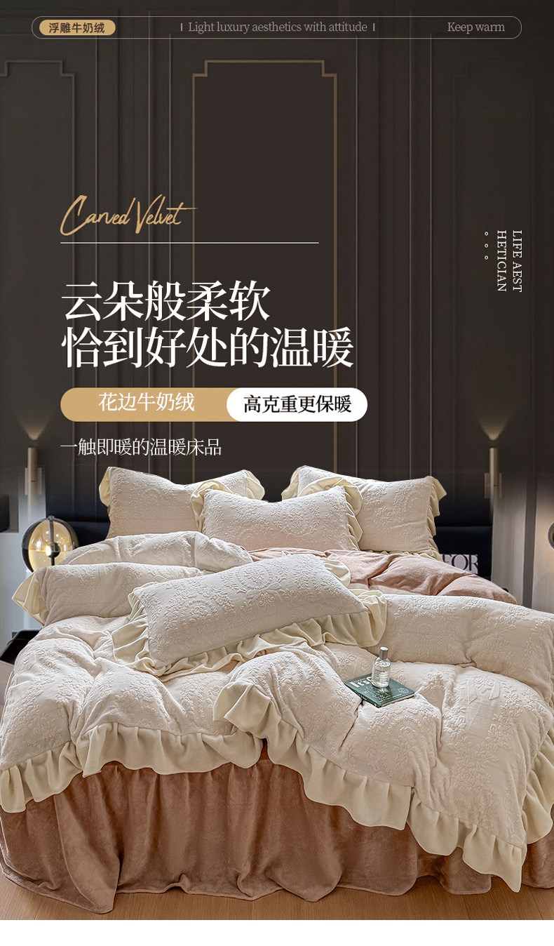 当前位置: 91家纺网 > 商品网购 > 床品套件 > 四件套 > 牛奶绒四件套 > KA家纺 2025新款冬雕花牛奶绒床裙款四件套-织梦系列 织梦奶白