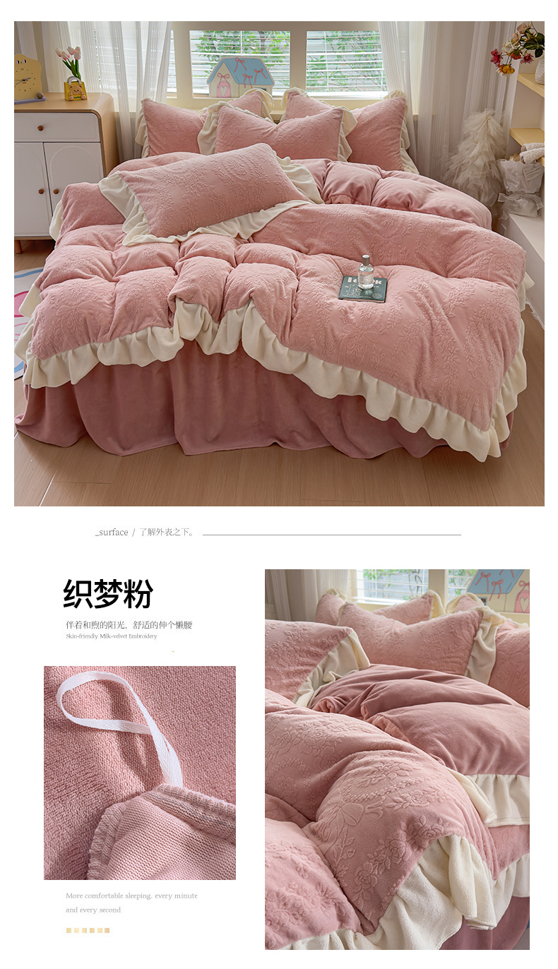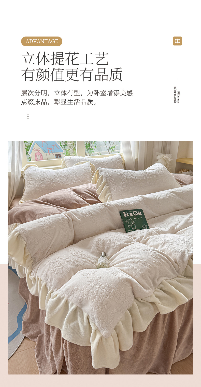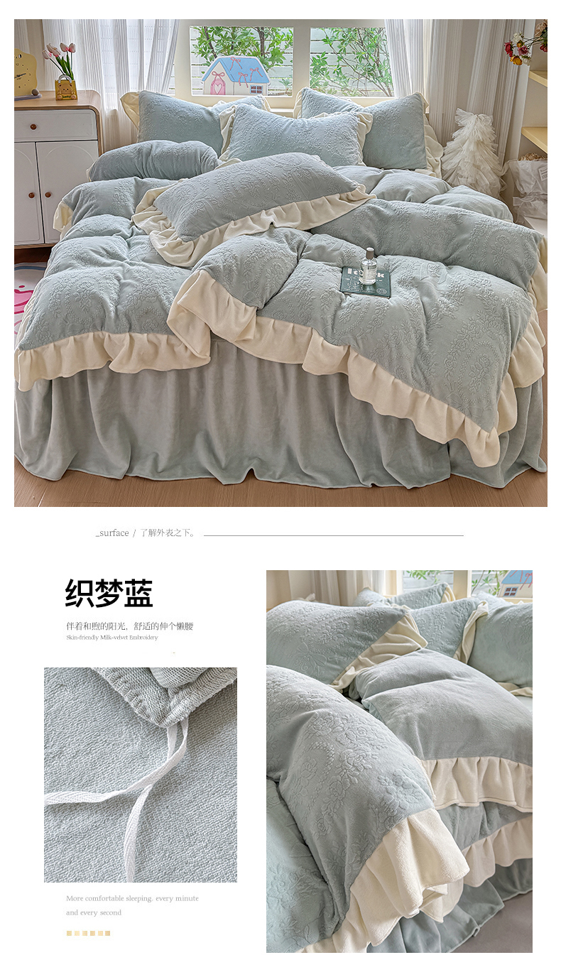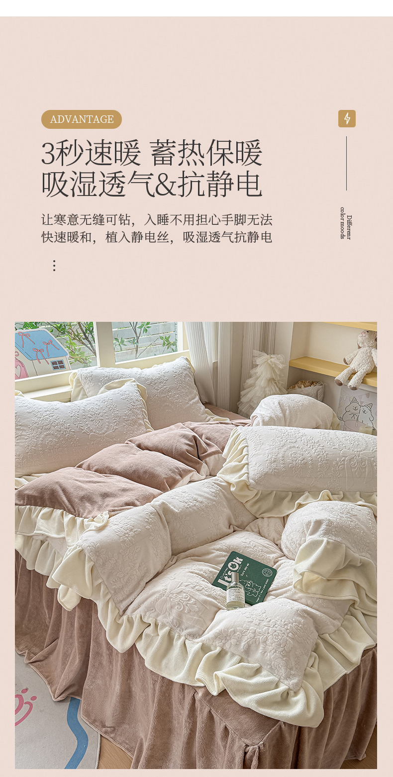 当前位置: 91家纺网 > 商品网购 > 床品套件 > 四件套 > 牛奶绒四件套 > KA家纺 2025新款冬雕花牛奶绒床裙款四件套-织梦系列 织梦奶白