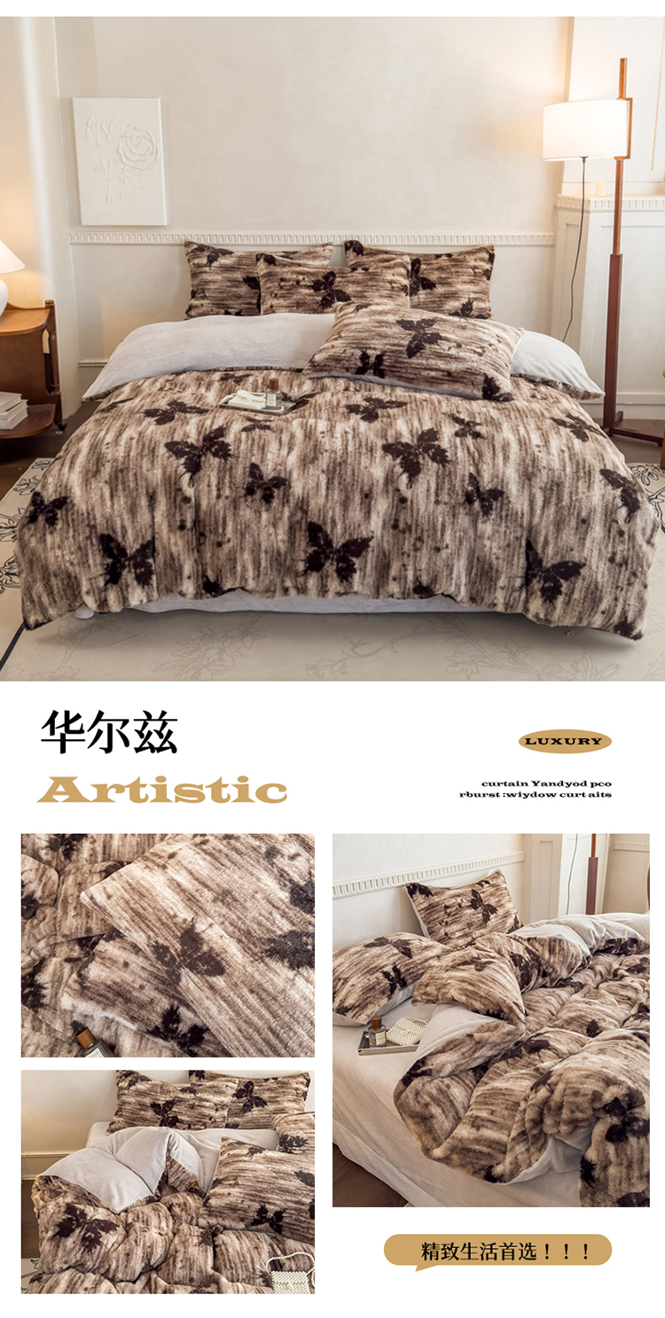 (总)橘子家 2025新款轻奢兔绒高克重四件套,豹纹-咖,彼岸花开,彼岸花开-灰,古奈,蝴蝶,华尔兹,简爱,锦瑟,蔓蝶,蔓蝶-灰,玫瑰花,绮梦,森与-灰,索菲庄园,向阳花开-黄,向阳花开-紫,燕尾花,燕尾花-灰