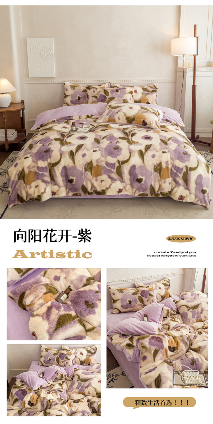 商品名称:橘子家 2025新款轻奢兔绒高克重四件套 向阳花开-紫