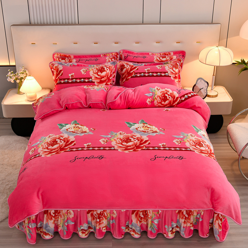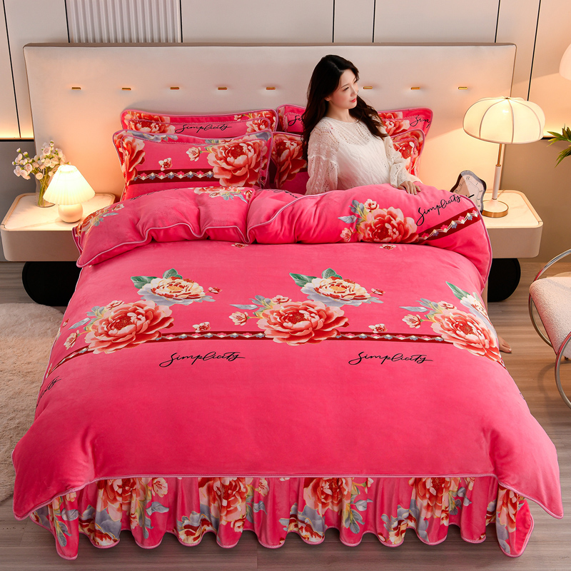 当前位置: 91家纺网 > 商品网购 > 床品套件 > 四件套 > 牛奶绒四件套 > 2025新款230克8.5斤加厚高克重牛奶绒金貂绒法莱绒四件套冬季加绒法兰绒床裙款 牡丹盛开