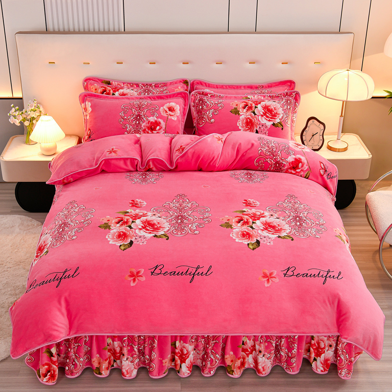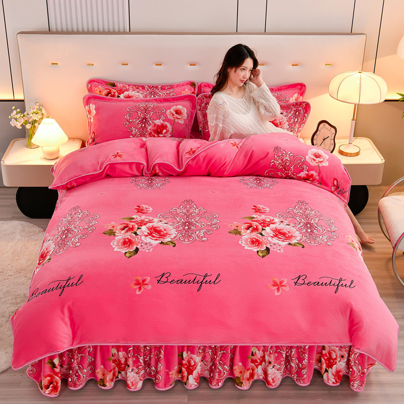 当前位置: 91家纺网 > 商品网购 > 床品套件 > 四件套 > 牛奶绒四件套 > 2025新款230克8.5斤加厚高克重牛奶绒金貂绒法莱绒四件套冬季加绒法兰绒床裙款 花香迷人