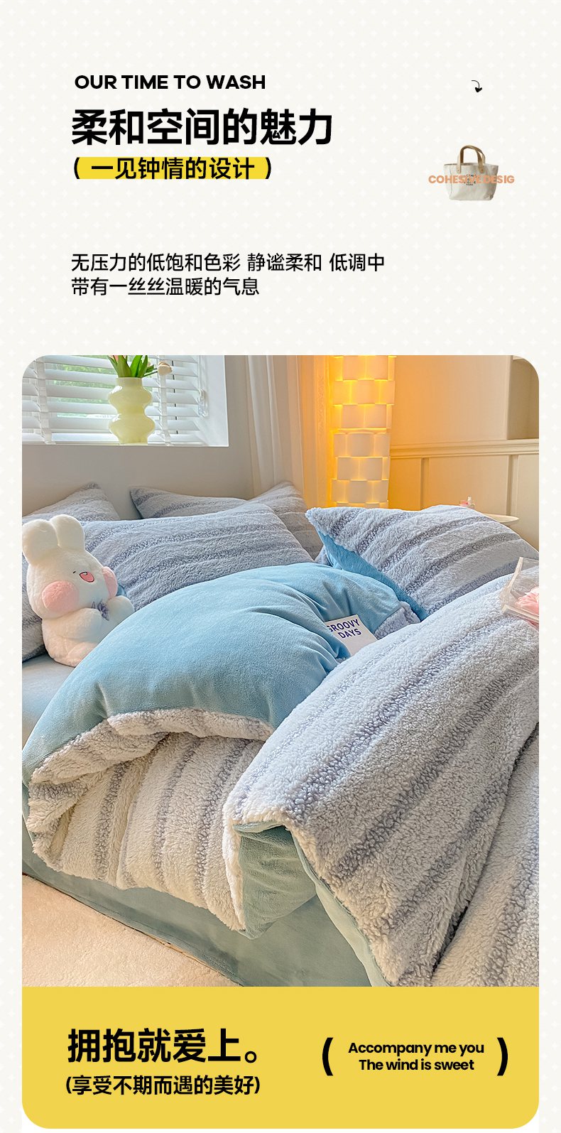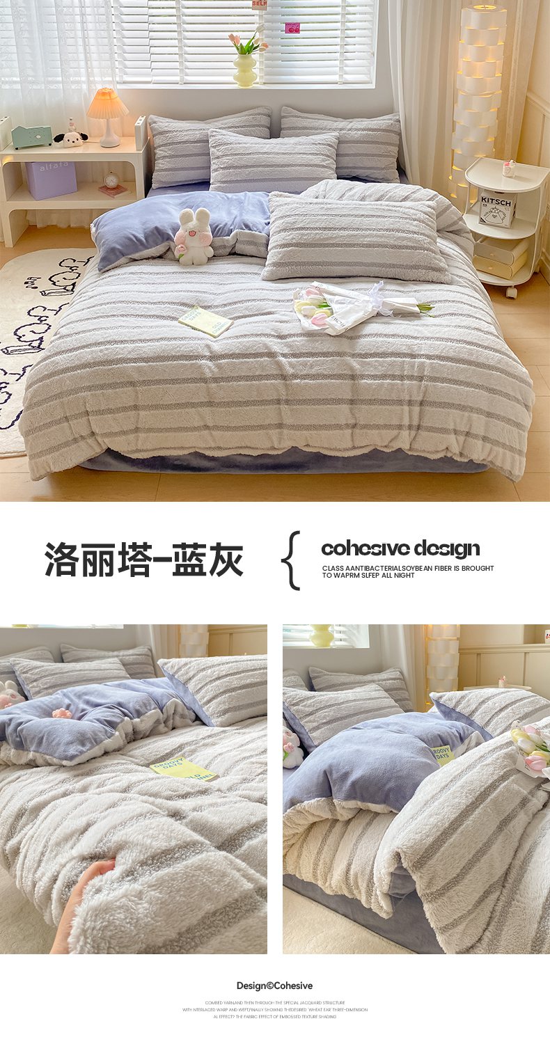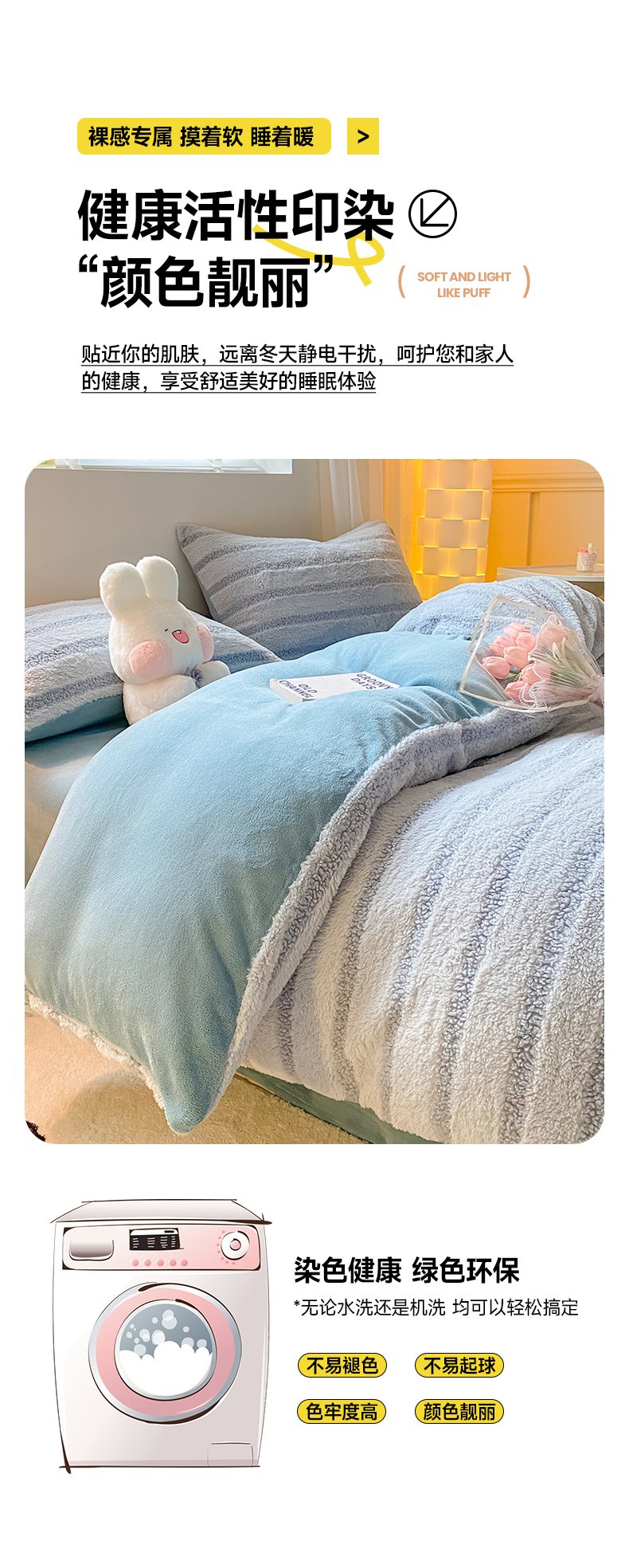 摩妮卡 2025新款加厚兔兔绒牛奶绒四件套-洛丽塔系列 洛丽塔-湖泊蓝