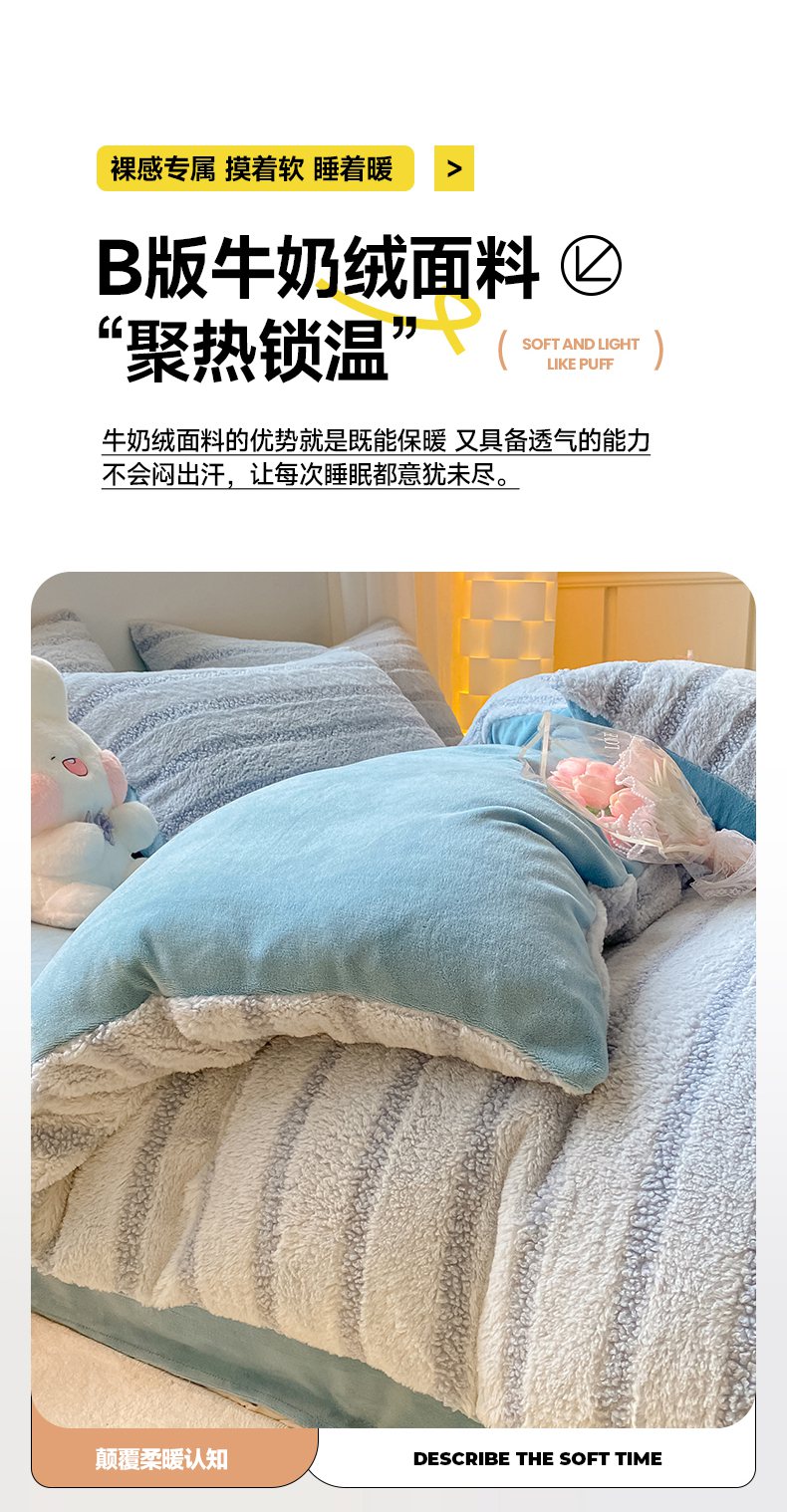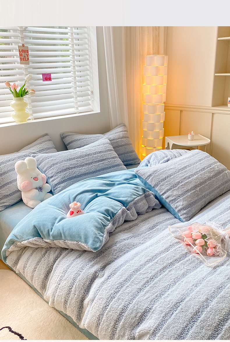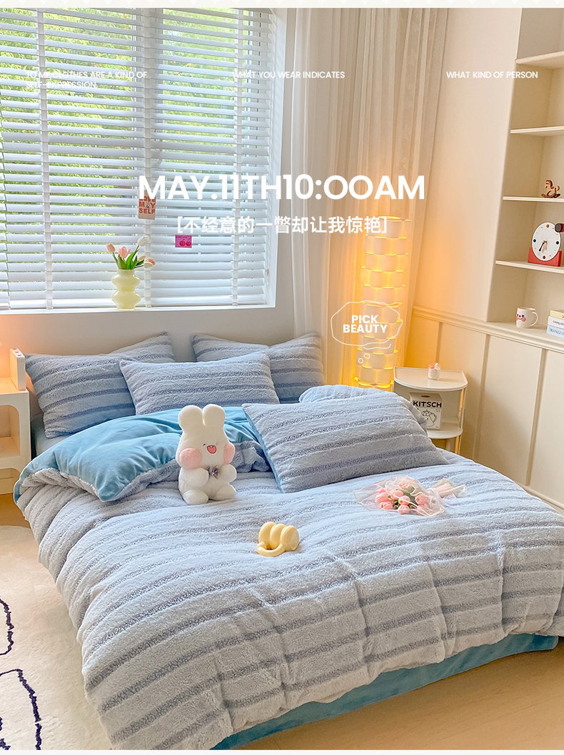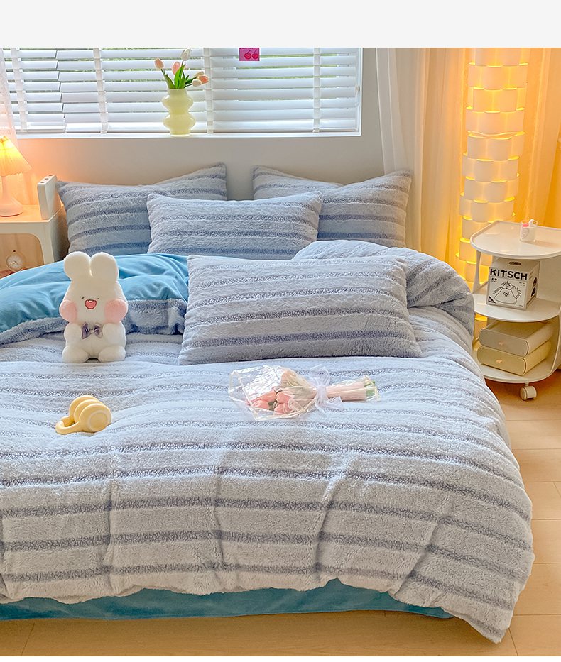 摩妮卡 2025新款加厚兔兔绒牛奶绒四件套-洛丽塔系列 洛丽塔-湖泊蓝