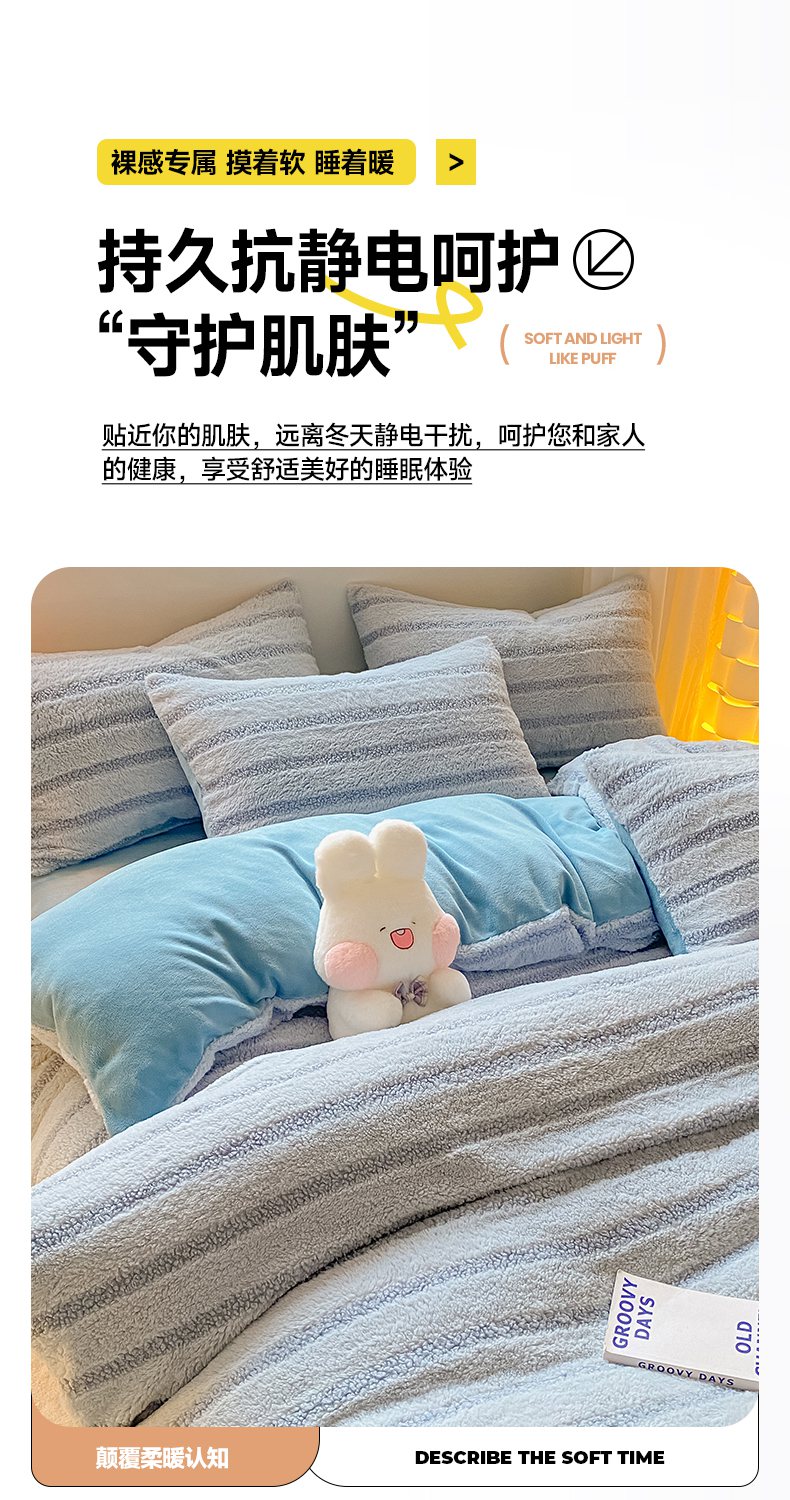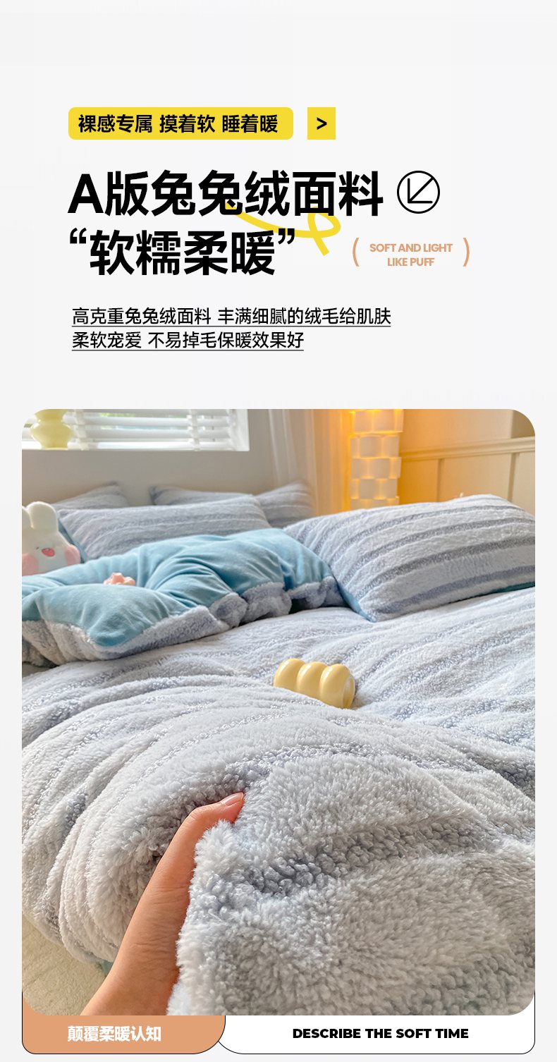 商品名称:摩妮卡 2025新款加厚兔兔绒牛奶绒四件套-洛丽塔系列 洛丽塔-湖泊蓝
