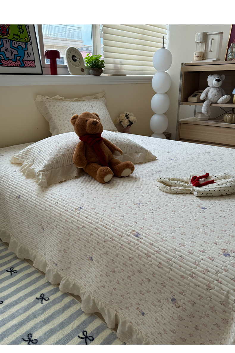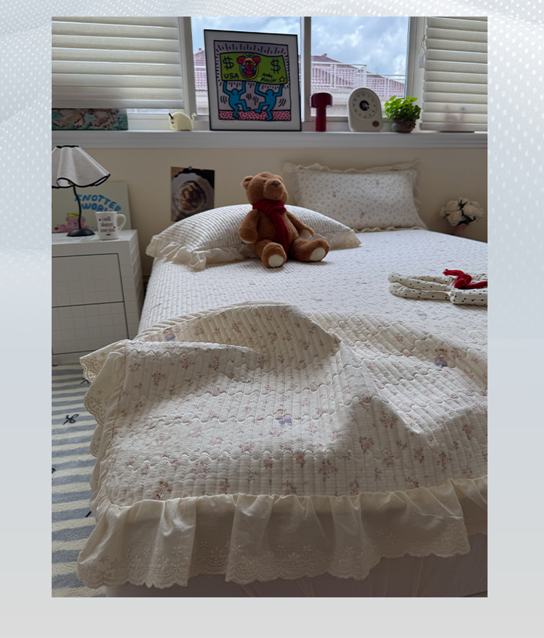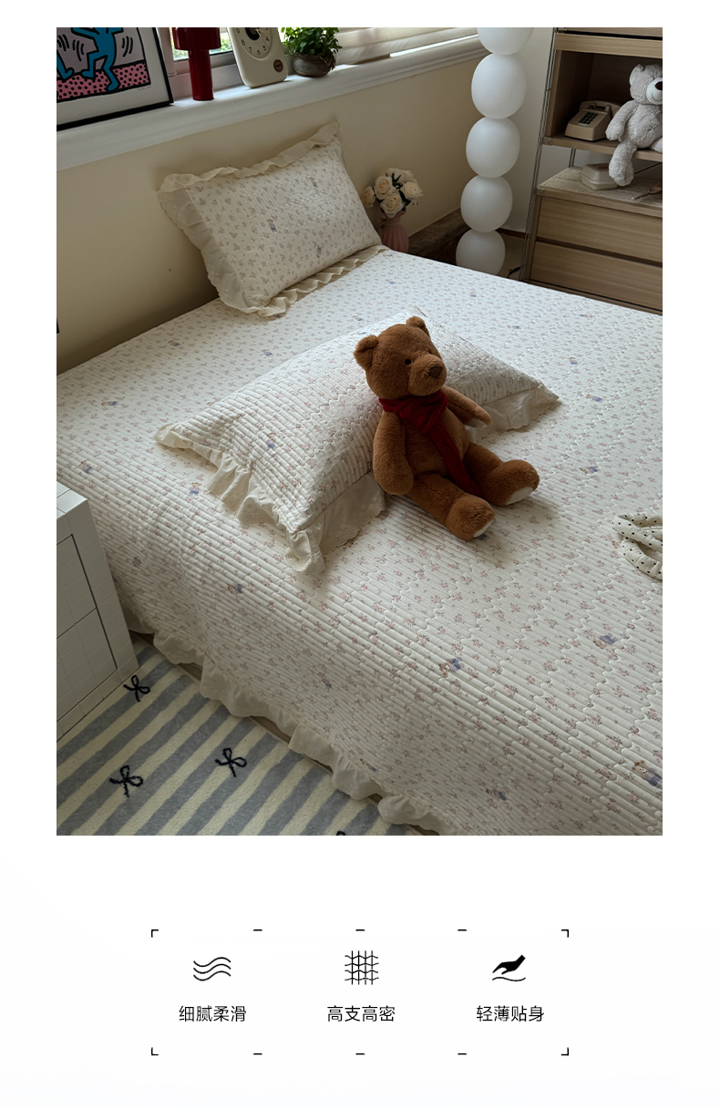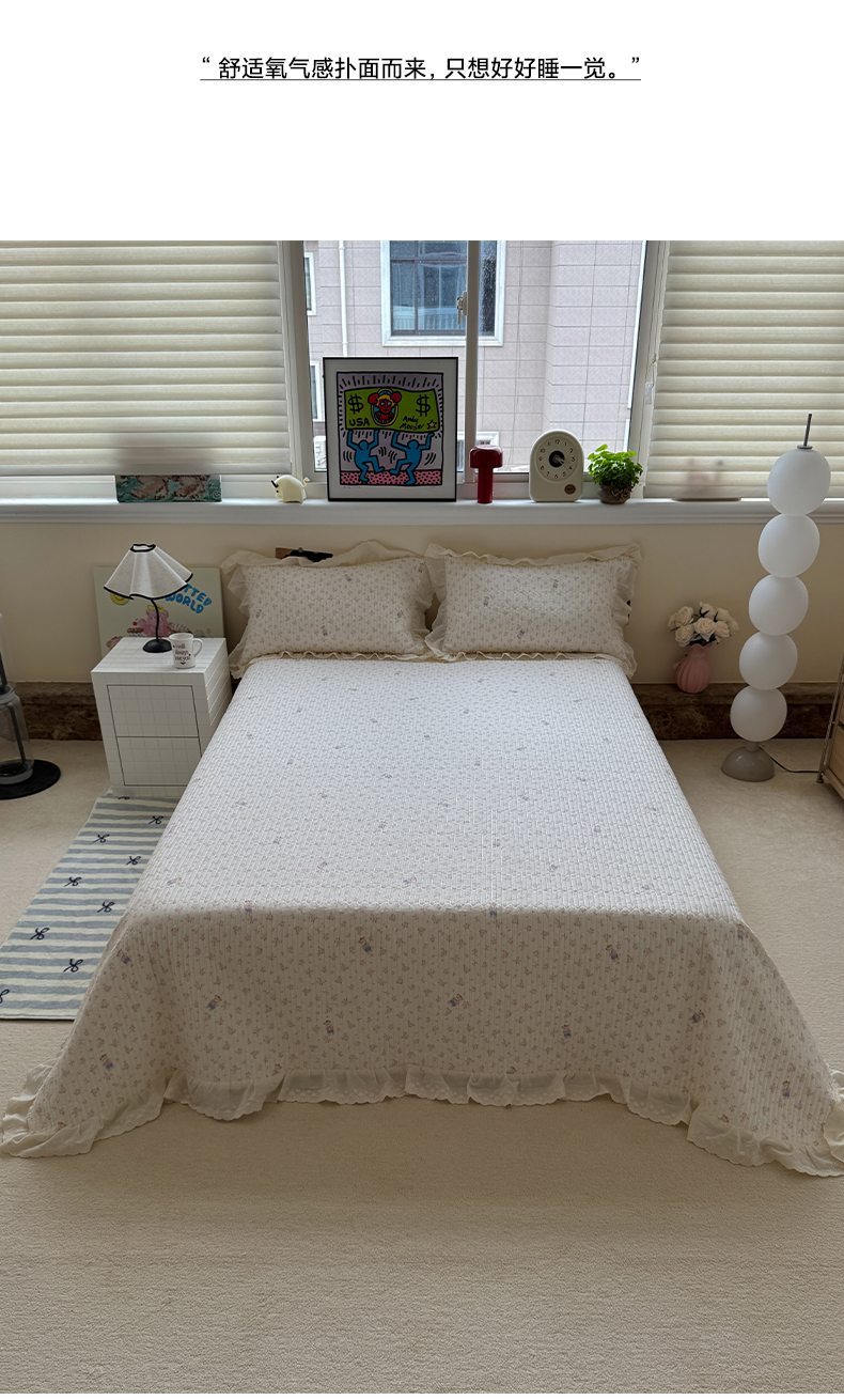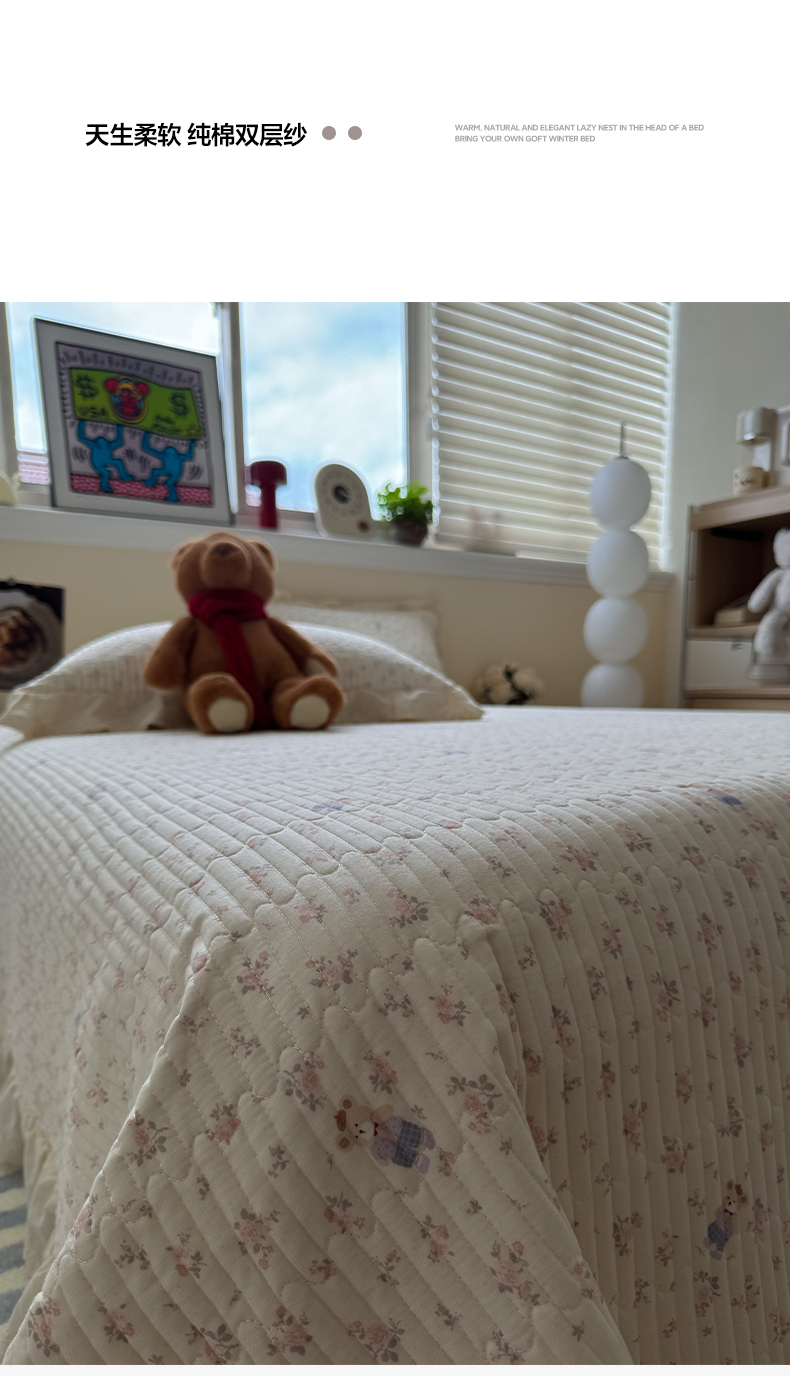 一加一 2025新款全棉纯棉双层纱田园风单床盖床盖单件单品床盖 钥匙珊瑚