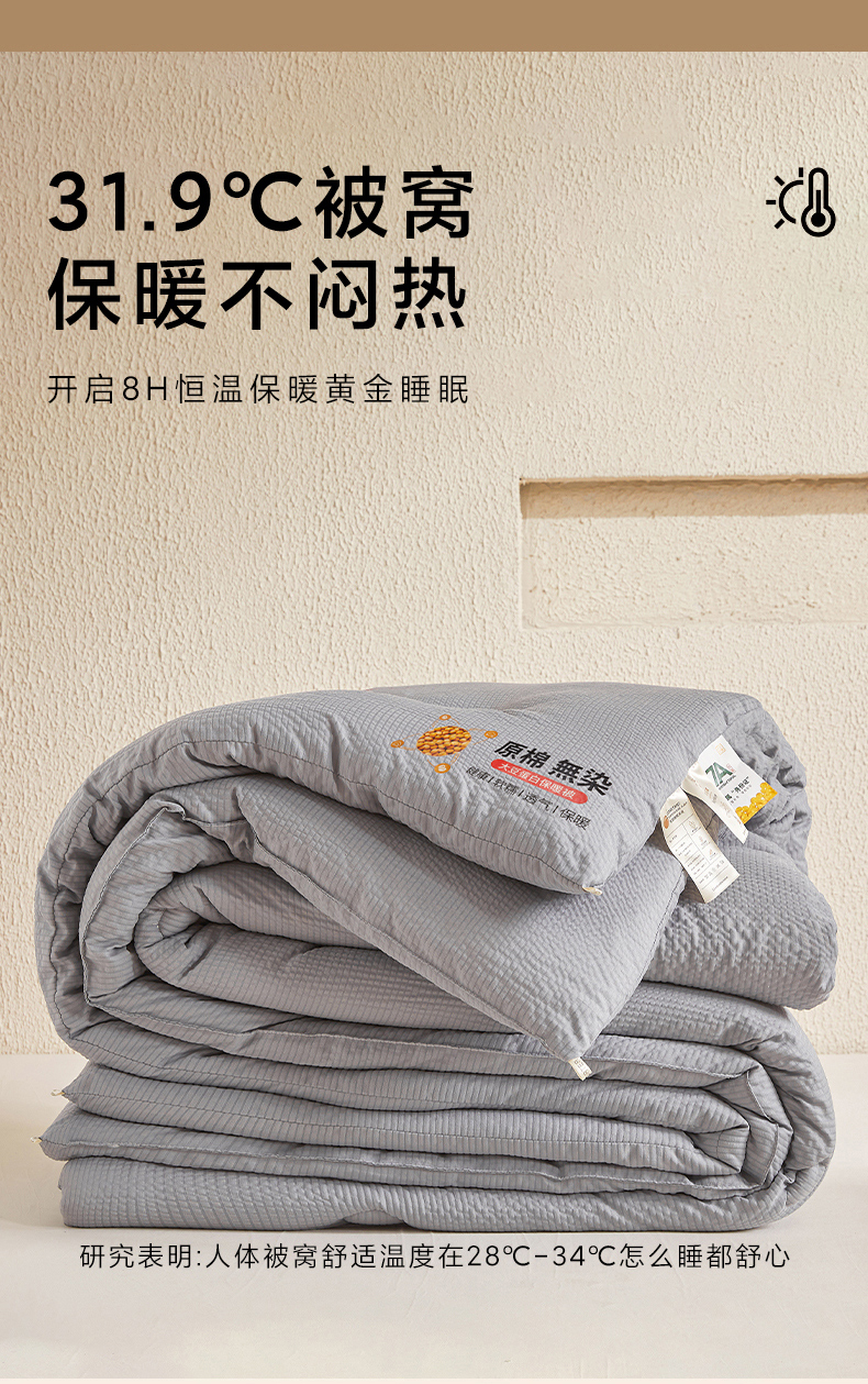 (总)欢乐季 2025新款 7A抗菌新疆长绒棉棉花被春秋保暖被子被芯,原棉白,原棉粉,原棉咖