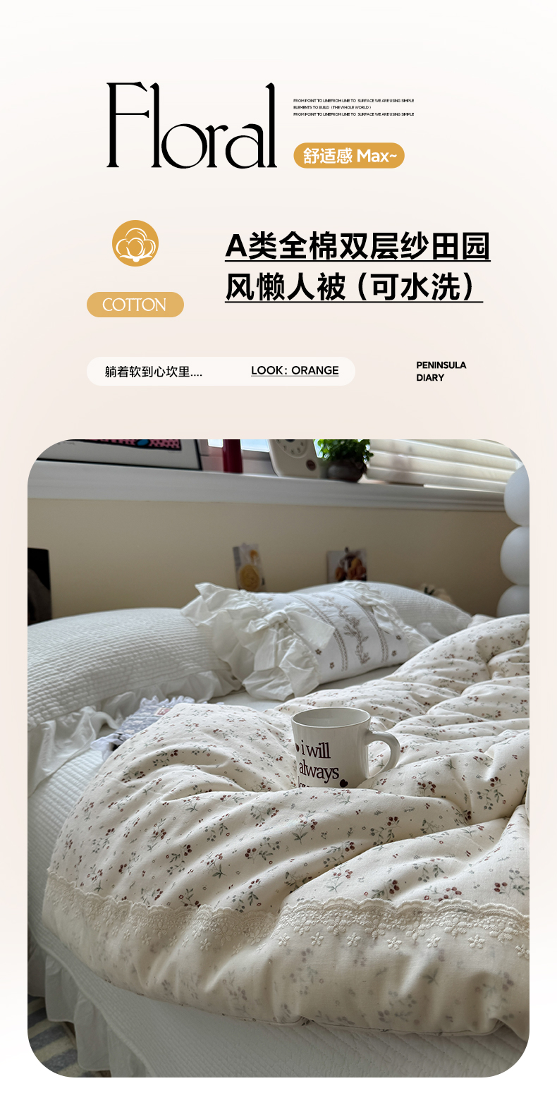 • 91家纺网 家纺一手货源 找家纺 一加一 2025新款A类全棉纯棉双层纱田园风懒人被冬被被子被芯(可水洗) 果然花香
