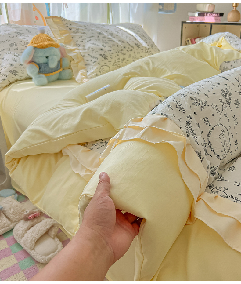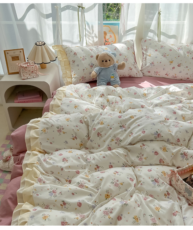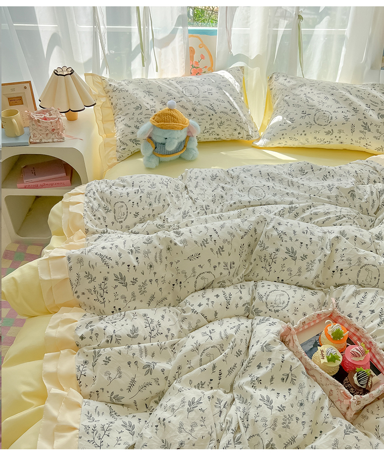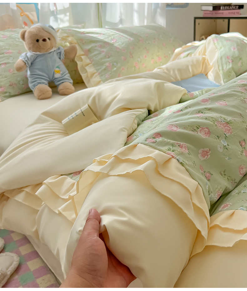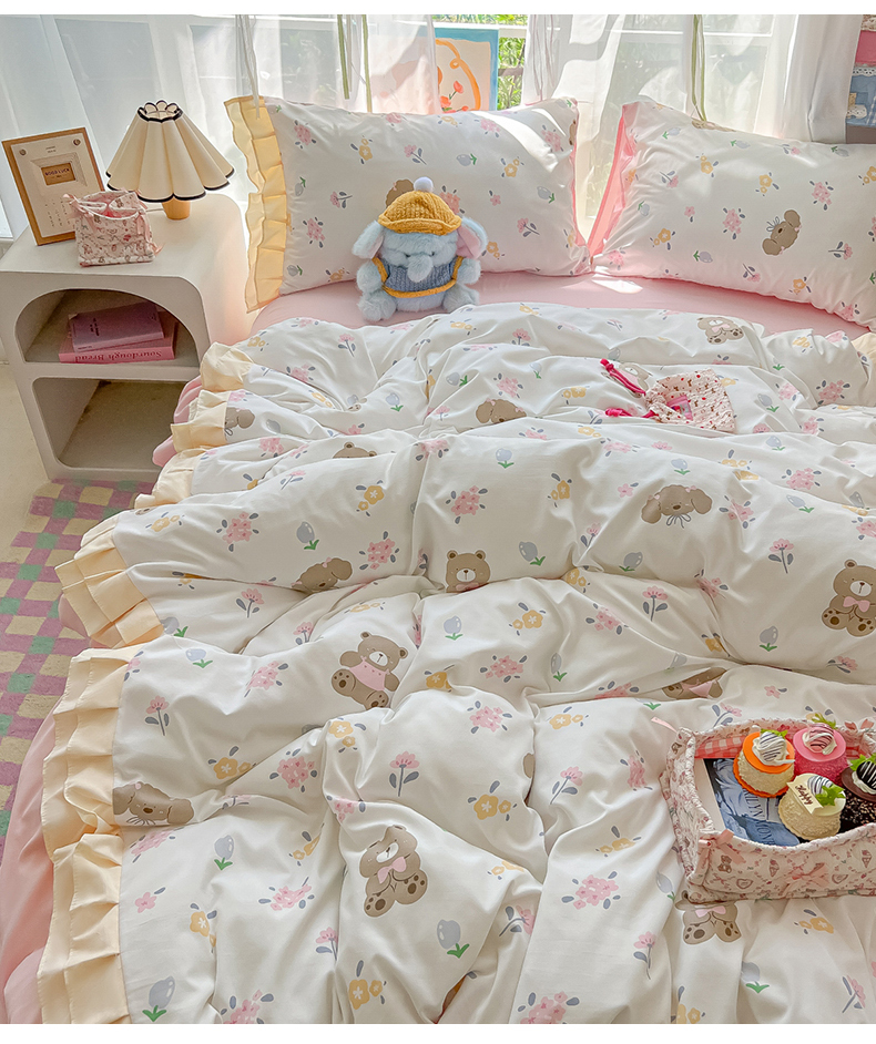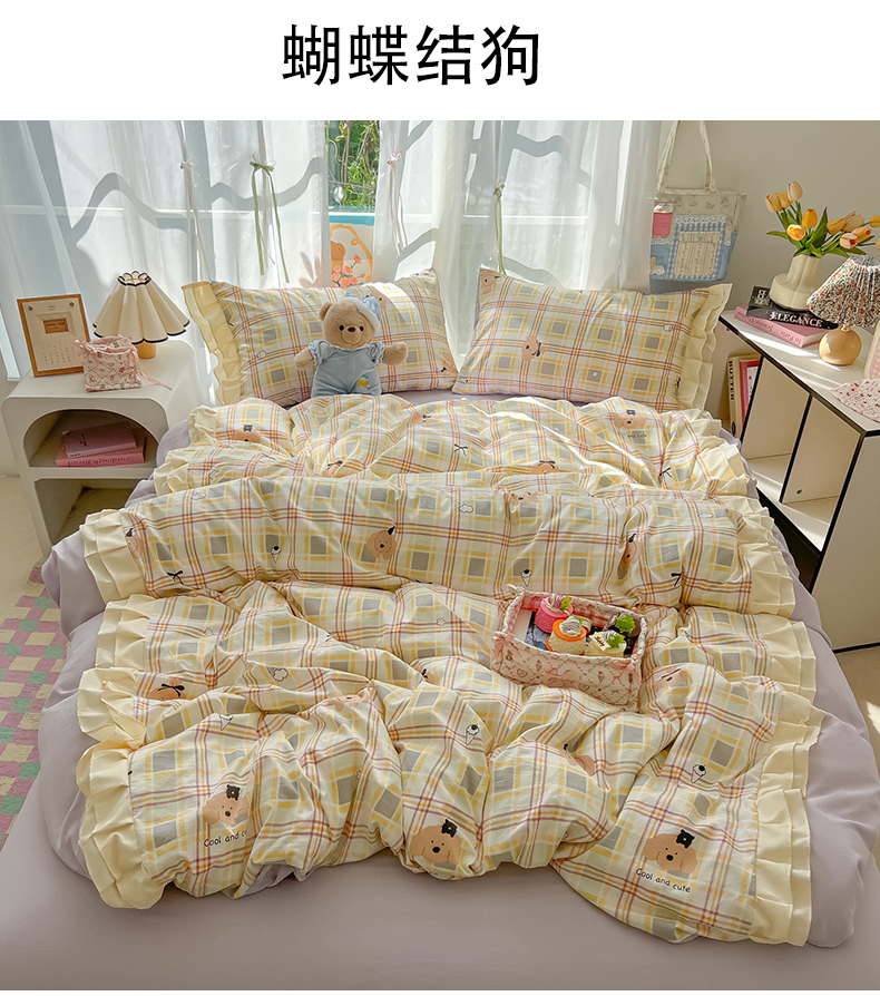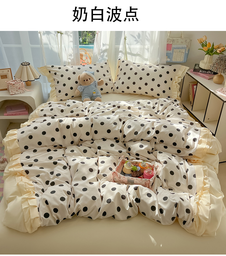 商品名称:(总)子钦家纺 2025新款云朵棉水洗棉双花边奶油花边仙女风床单床笠床裙四件套