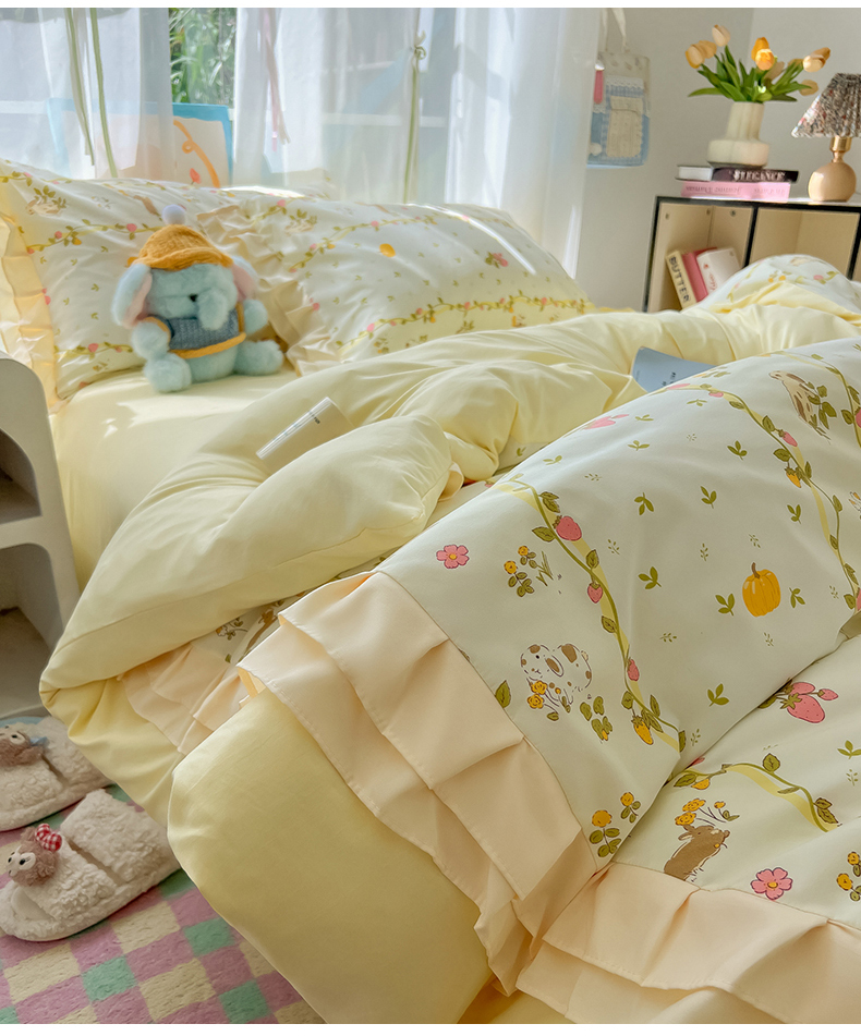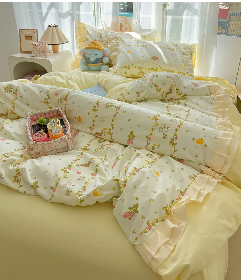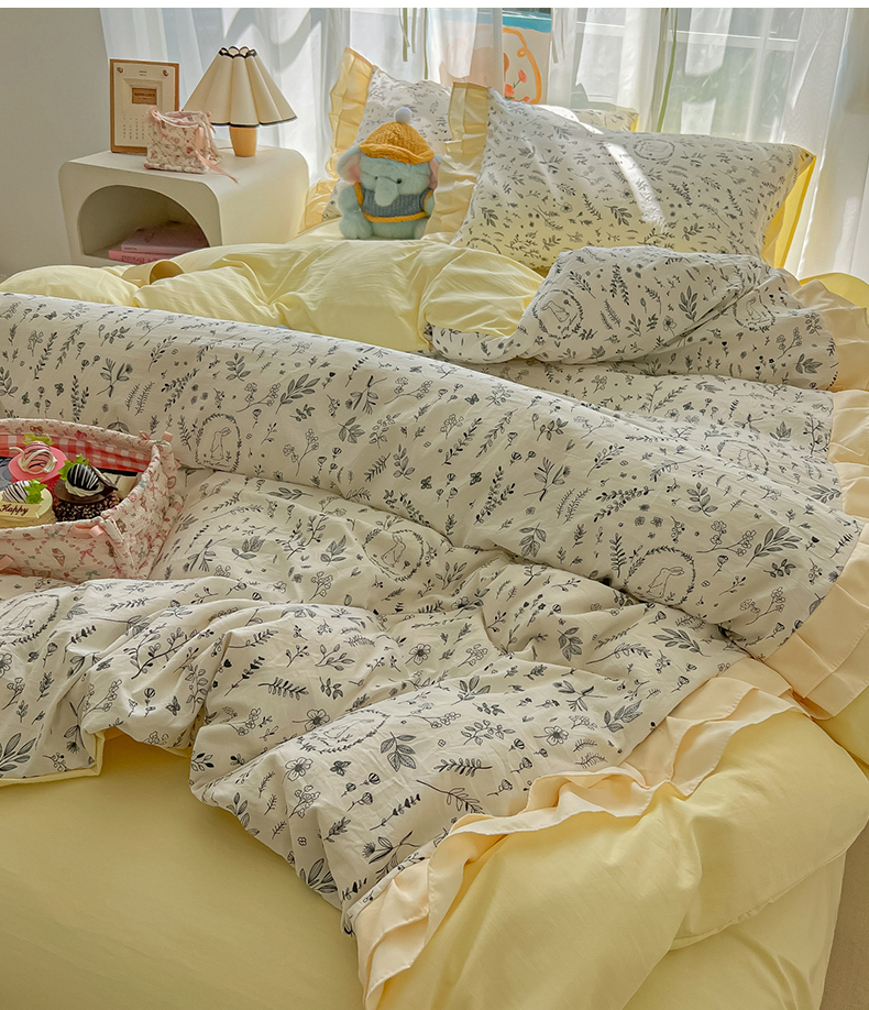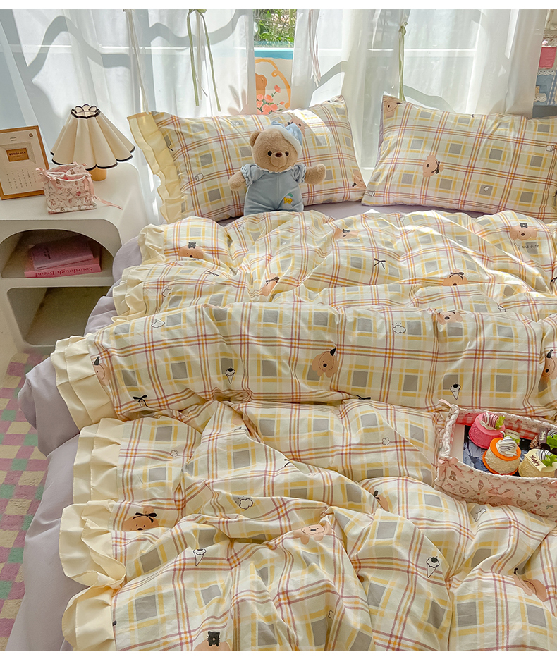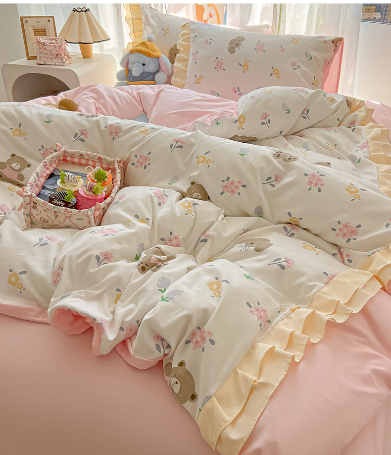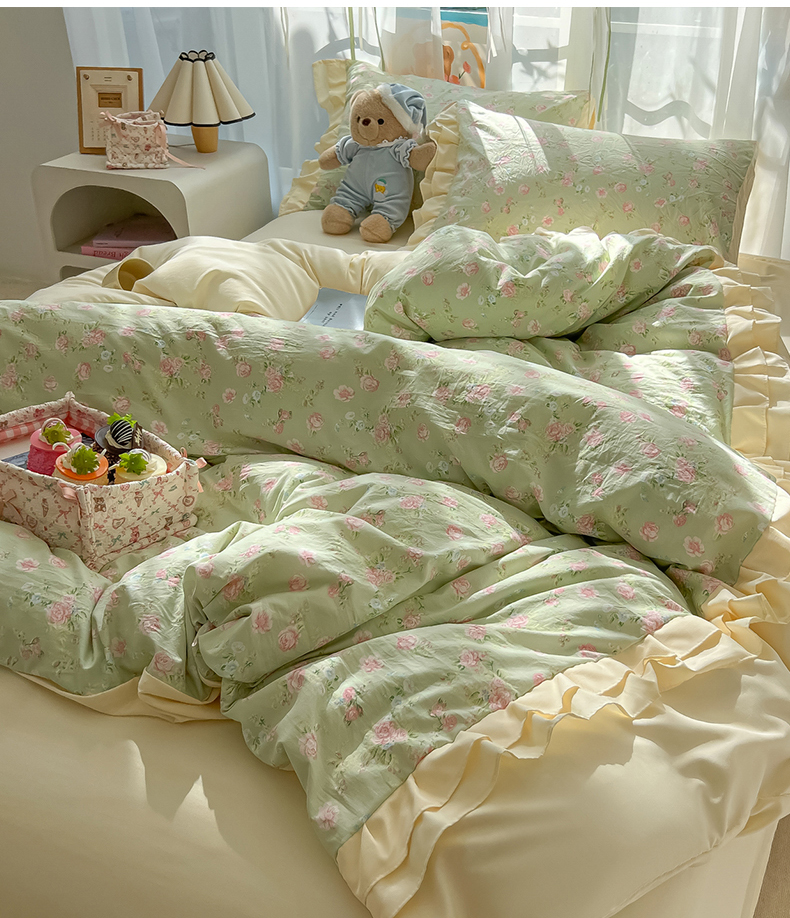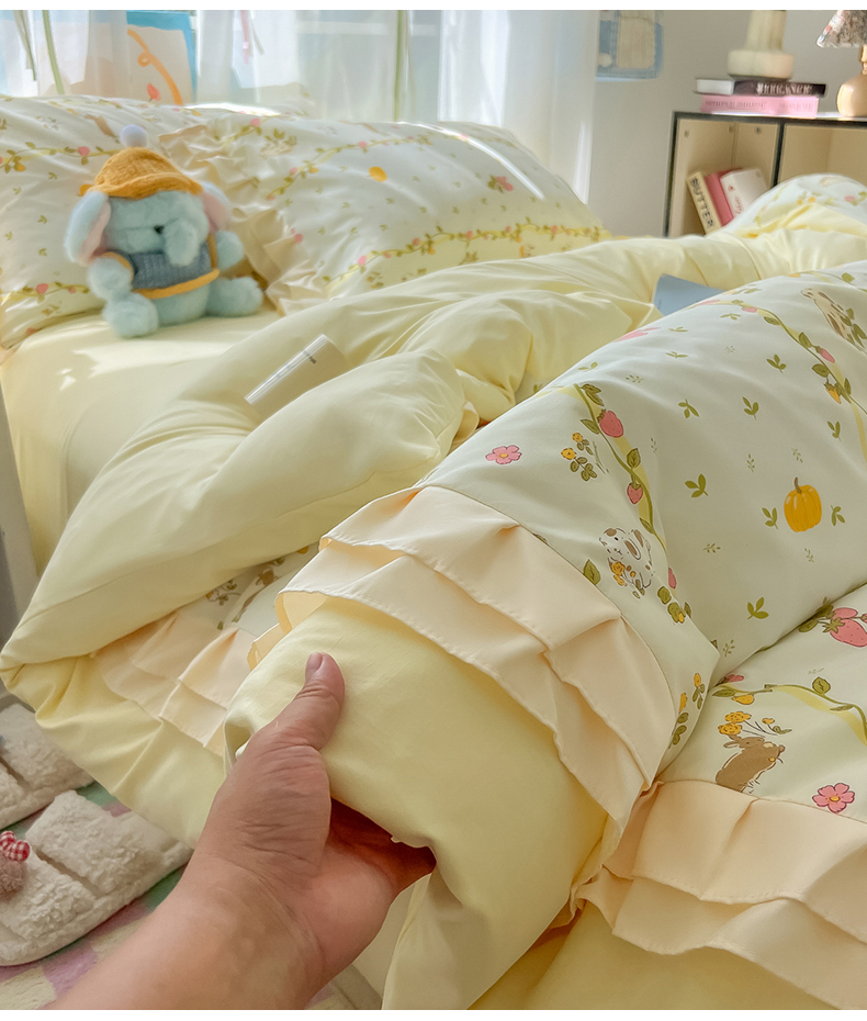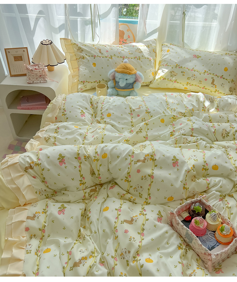 商品名称:(总)子钦家纺 2025新款云朵棉水洗棉双花边奶油花边仙女风床单床笠床裙四件套