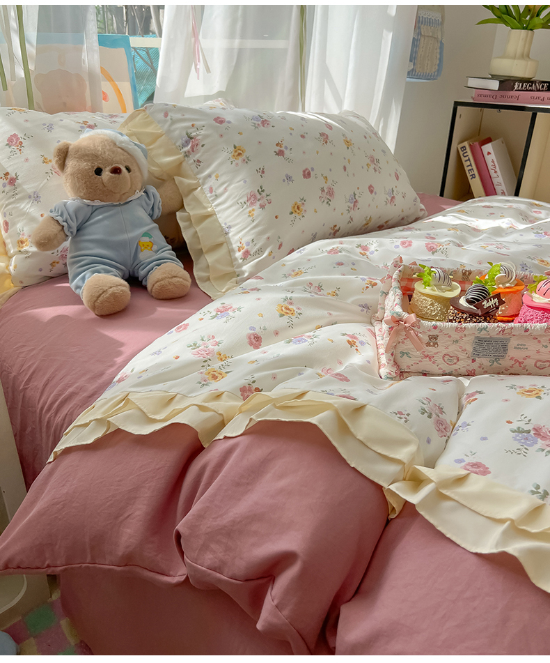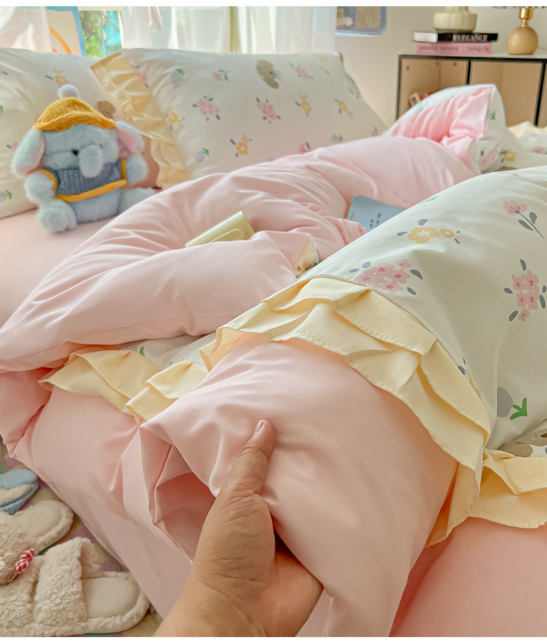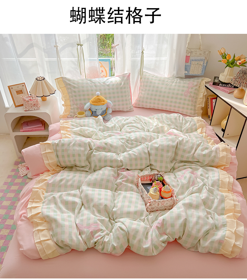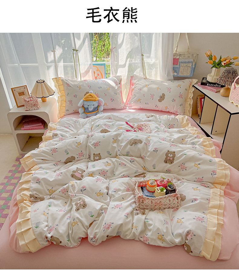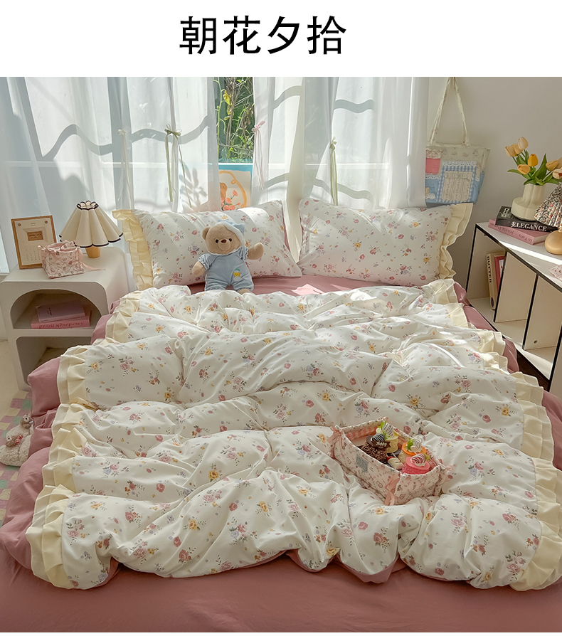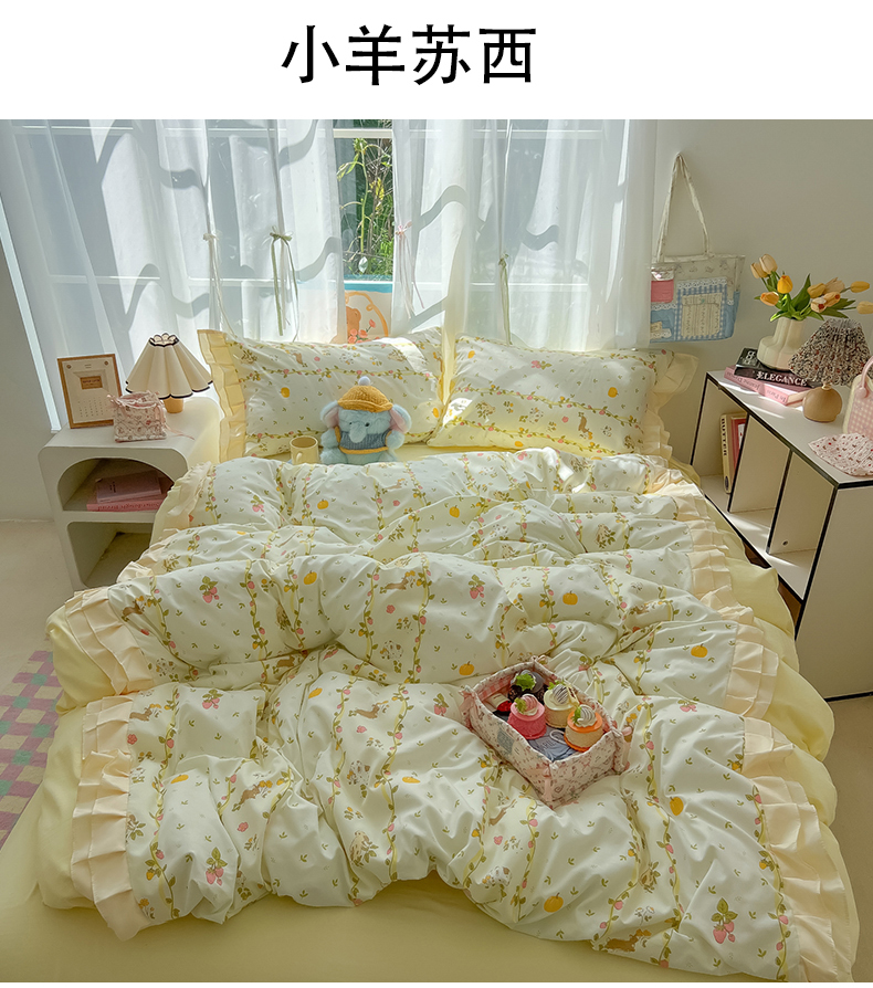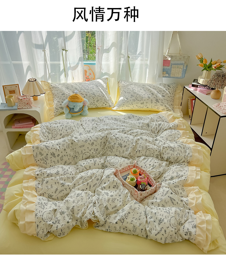 (总)子钦家纺 2025新款云朵棉水洗棉双花边奶油花边仙女风床单床笠床裙四件套