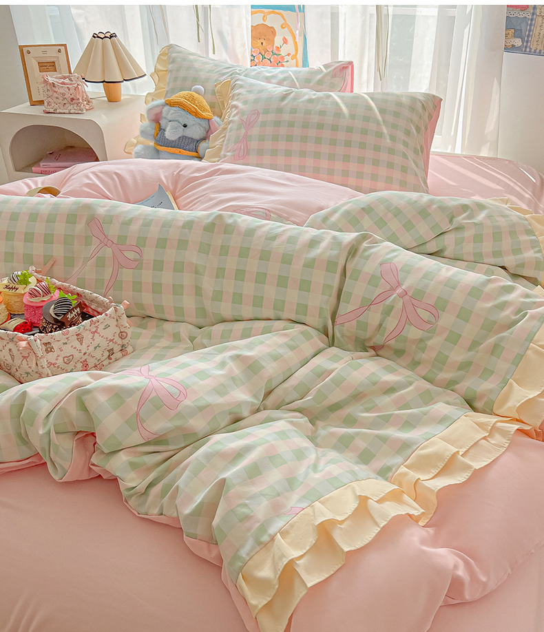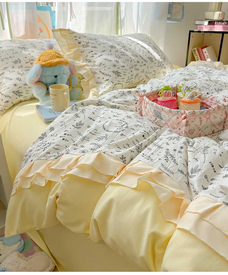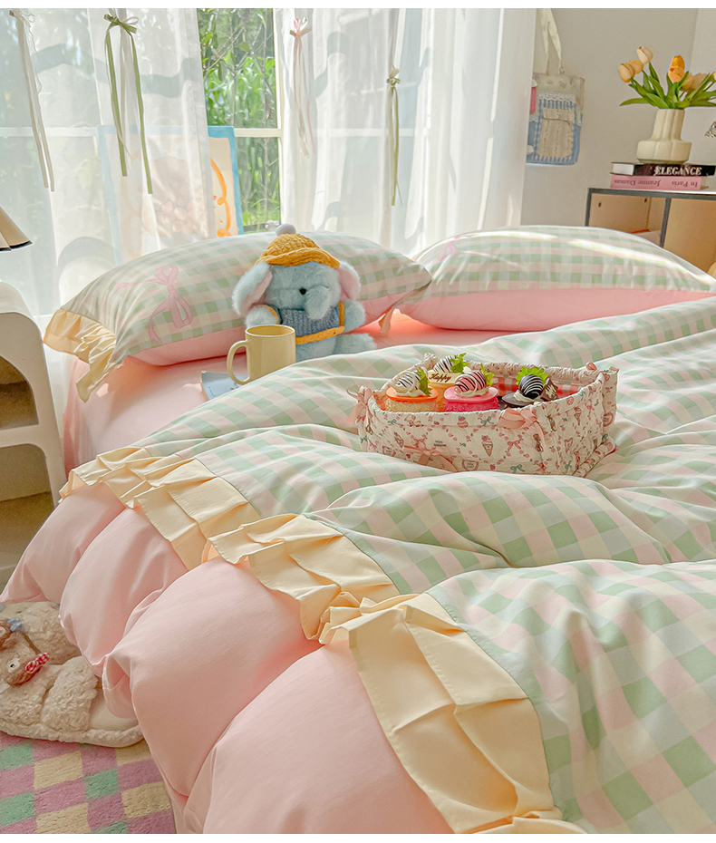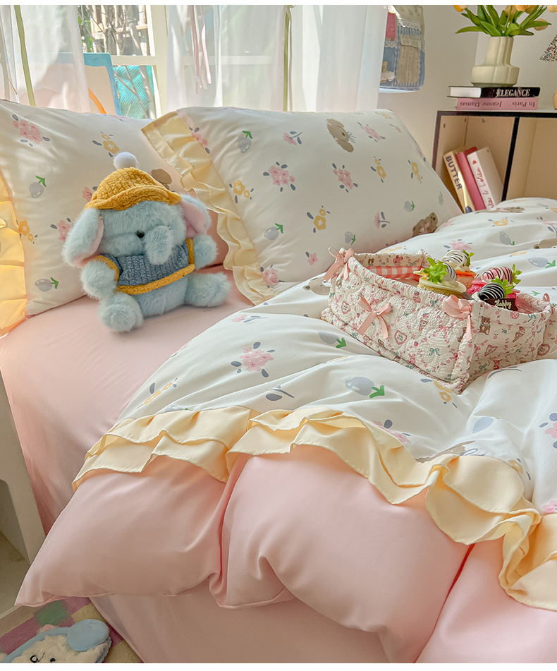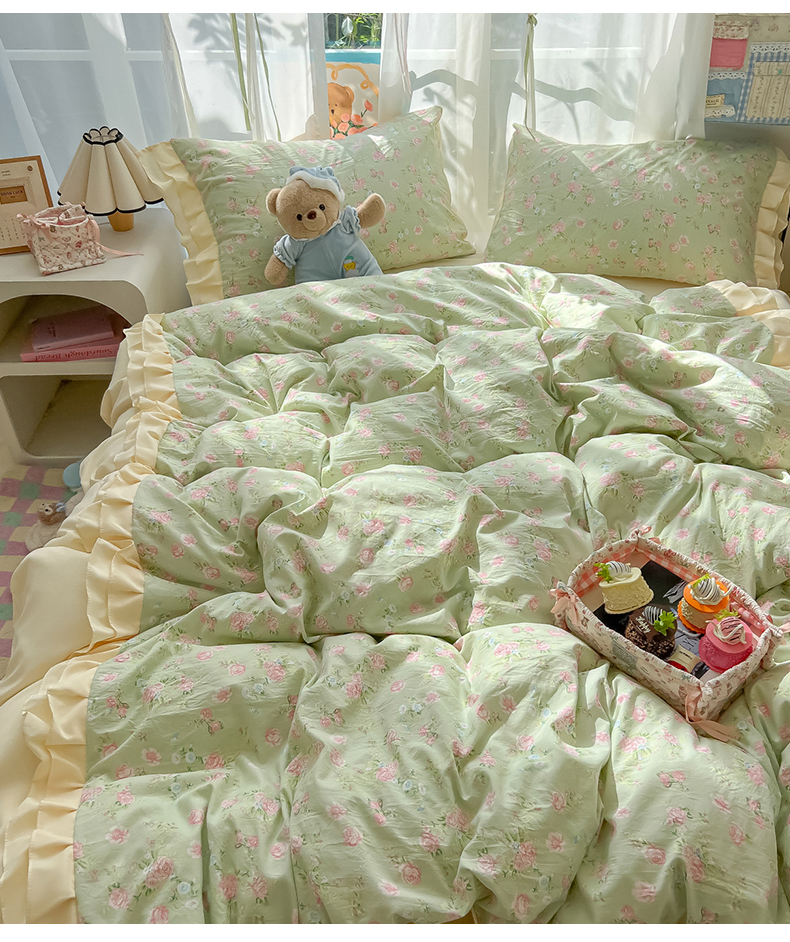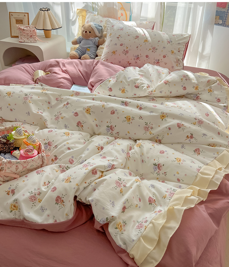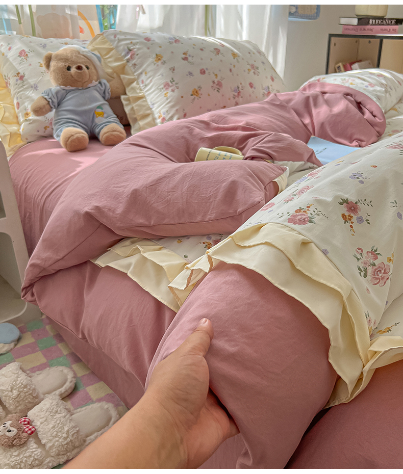 (总)子钦家纺 2025新款云朵棉水洗棉双花边奶油花边仙女风床单床笠床裙四件套