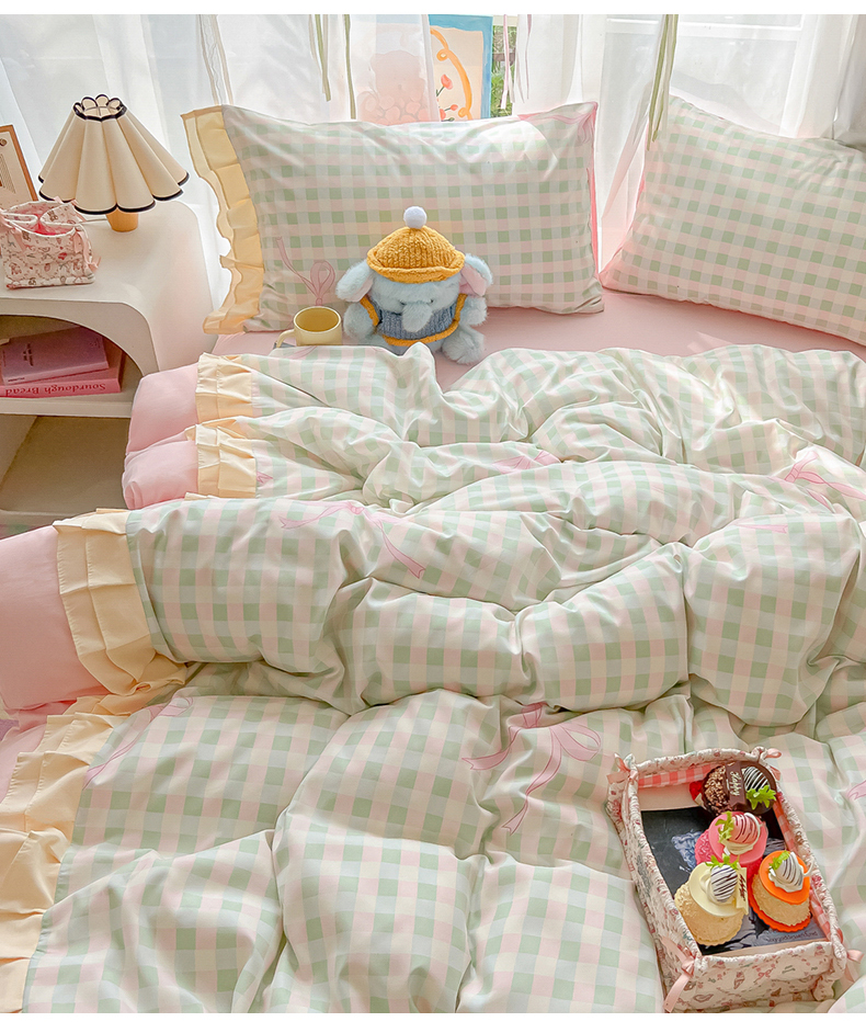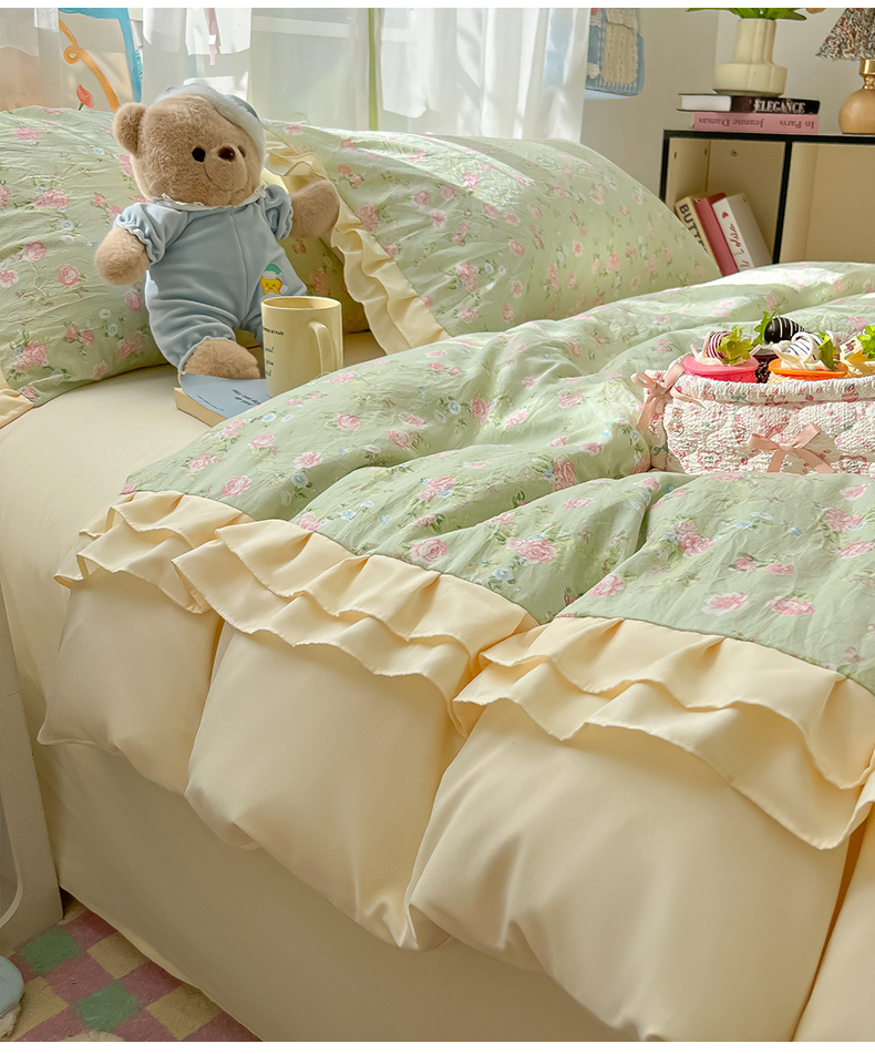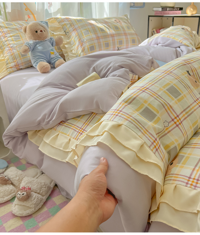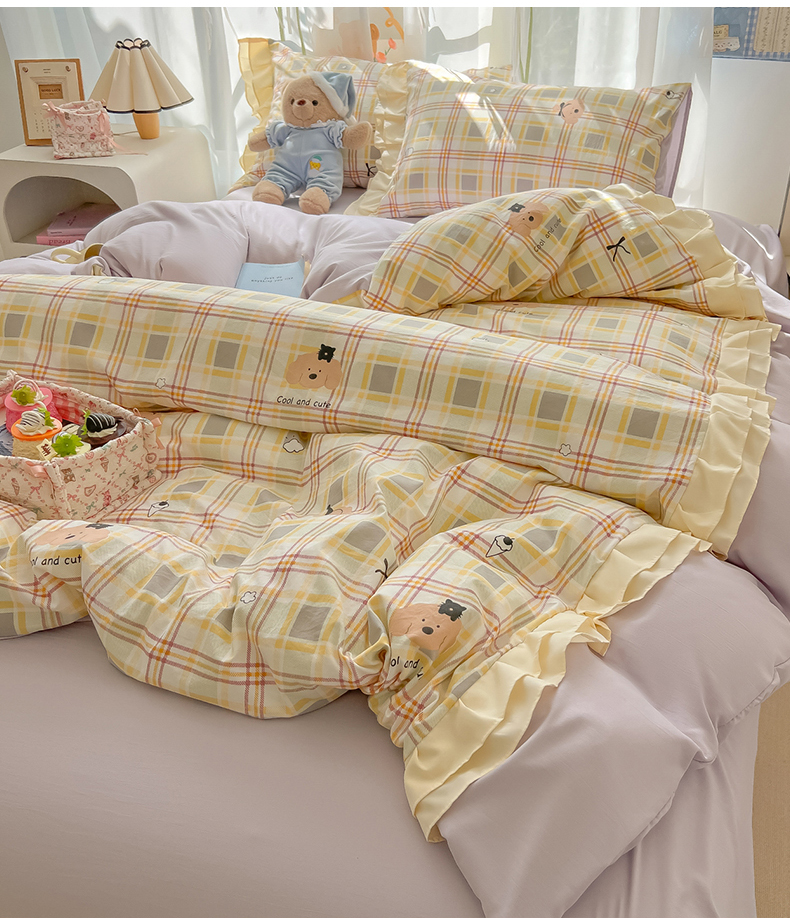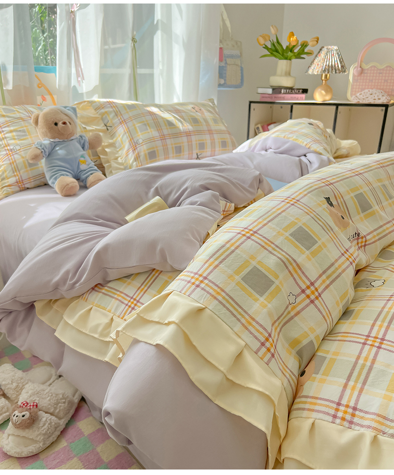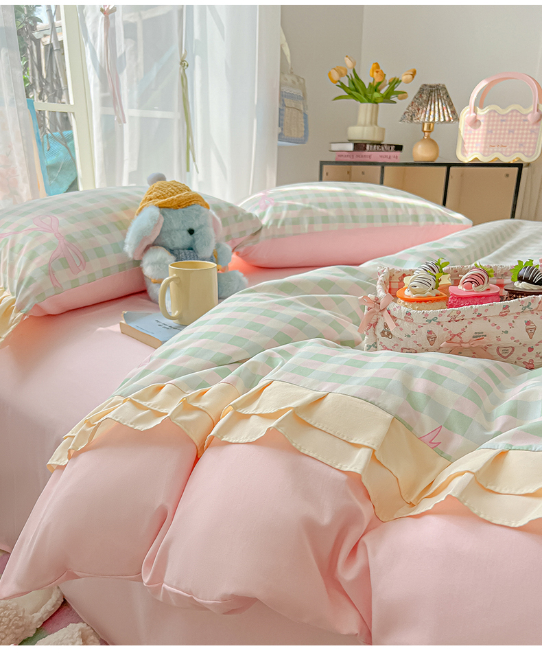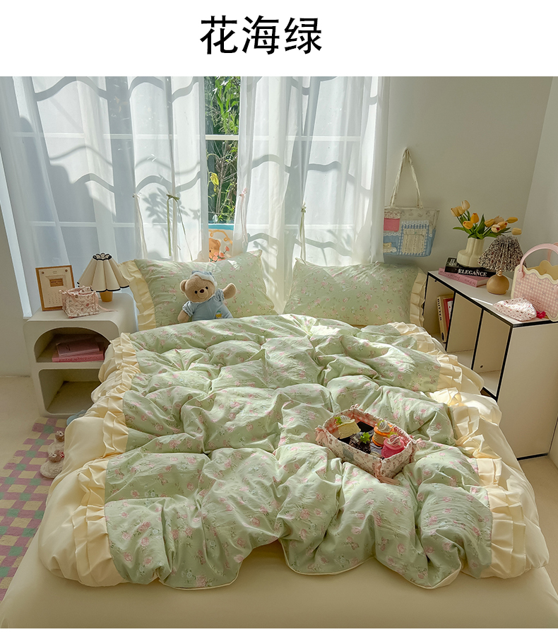 (总)子钦家纺 2023新款开学季四季棉花边三件套四件套安妮,艾绿,宾利蓝,蒂芙尼蓝,焦糖咖,暖桔,秋月黄,绅士灰,炫彩银,阳光紫,樱花粉