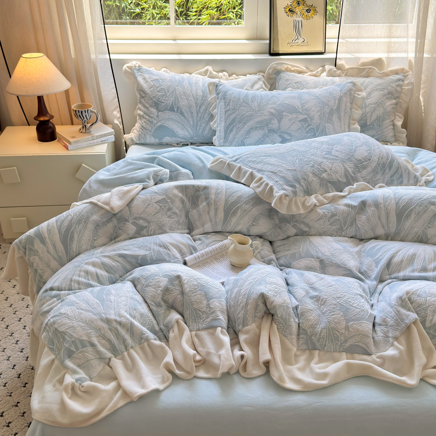 (总)德比尔斯 2025新款兔毛绒兔兔绒牛奶绒四件套床盖款,椿野,花间密语,花漾间,幻蝶咖,莫奈花园,墨本