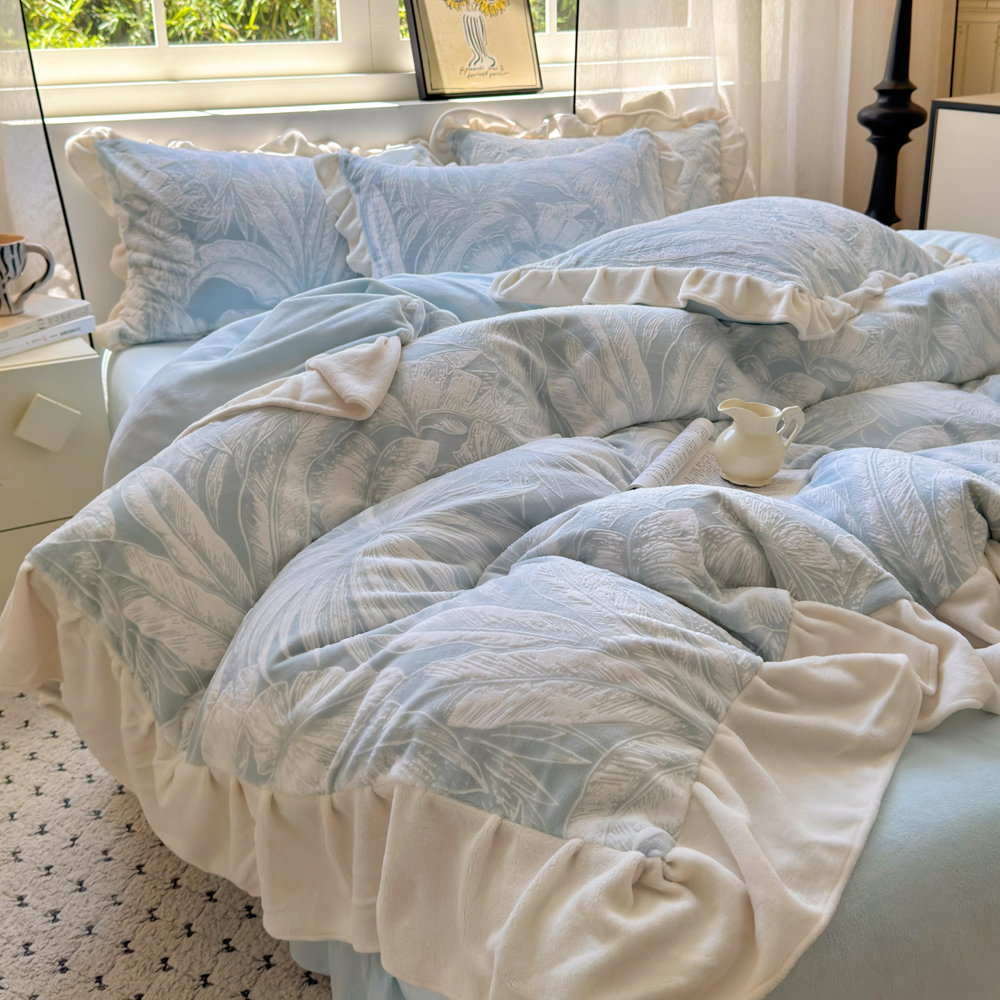 (总)德比尔斯 2025新款韩版白边黑边赫本风牛奶绒床盖四件套,爱心小熊,安妮粉,蝶恋花粉,法风小香,赫本-蝴蝶结粉,赫本-蝴蝶结咖,盛夏丛林,晕染花曳