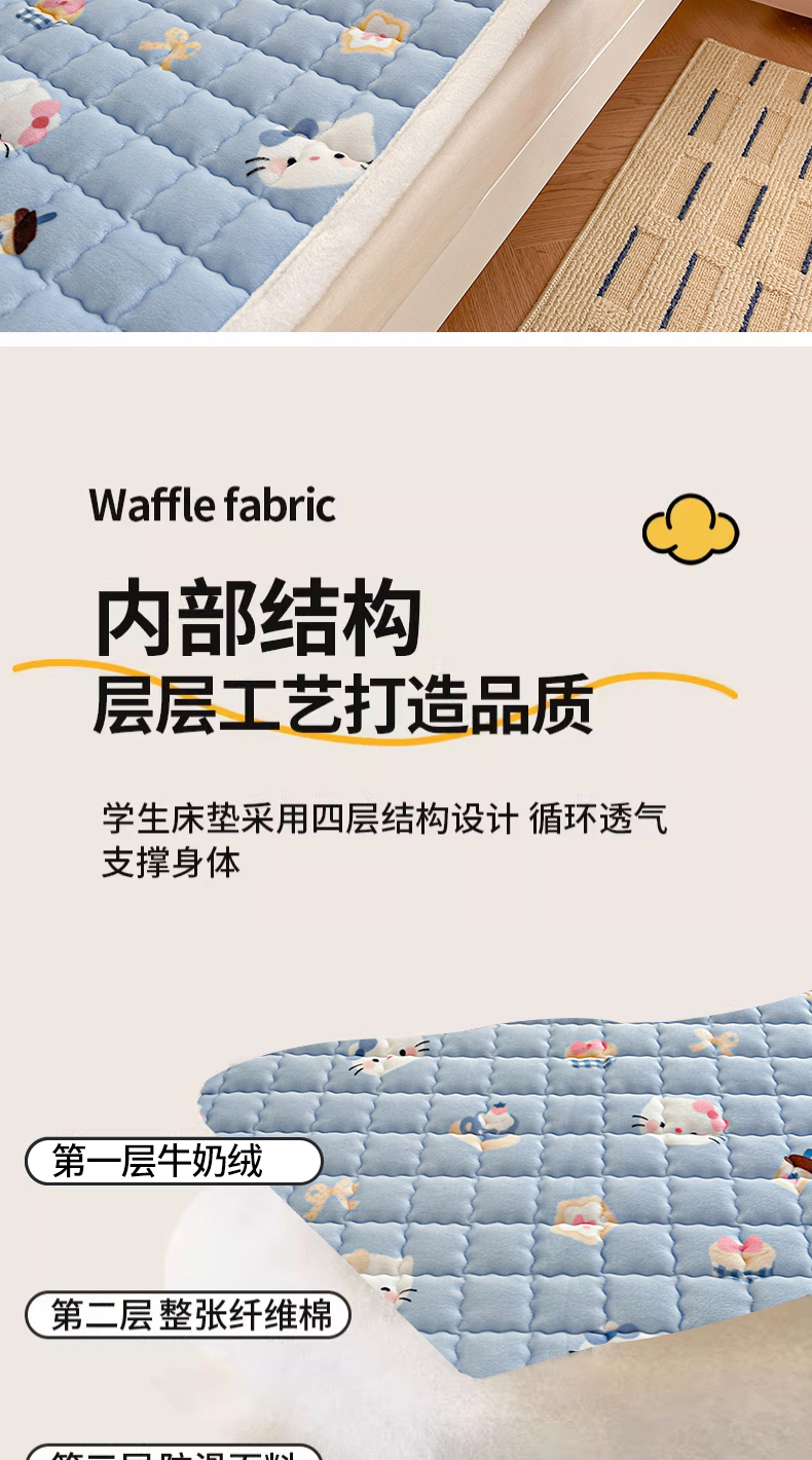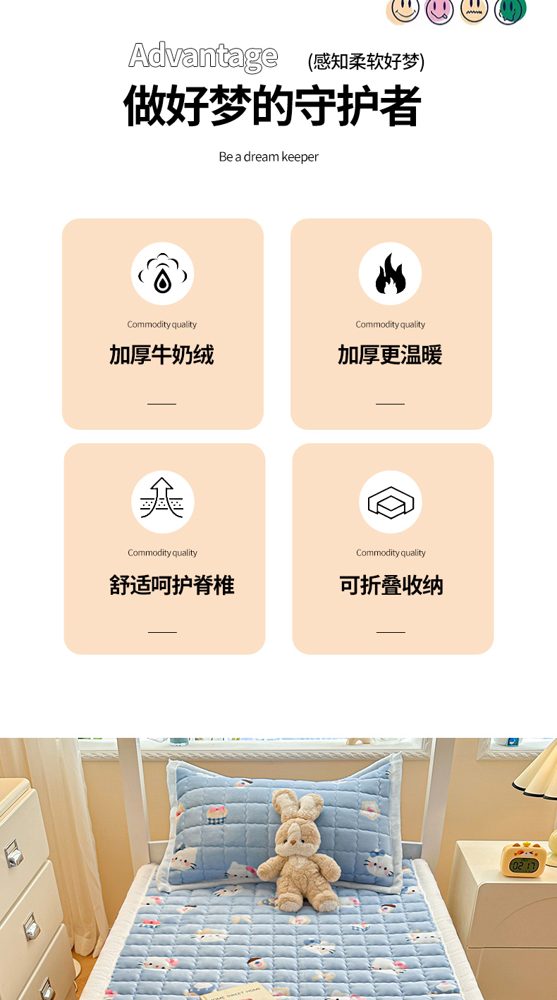 当前位置: 91家纺网 > 商品网购 > 床垫/床褥 > 普通床垫 > 川悦生活 2025新款A类印花牛奶绒床垫加厚绒保暖床床褥 床垫晴空小喵