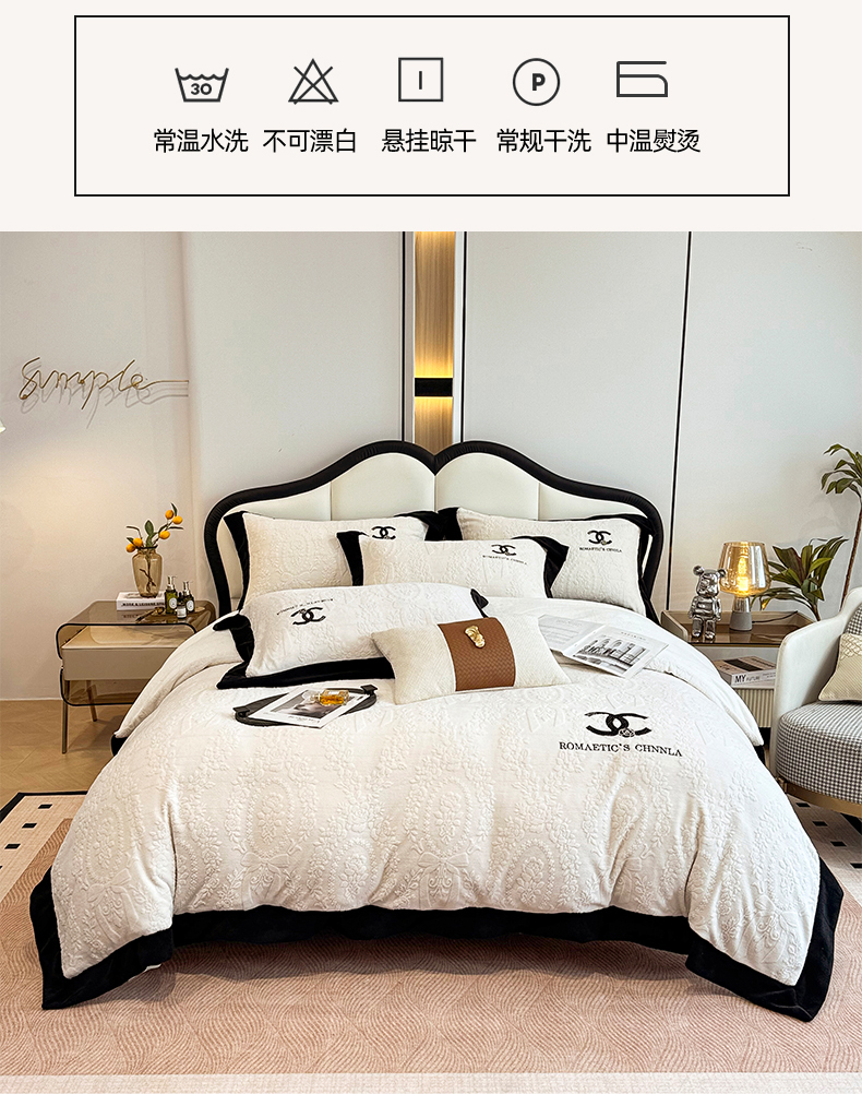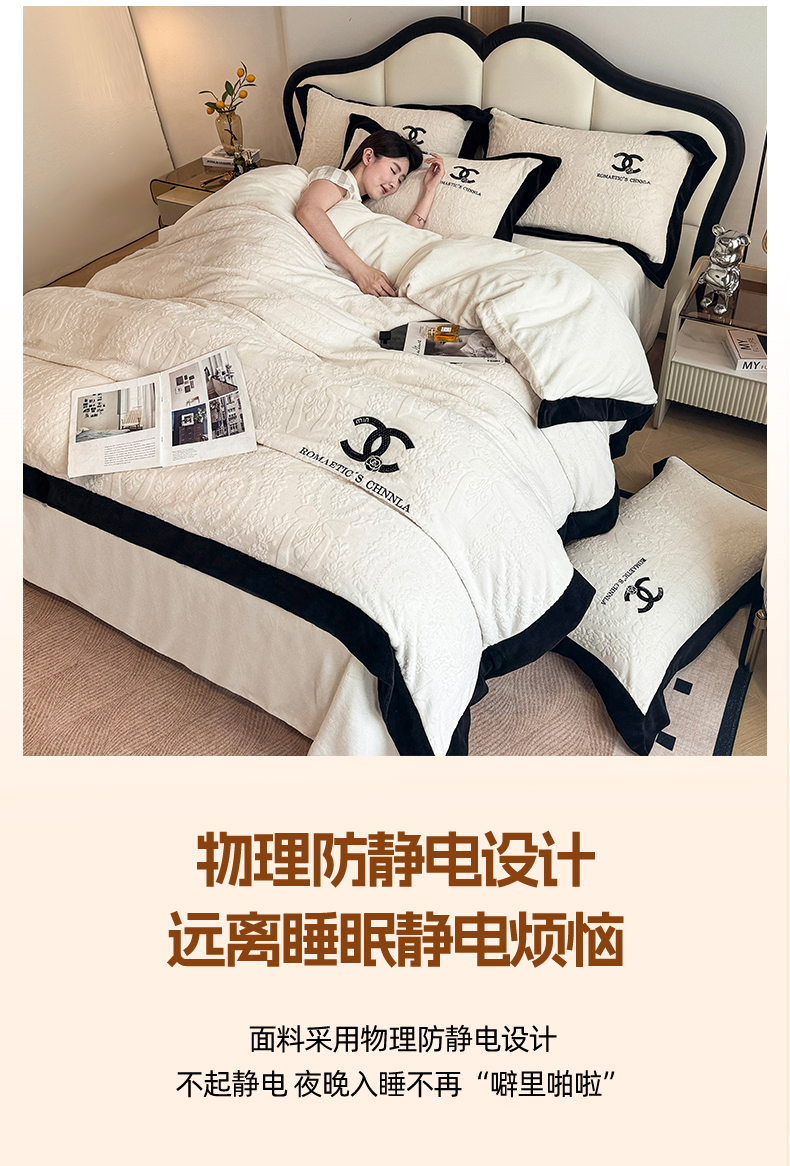 当前位置: 91家纺网 > 商品网购 > 床品套件 > 四件套 > 牛奶绒四件套 > 言熙居家纺 2025新款全消光240克雕花牛奶绒四件套一套重9斤小香风系列 小香风-奶白