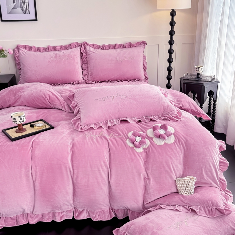 (总)恋尚羽家纺 2025新款韩版花边婴儿绒绣花大床裙四件套宝宝绒婴肤绒公主风韩式,大红色,豆沙色,粉色,湖蓝色,灰色,桔色,墨绿色,紫色