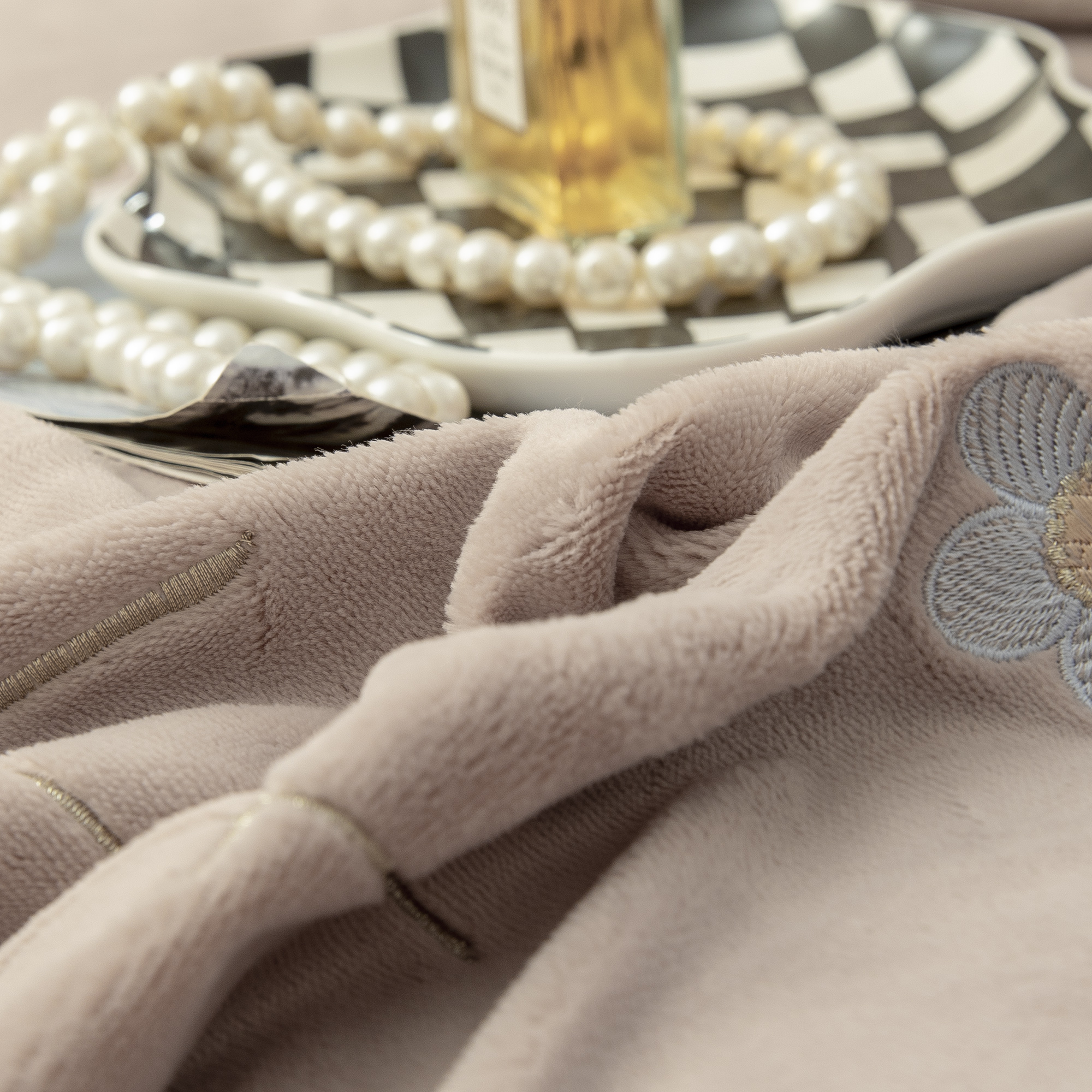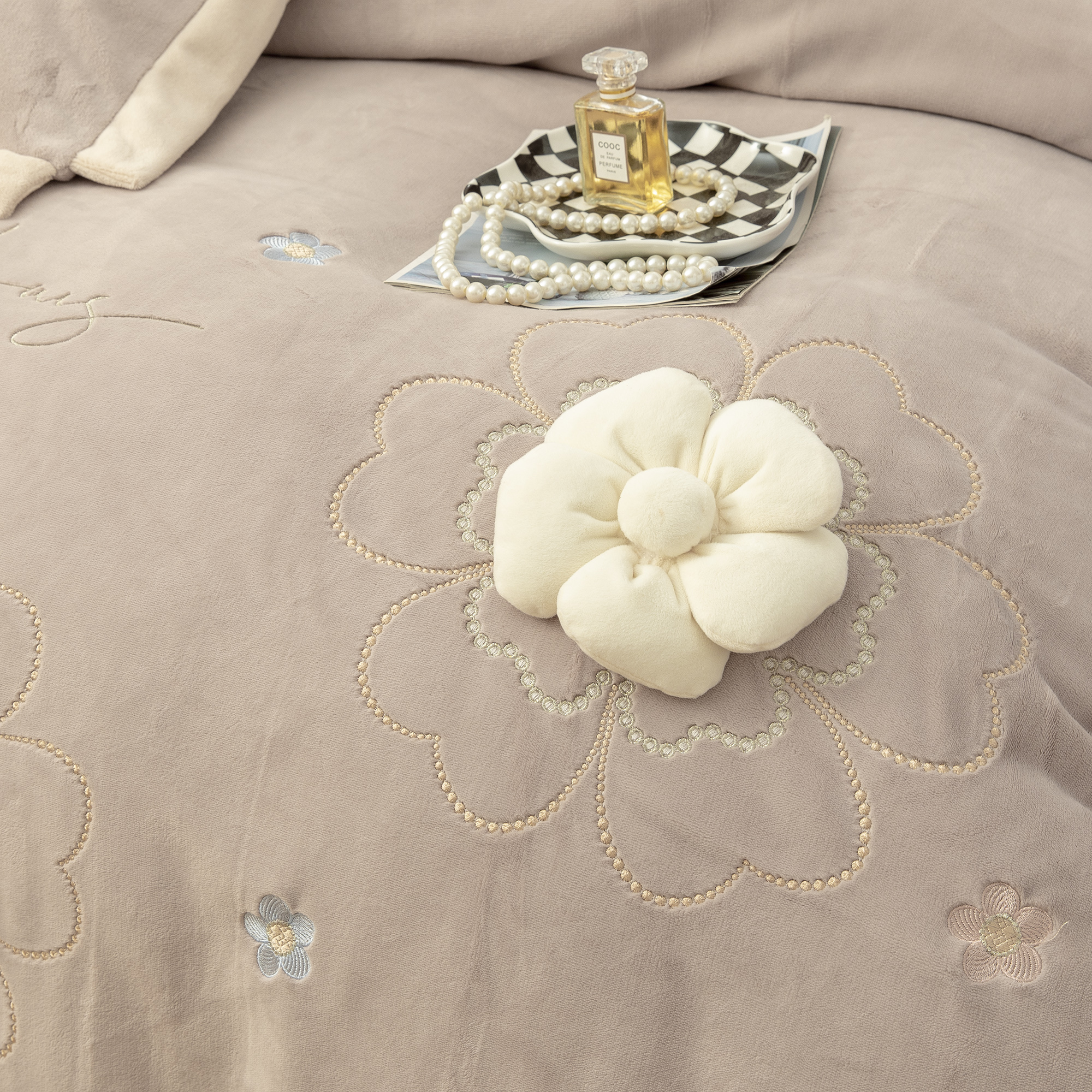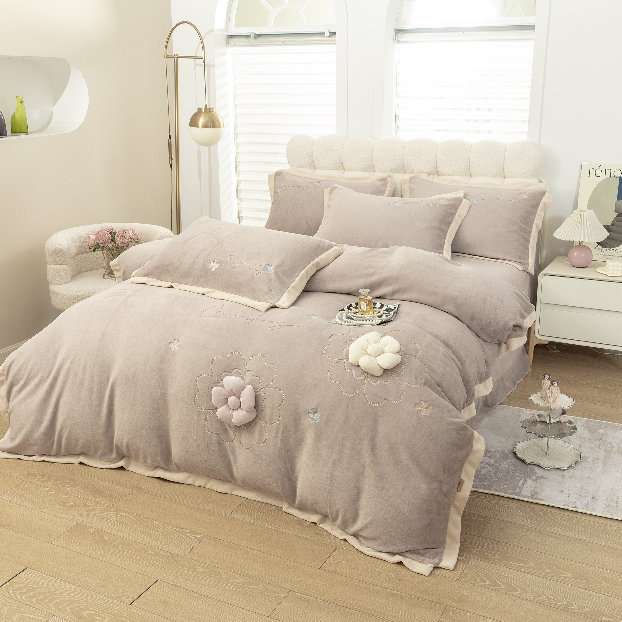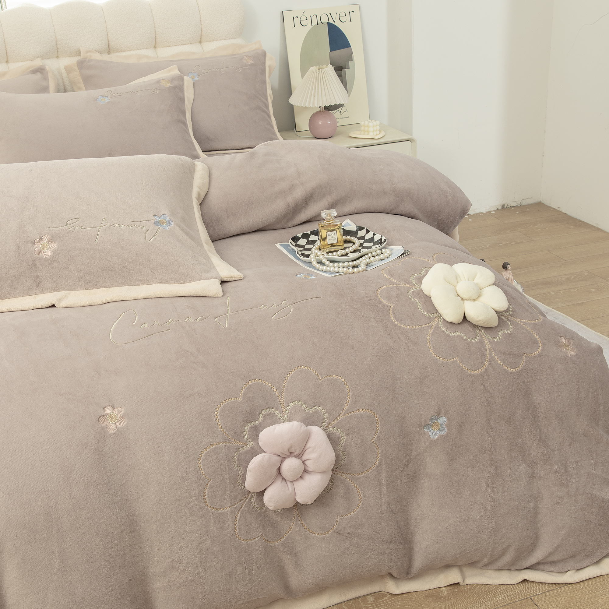 贝尔 2025新款纯色高克重牛奶绒刺绣四件套-羽魅 羽魅-豆沙,羽魅-豆沙