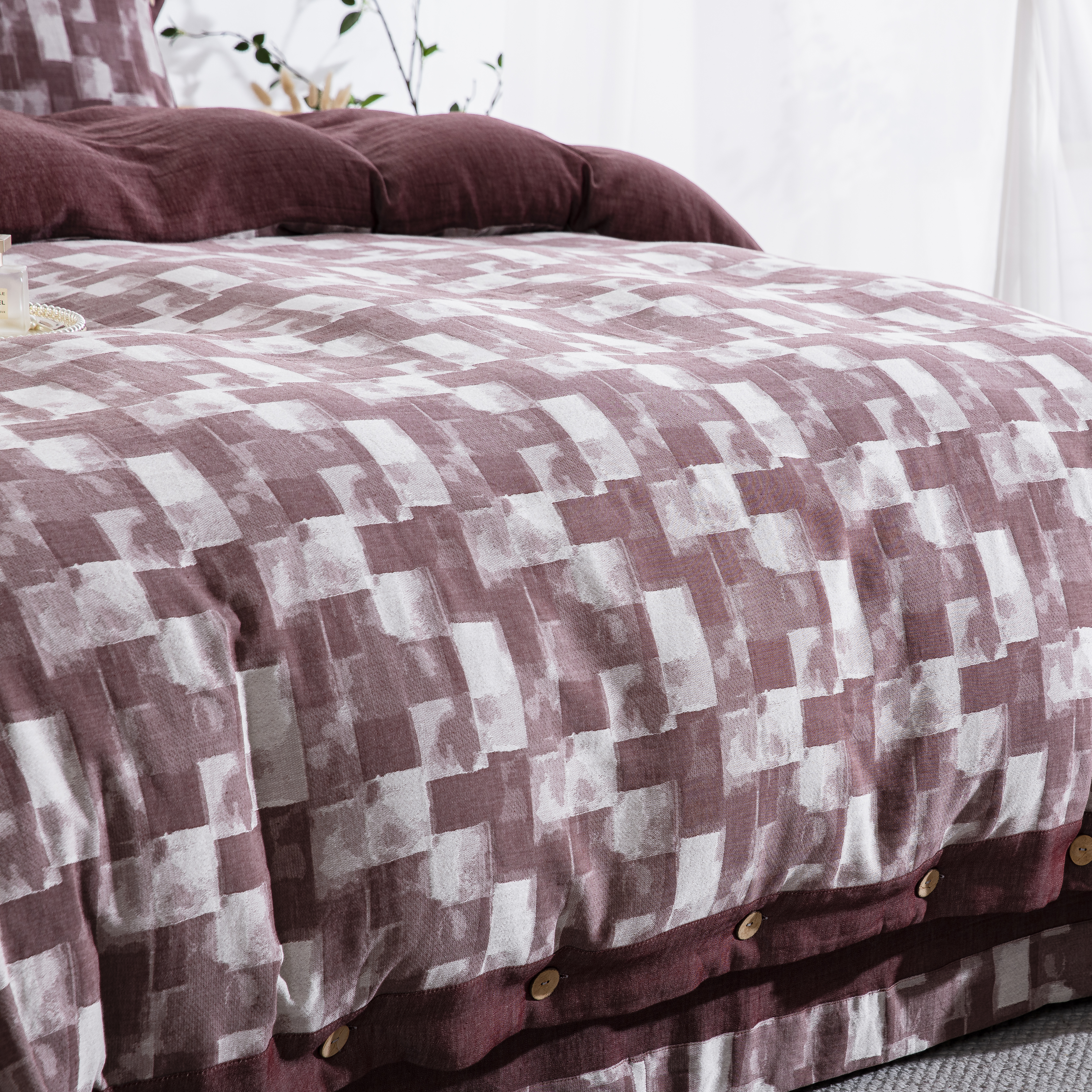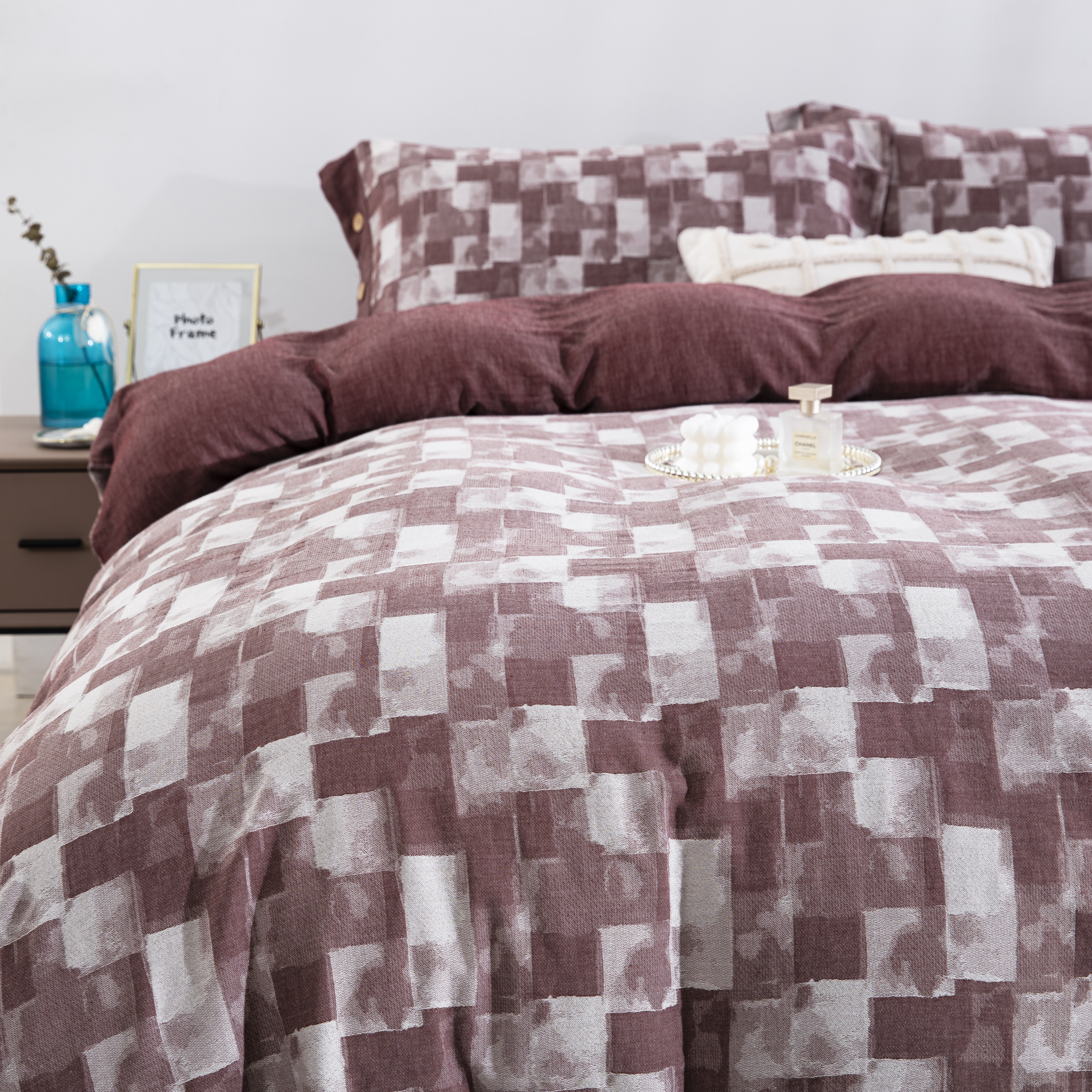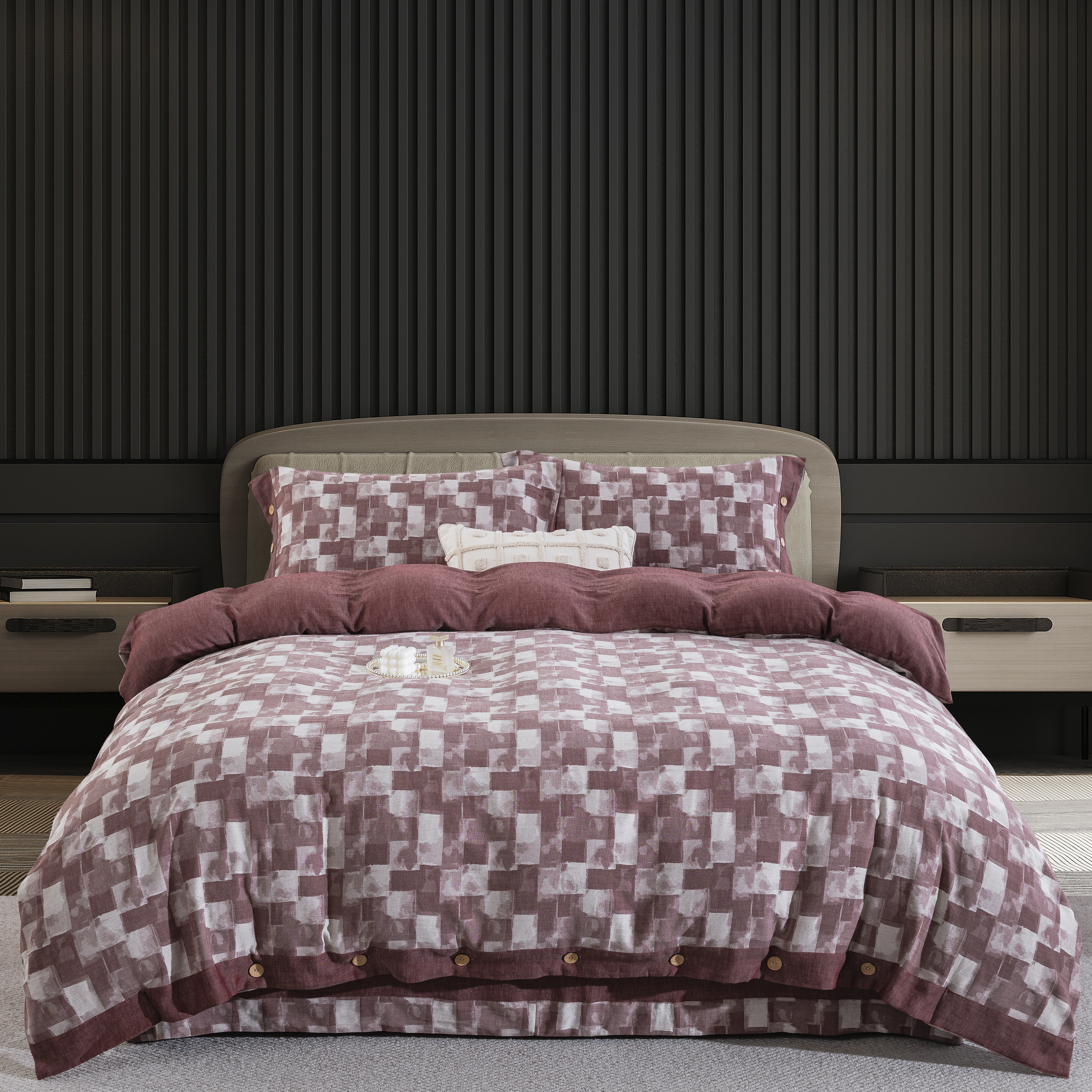鲁爱家纺供货 2025新款全棉色织提花四件套 都市万象-豆沙